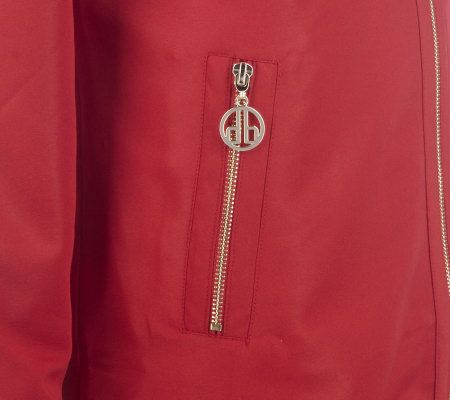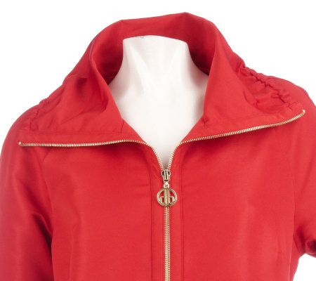 Dennis Basso Water Resistant Jacket with Ruched Collar & Tab Sleeves
