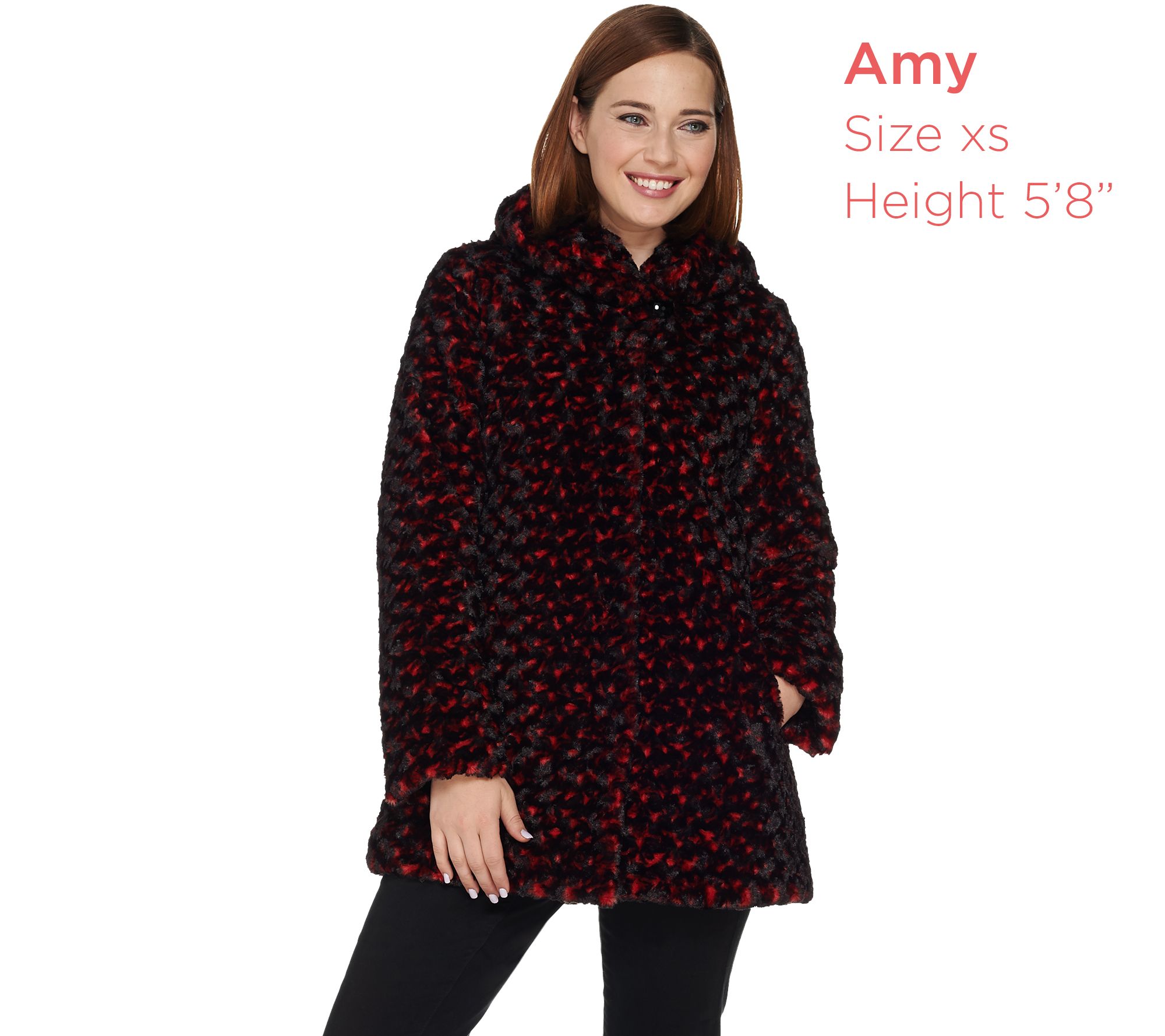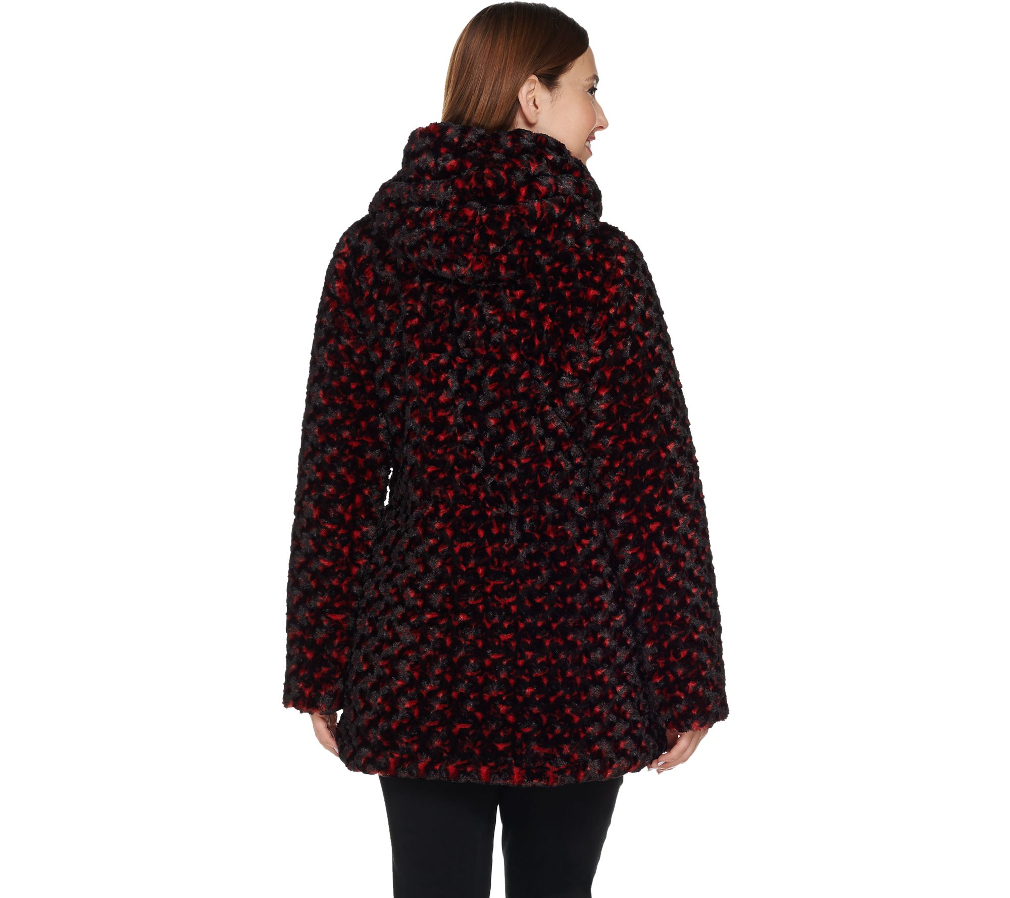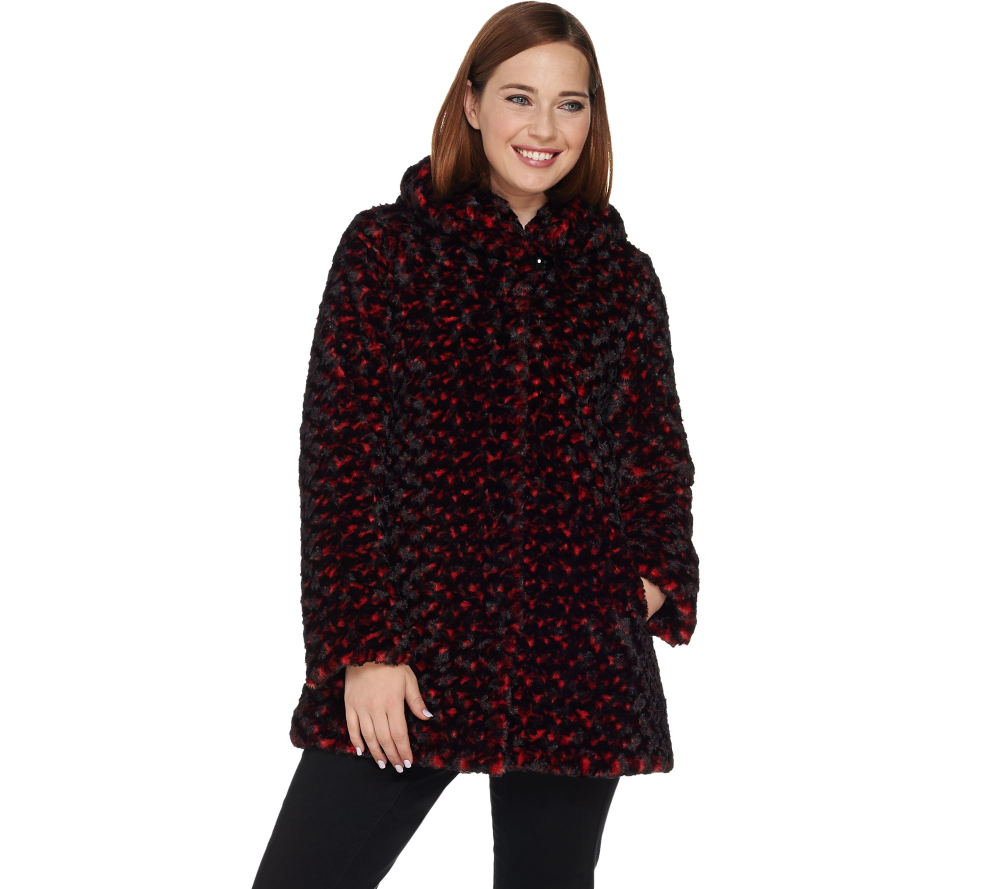 A stunning addition to your winter wardrobe, this Dennis Basso faux-fur coat frames your face with a shawl pillow collar with hood. The tipped rosette faux fur creates an alluring texture. From Dennis Basso.