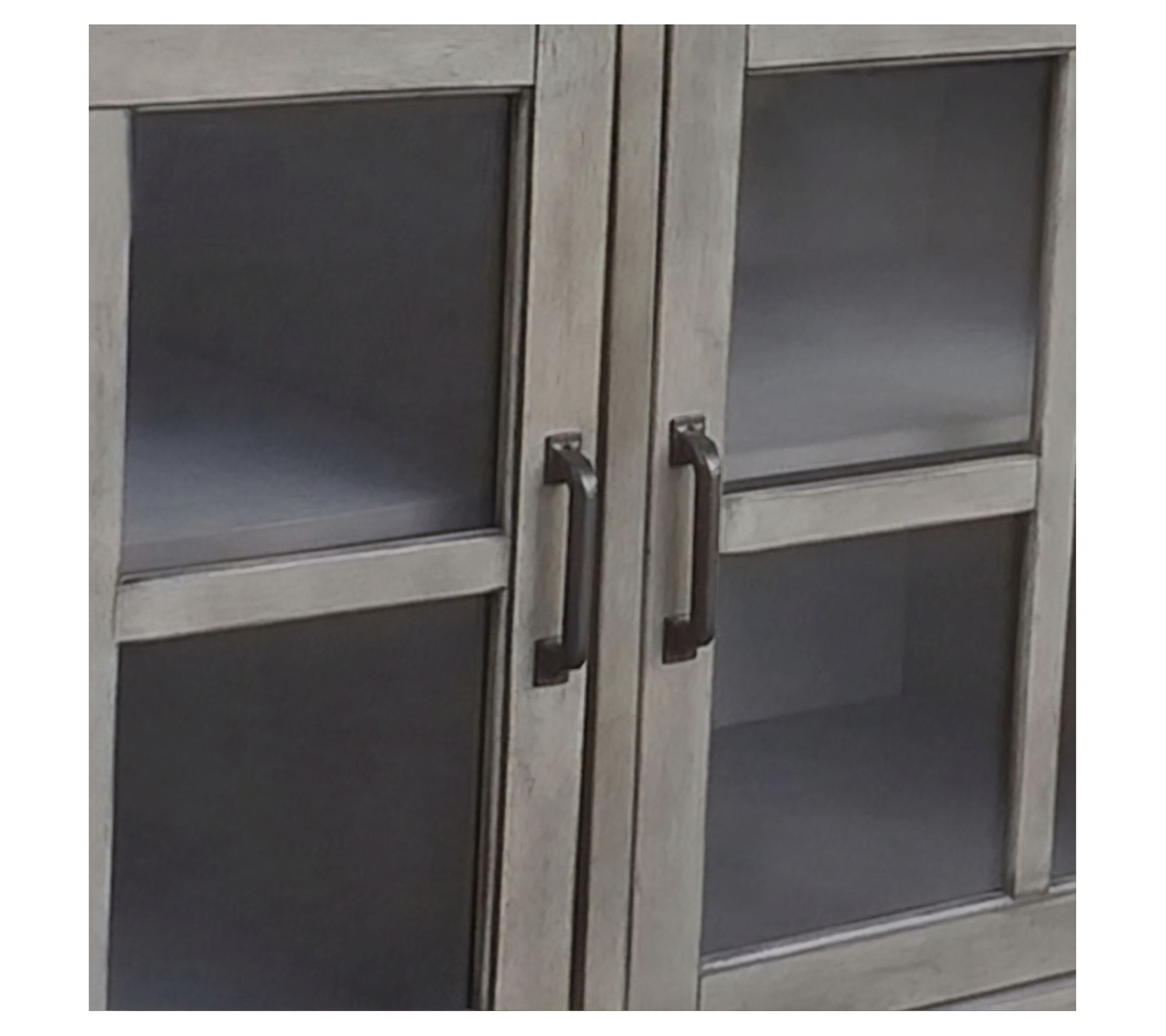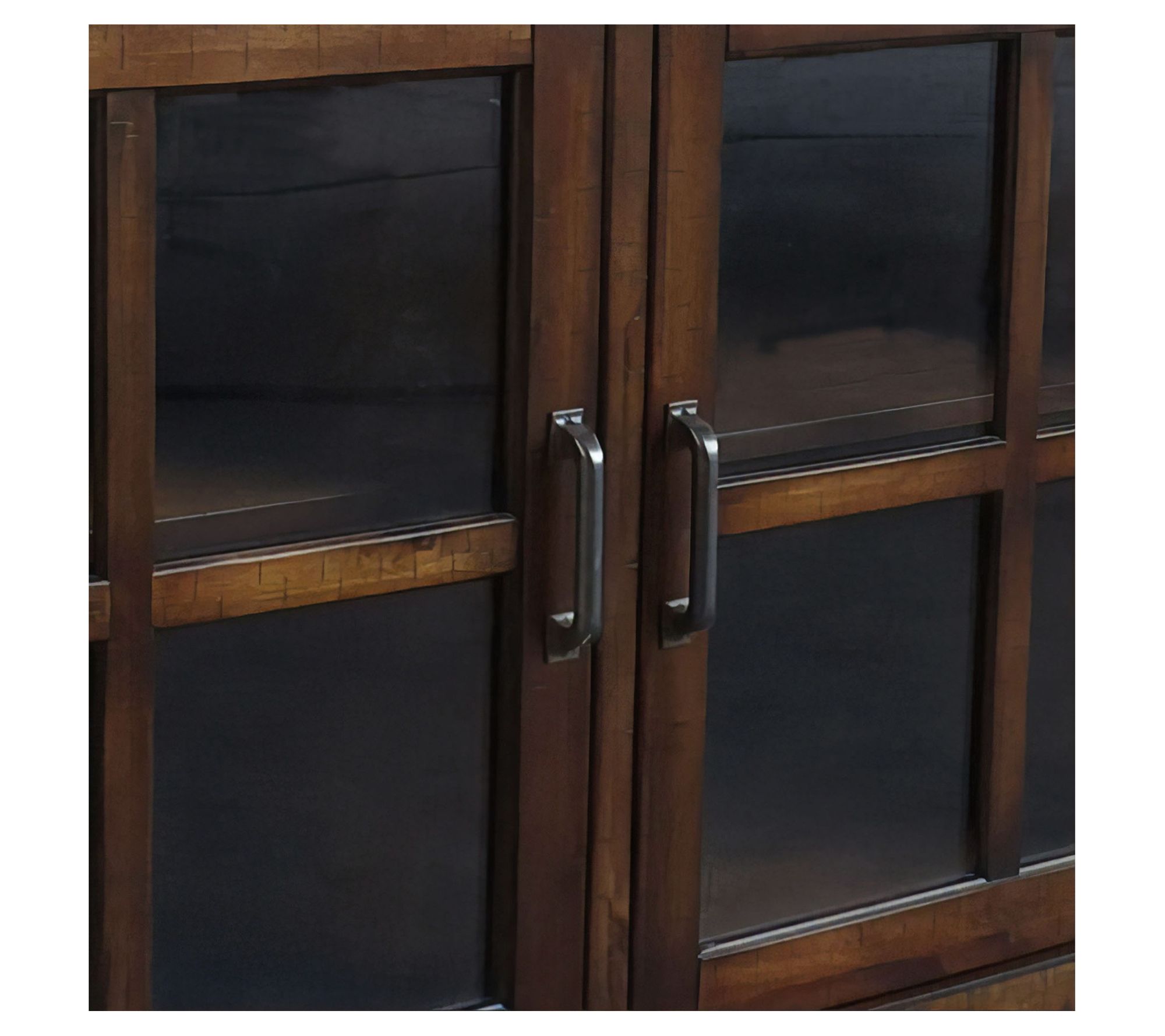 • Features three drawers, adjustable shelves, opening glass doors