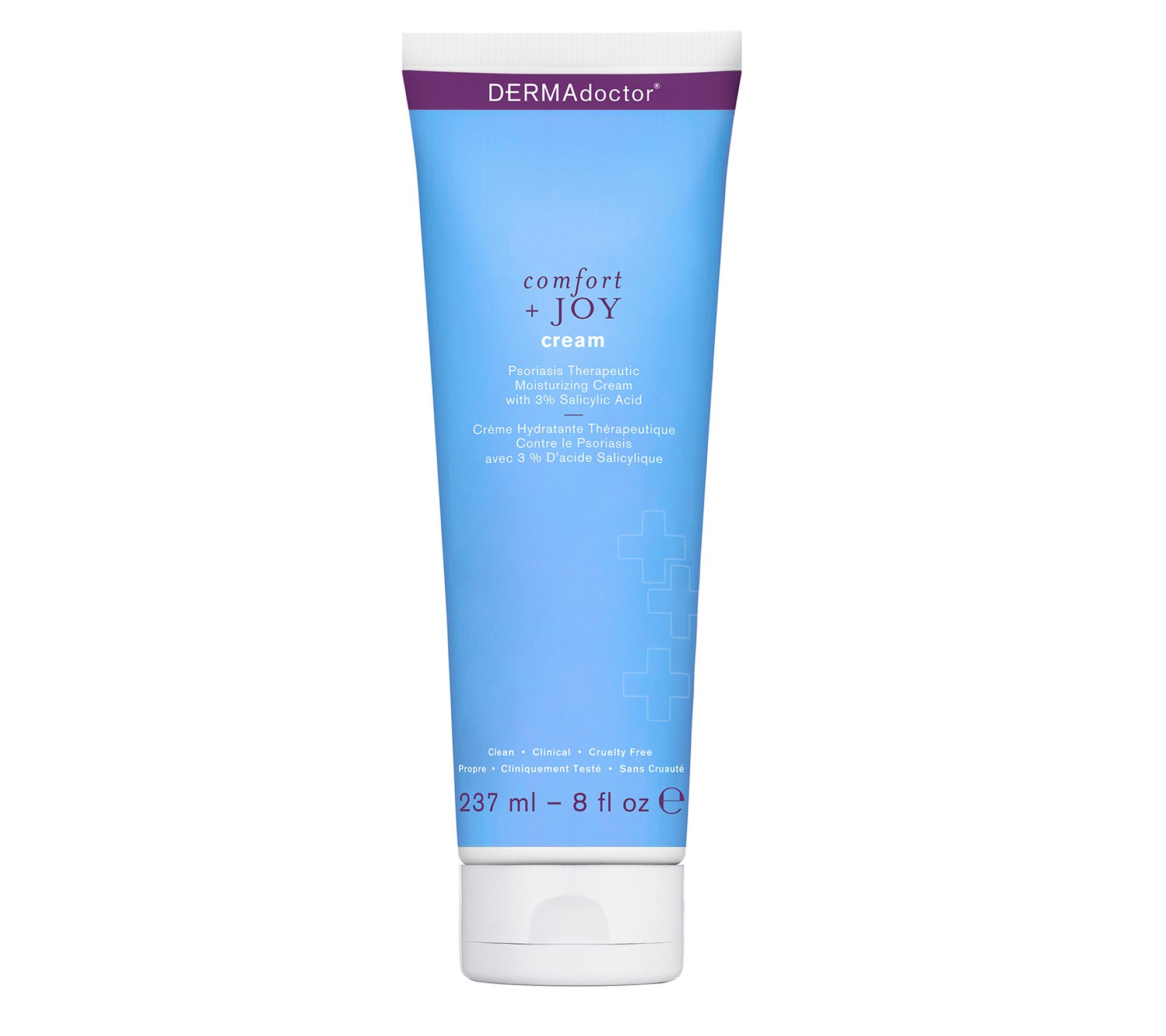 DERMAdoctor is bringing comfort + joy to people suffering from psoriasis. Comfort + Joy Psoriasis Moisturizing Cream is for the treatment and relief of the symptoms of psoriasis including itching, scaling, redness, flaking, and irritation. This therapeutic, maximum-strength 3% salicylic acid psoriasis cream was designed to relieve and help prevent the recurrence of psoriasis symptoms. Disguised as a luxe moisturizing cream, this treatment delivers a sophisticated blend of ceramides, essential fatty acids, hyaluronic acid, aloe vera, and shea butter to calm and moisturize dry, uncomfortable skin. The formulation is appropriate for even the most sensitive skin from head to toe.