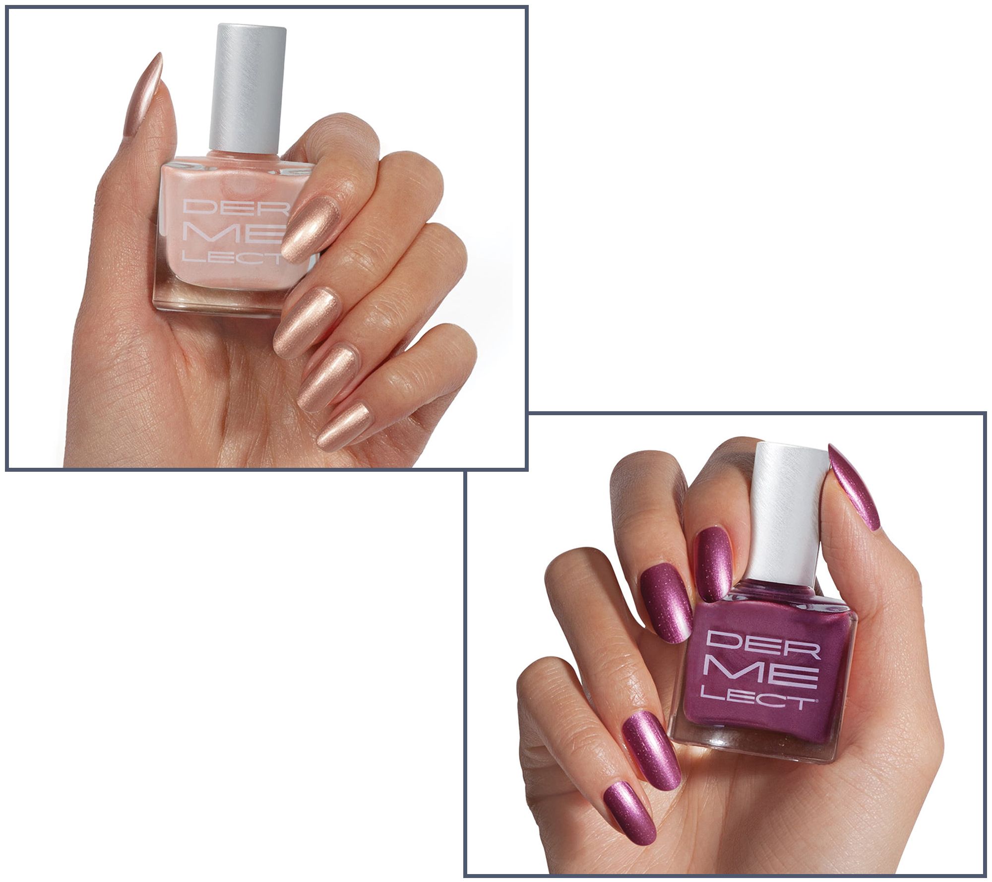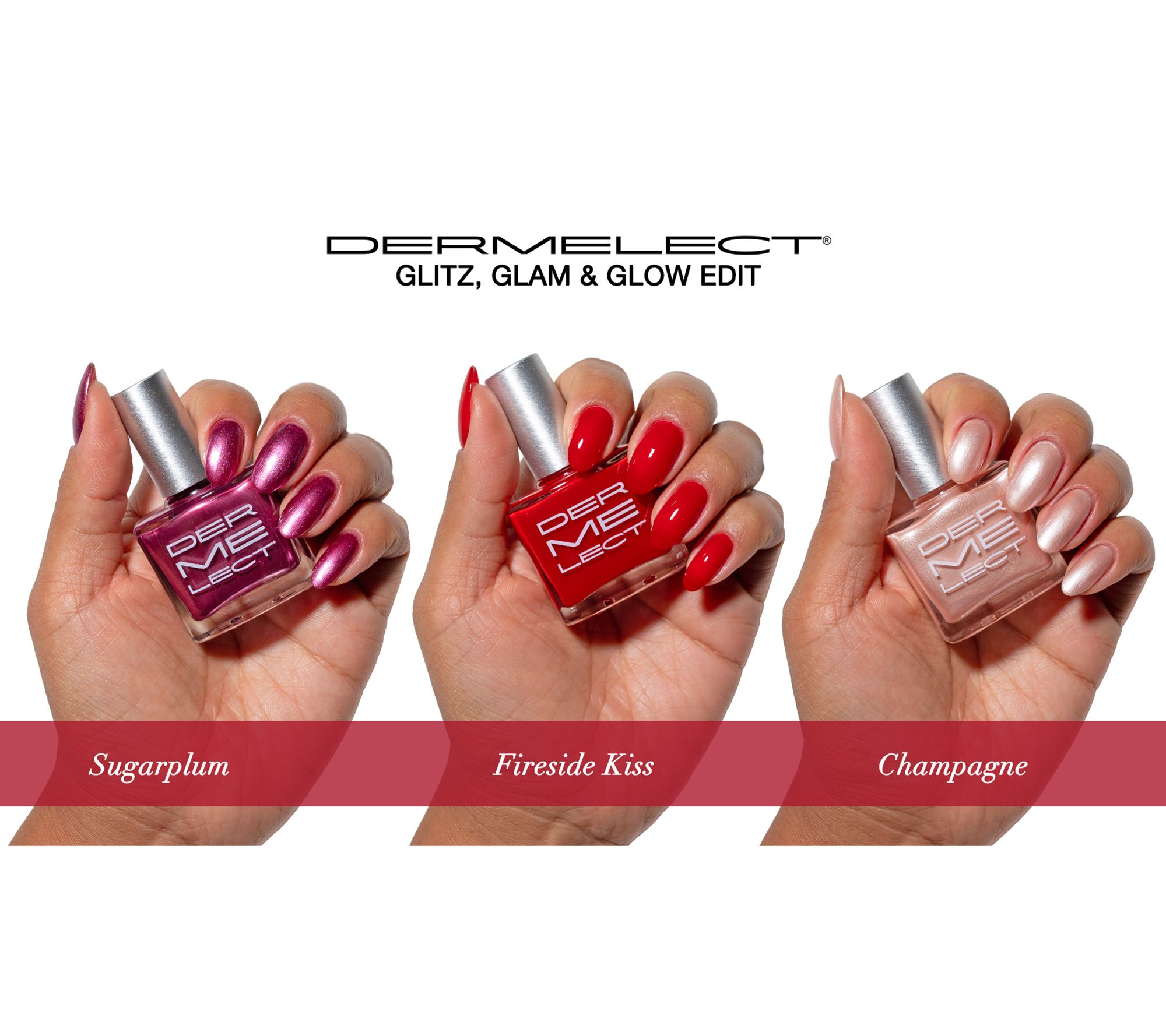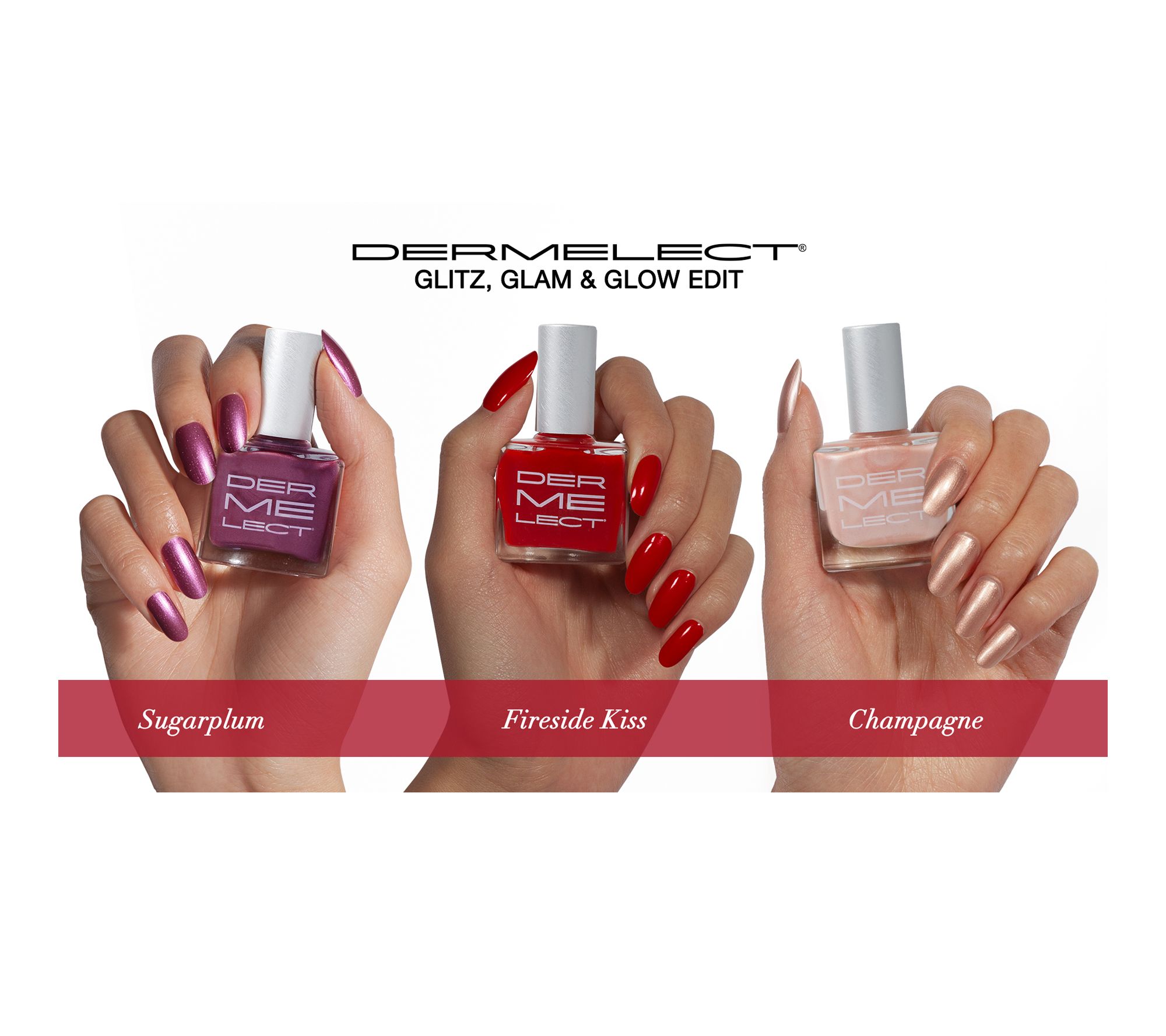 Achieve beautiful nails with this set of three nail polishes in gorgeous holiday shades. Formulated with protein peptide, hexanal, and biotin that help provide additional strength to the nails while wearing, they are free from formaldehyde and parabens. From Dermelect.