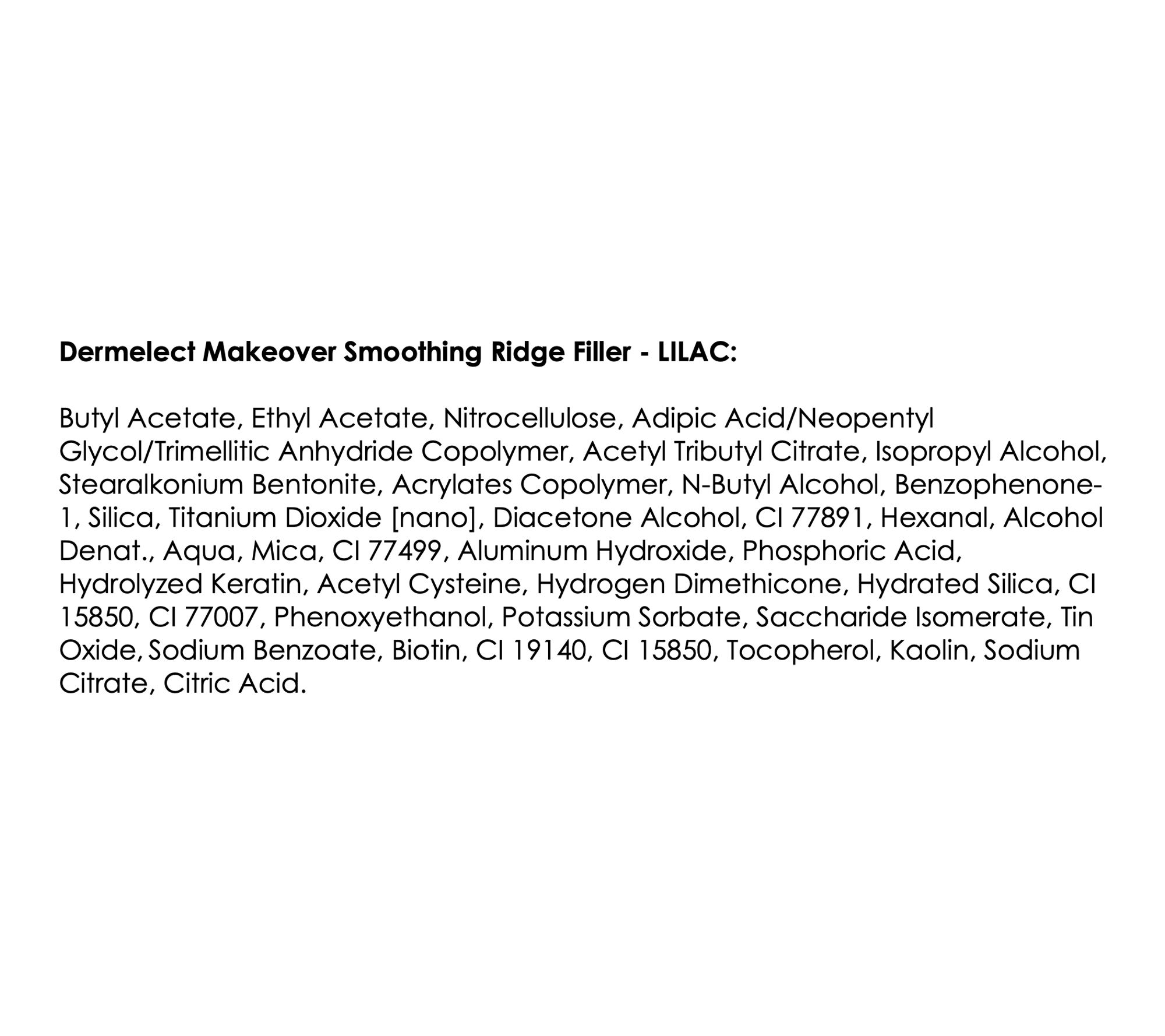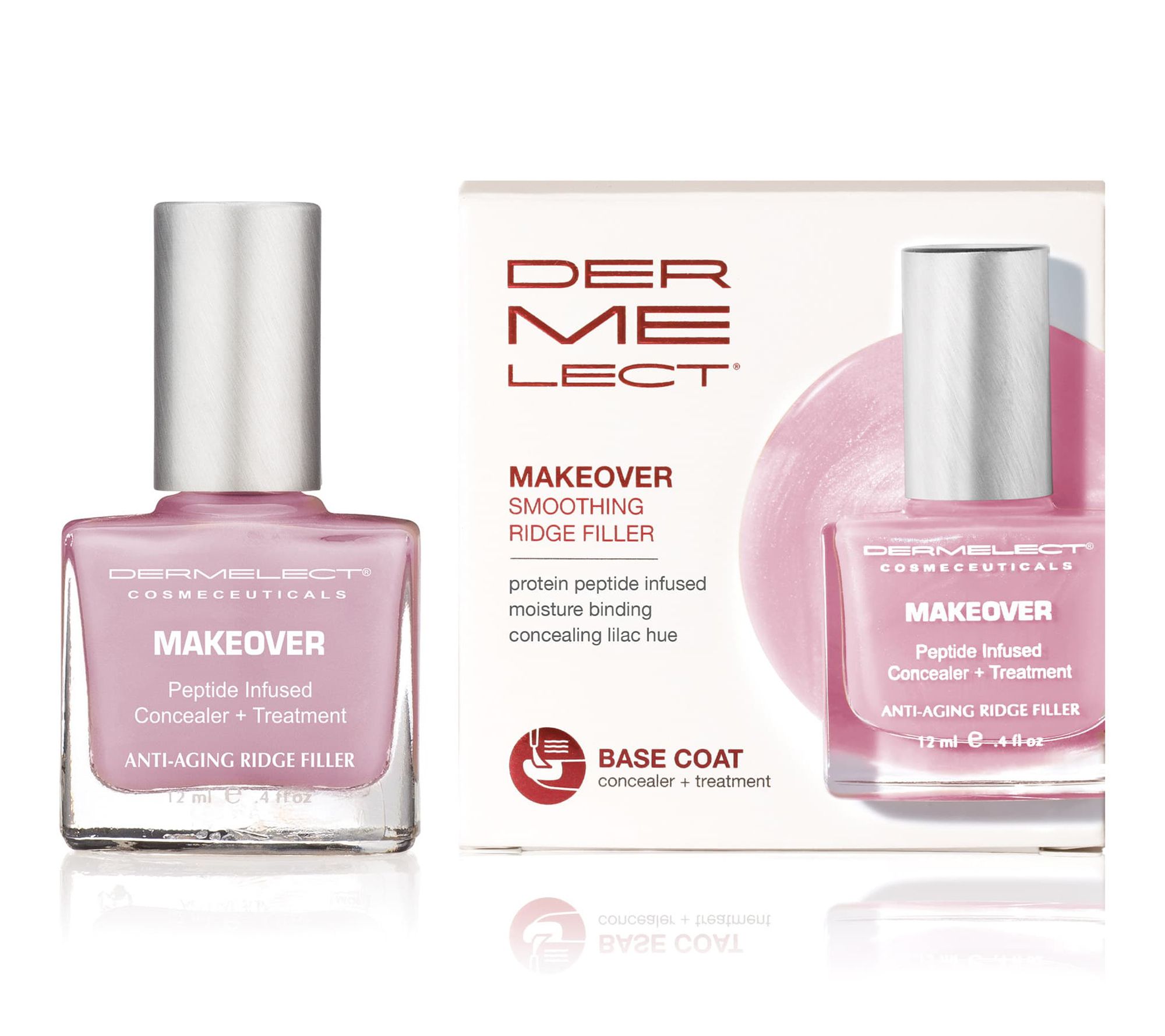 From Dermelect, Makeover Smoothing Ridge Filler instantly achieves the appearance of healthier-looking nails by cleverly concealing the look of nail imperfections with a shimmering lilac hue. Perfect for all nail types.