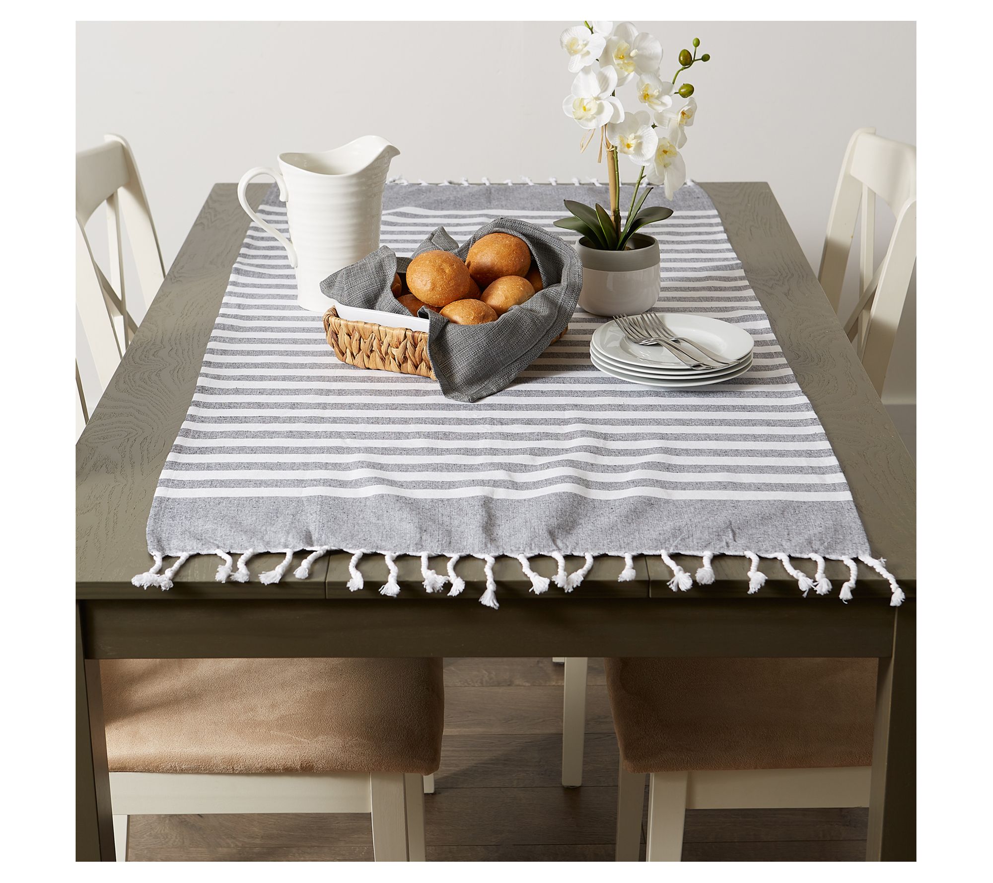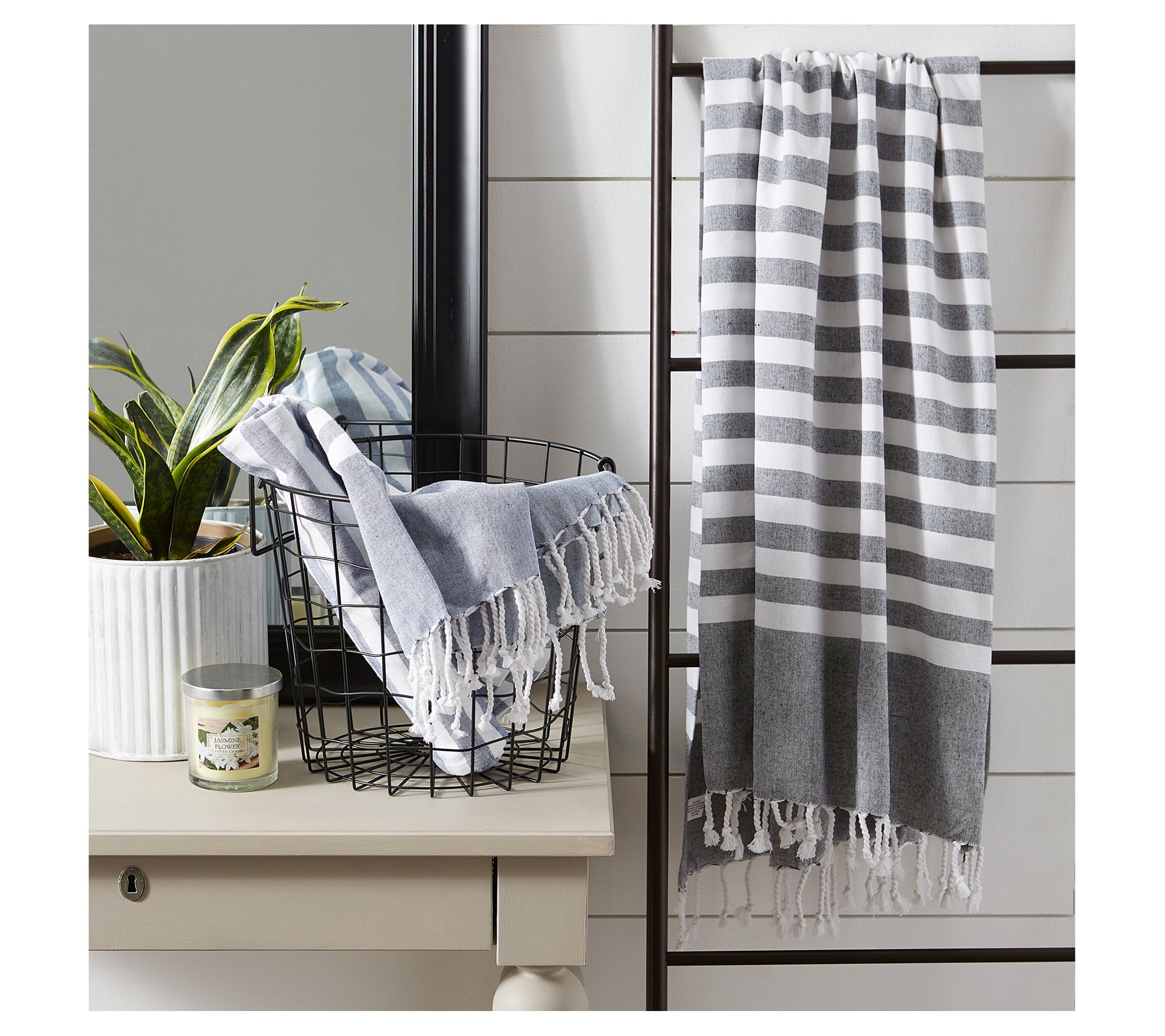 Transform your bathroom into a sanctuary of relaxation and style with the Design Imports 1" Stripe Fouta Throw/Towel. This versatile piece, with its decorative twisted fringe, effortlessly adds a touch of elegance and functionality to your space. Whether draped over a chair for a cozy evening outdoors or serving as a chic table runner, this fouta towel is the perfect accessory for spring and summer. From beach days to picnics, it's an essential that promises both comfort and trendiness. From Design Imports.