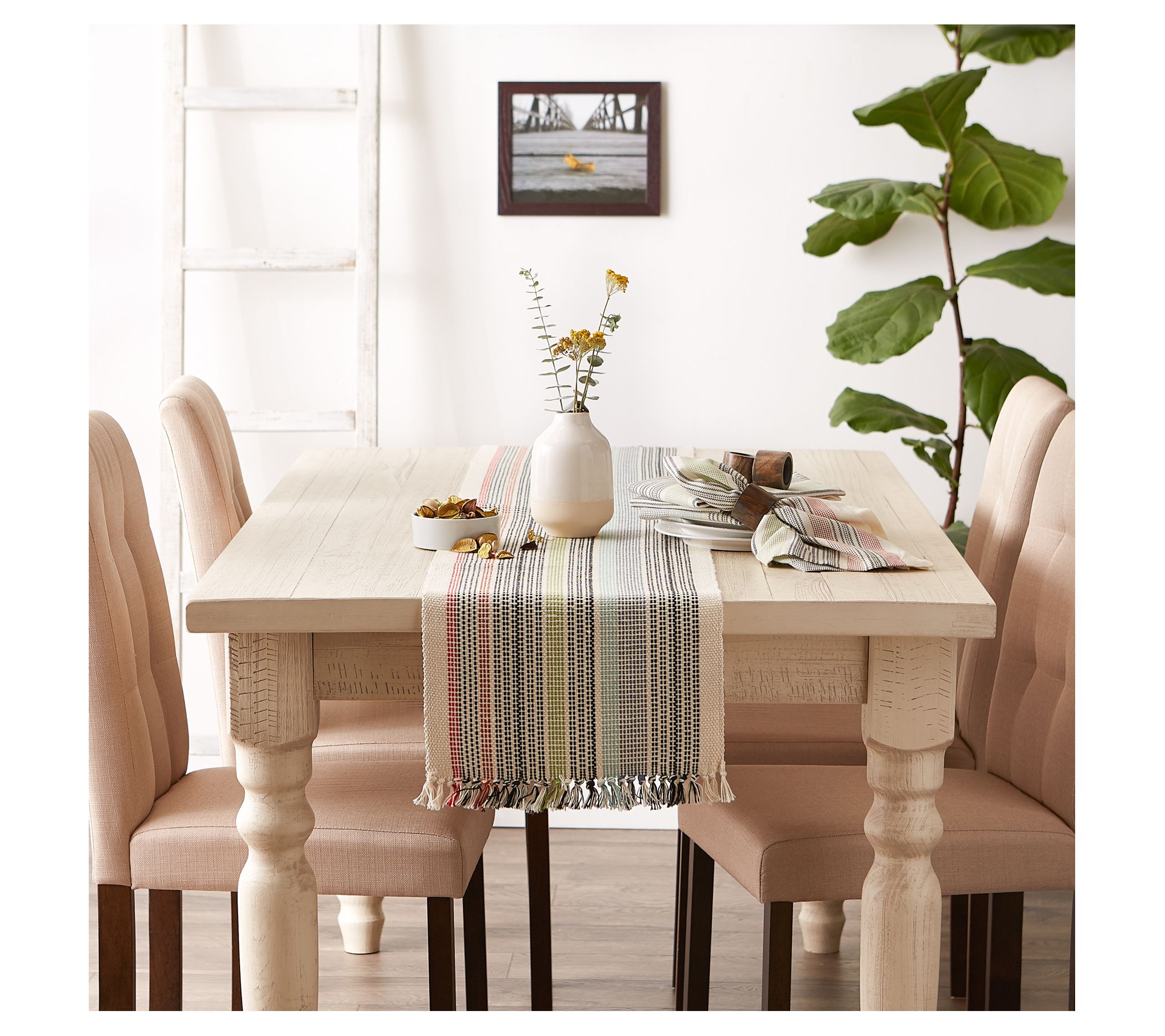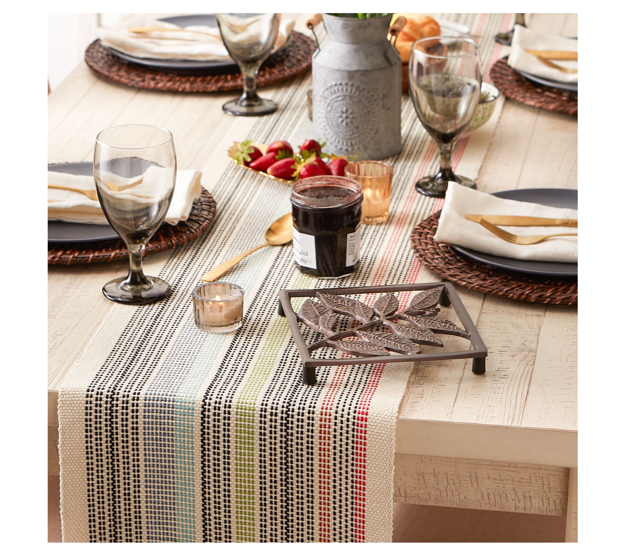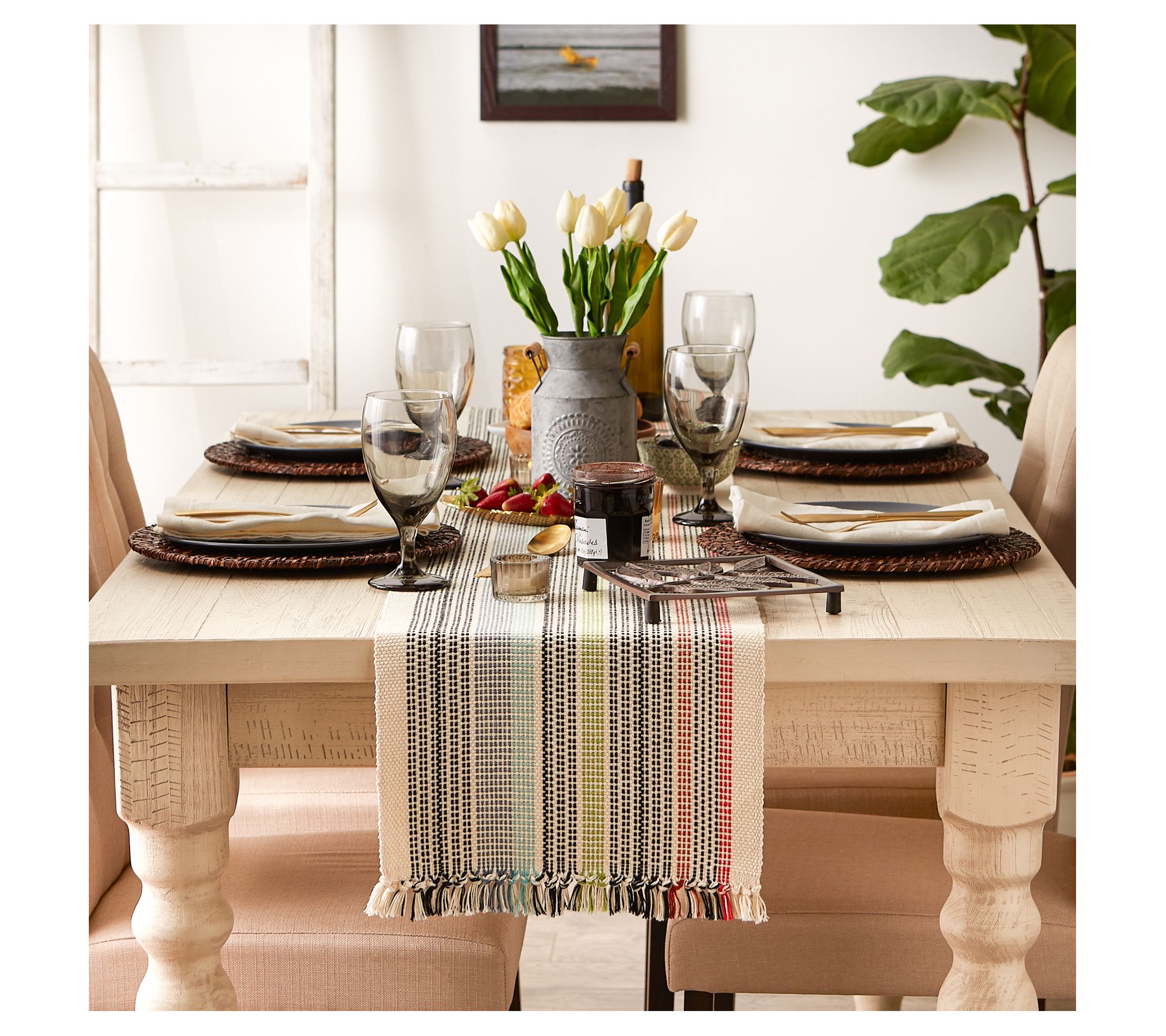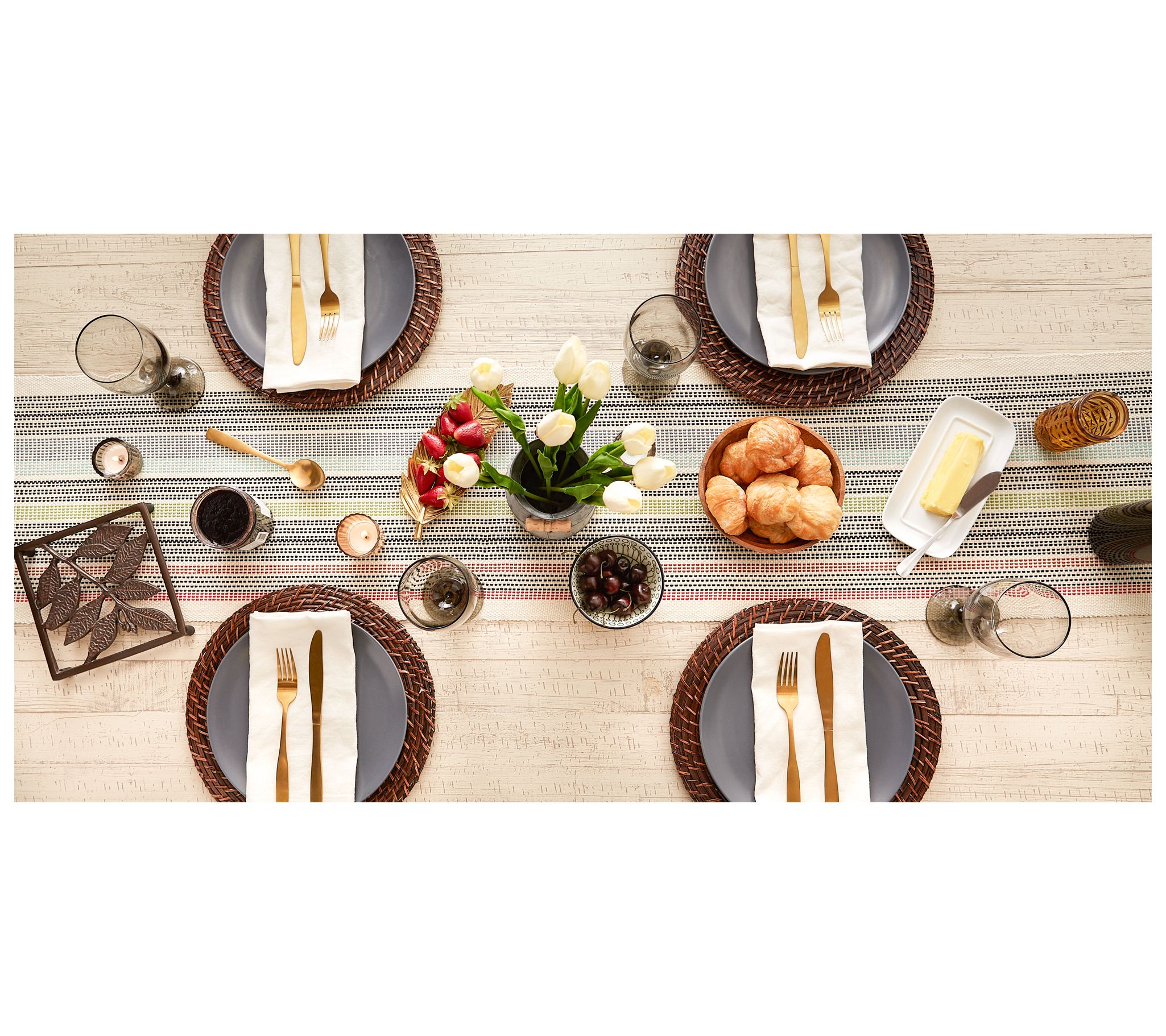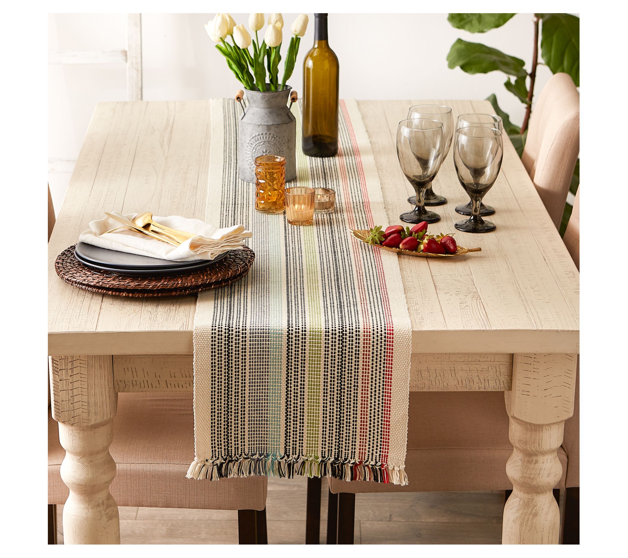 Add texture and a touch of color to your table setting with this playful table runner. From Design Imports.