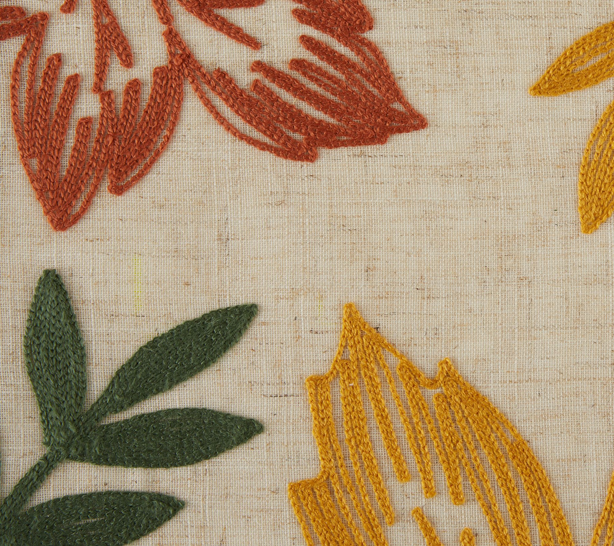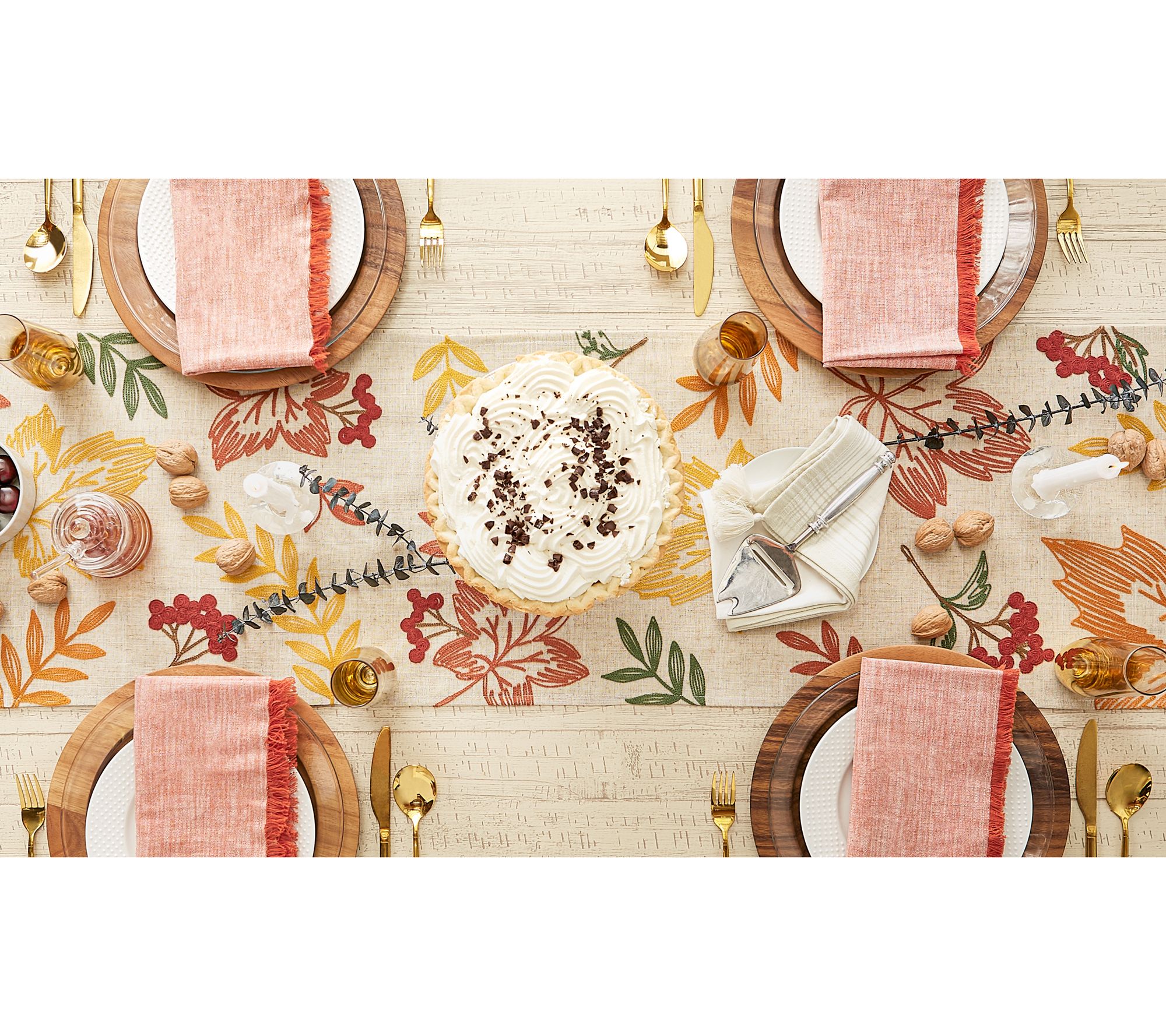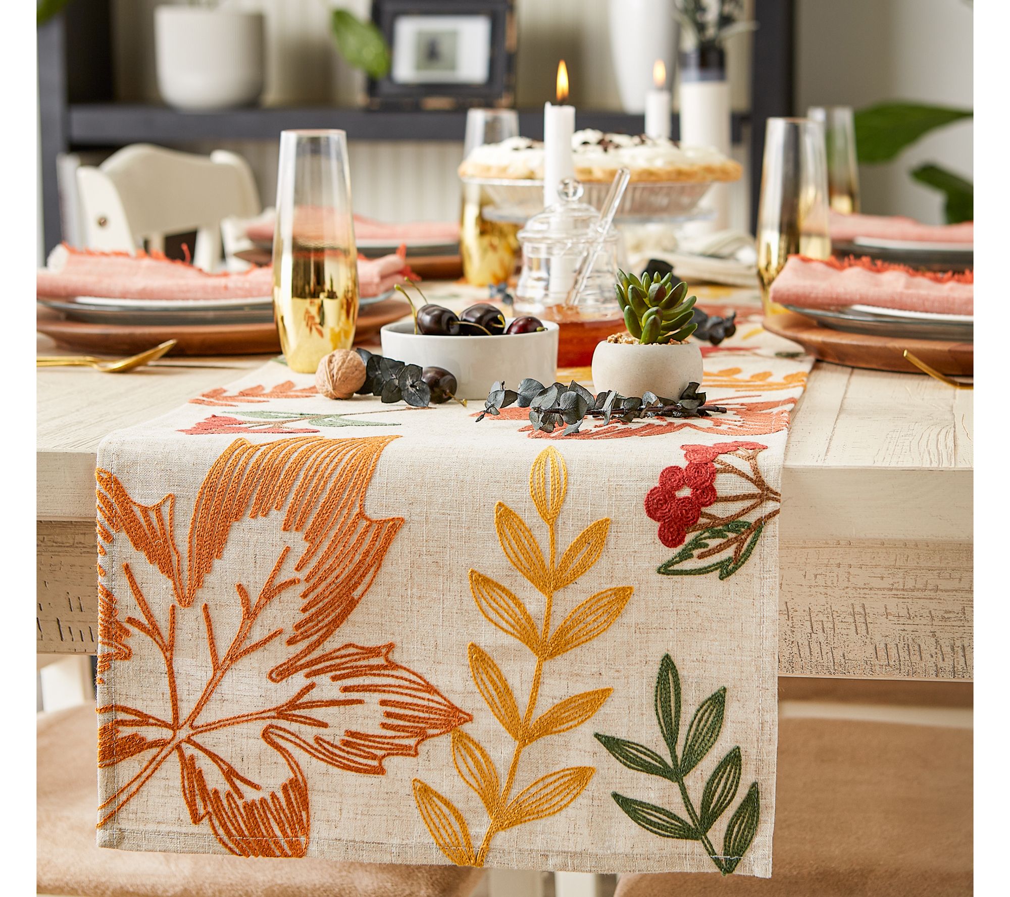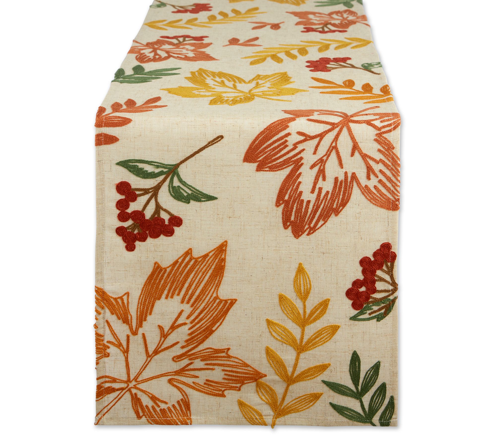 Display this table runner on your dining table to bring a touch of fall joy to mealtime. The scattered autumn leaves instantly add style and flair. From Design Imports.