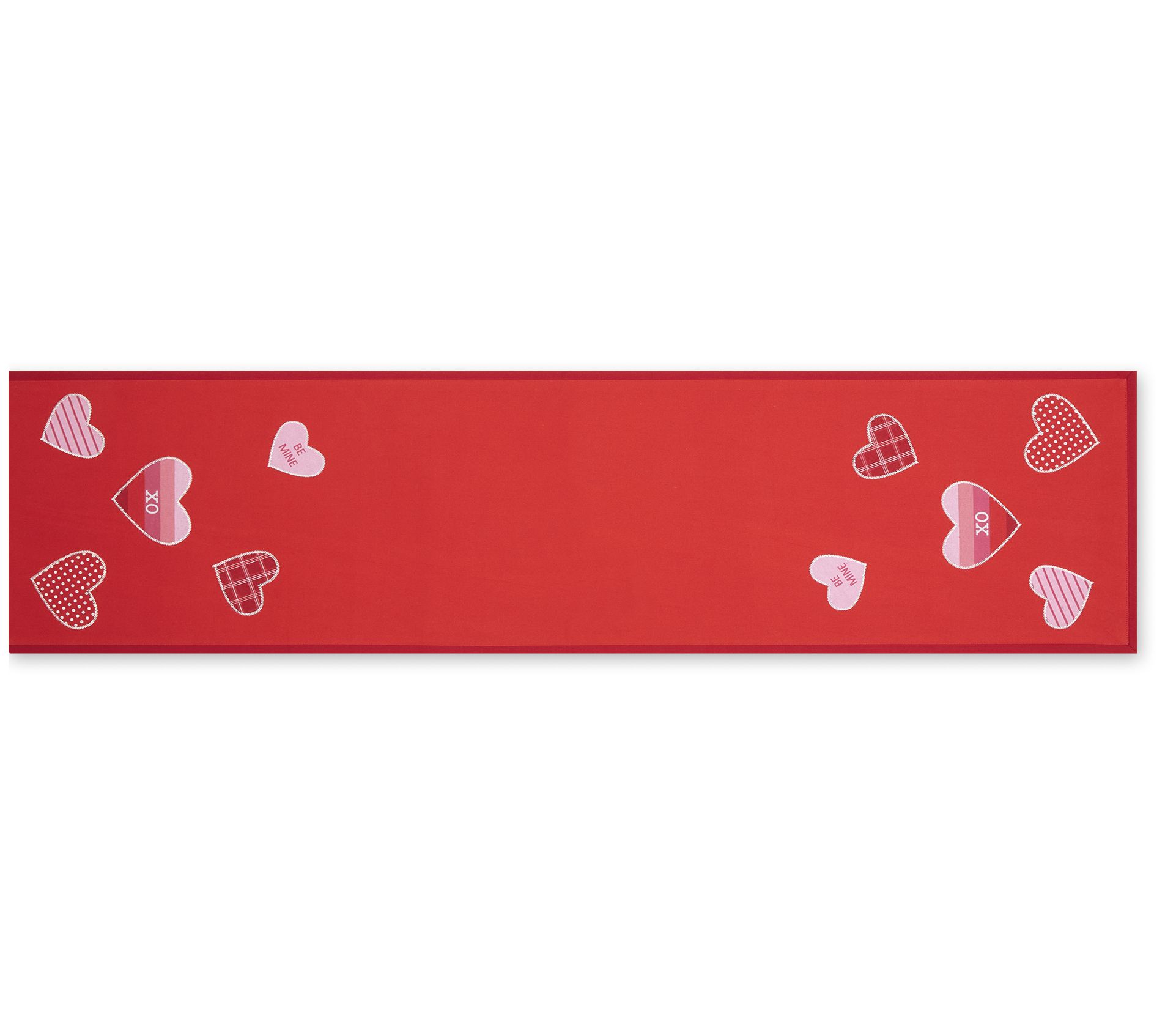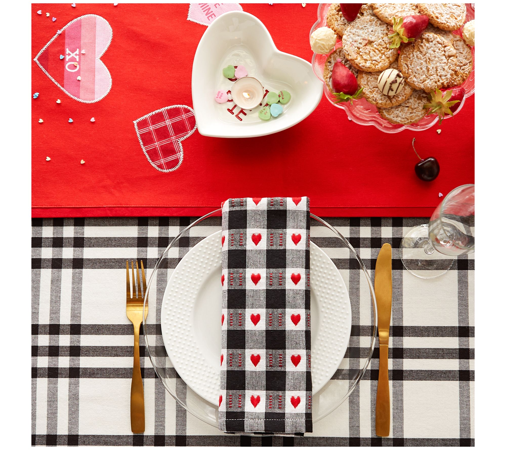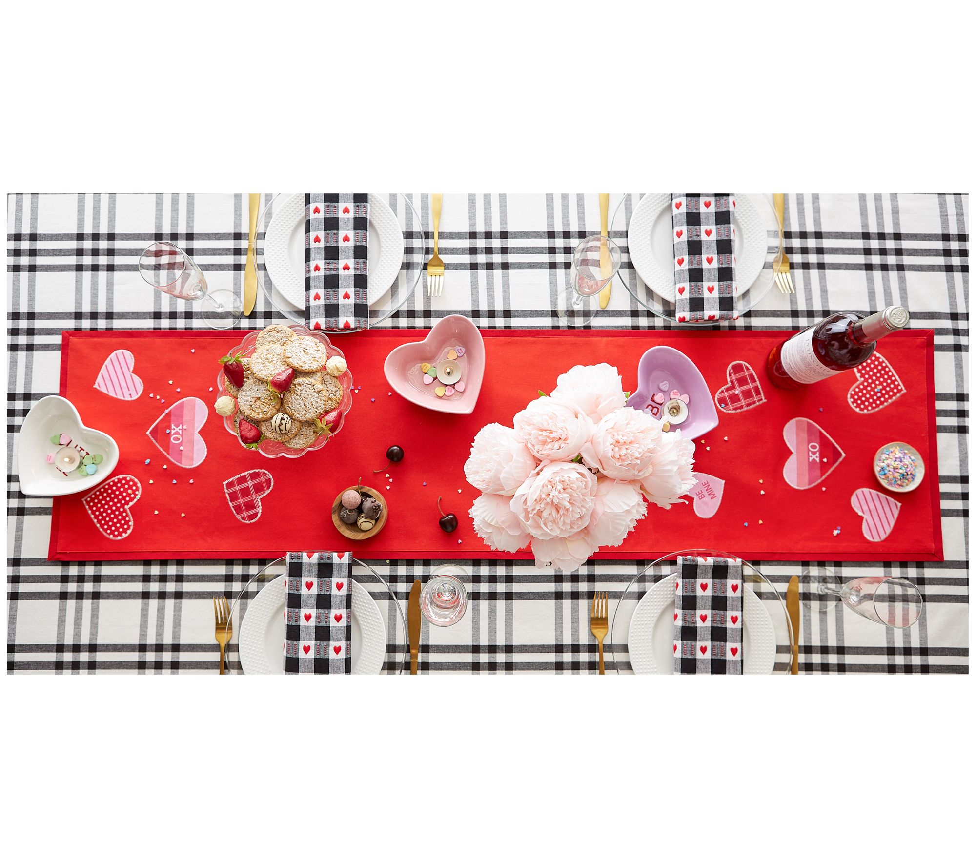 With adorable applique embroidered hearts, this cherry red cotton table runner brings a festive, romantic flair to any table and makes the perfect Valentine's Day or anniversary accent. From Design Imports.