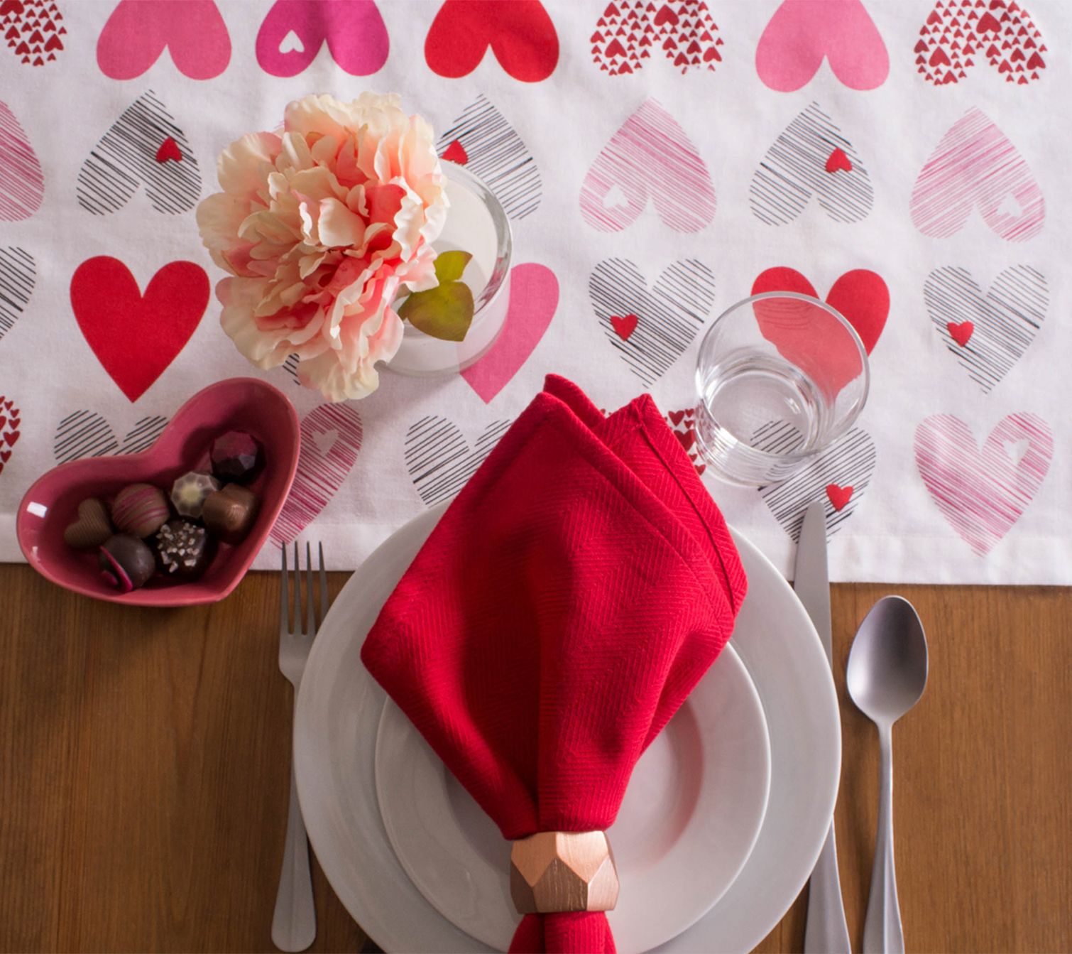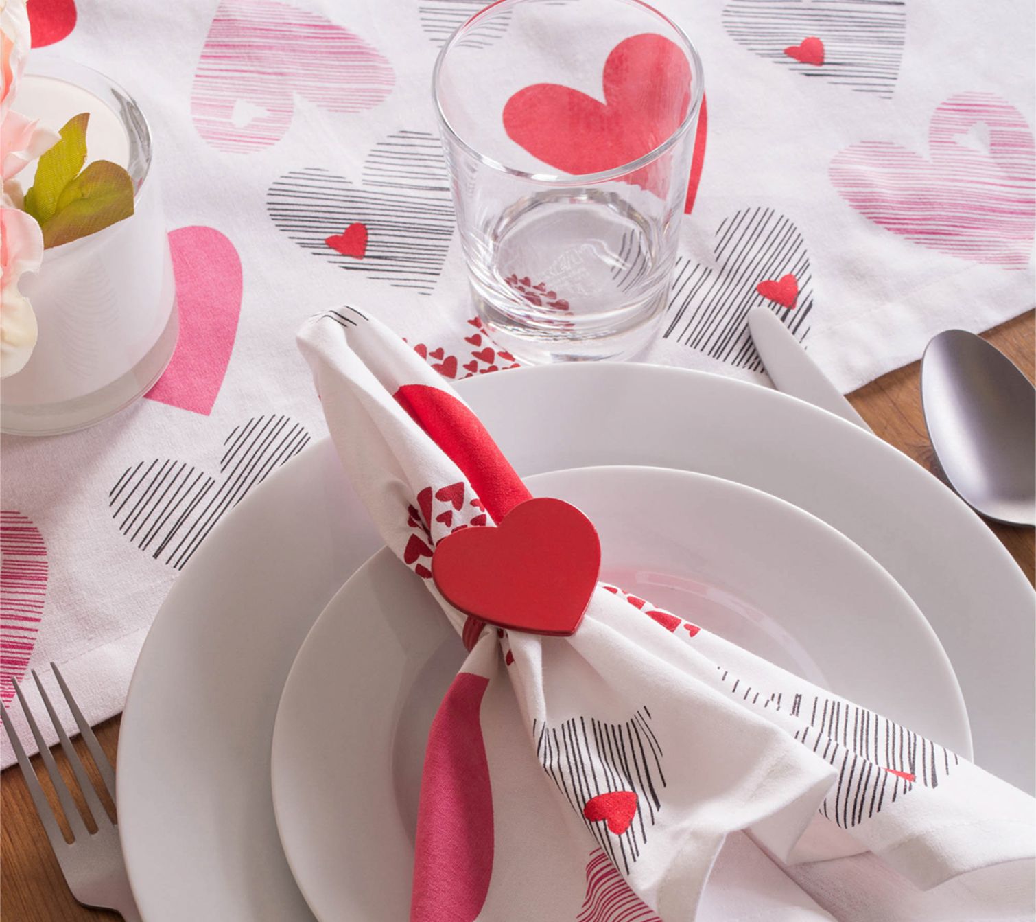 Perfect for a pretty Valentine's Day table or any sweet day, this hearts collage print table runner is a charming addition to your decor. It features a 1" hem and mitered corners for a beautifully finished look. From Design Imports.