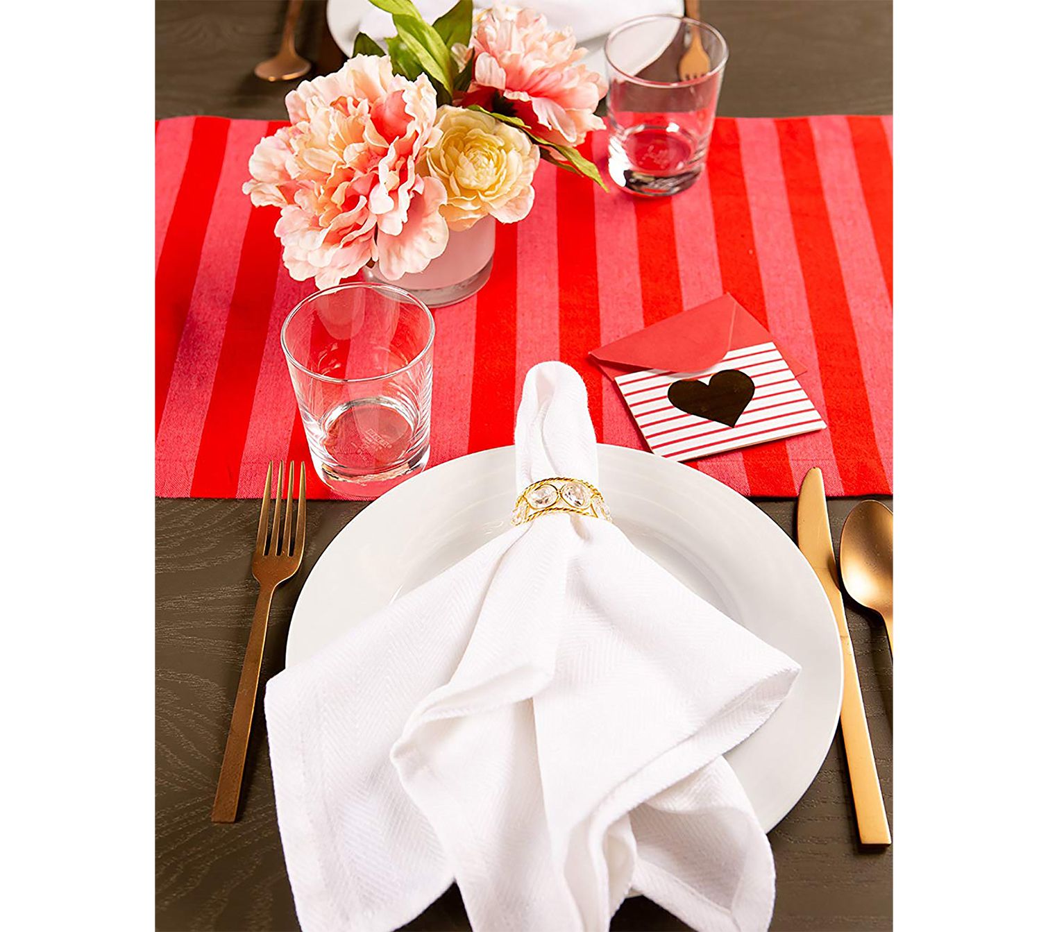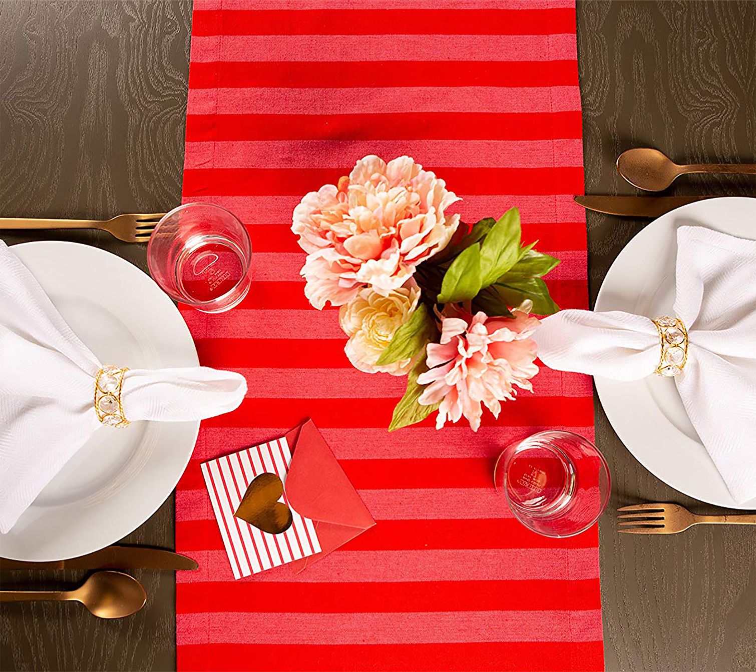 Put a fresh, new spin on your Valentine's Day table with this pink and red striped table runner with a hearts and arrows design on the end. It's great for any table in your home. From Design Imports.