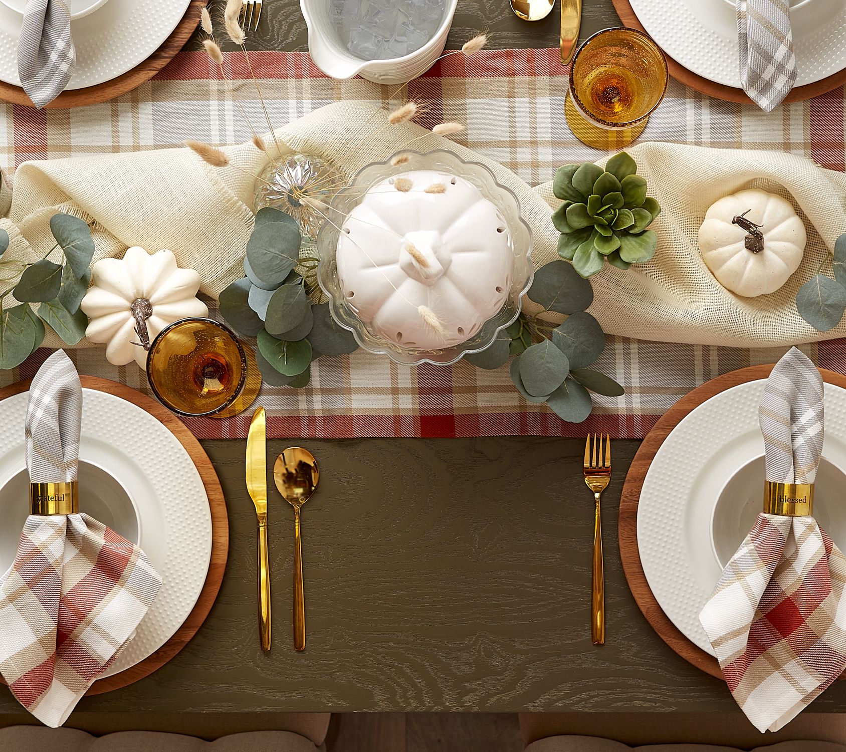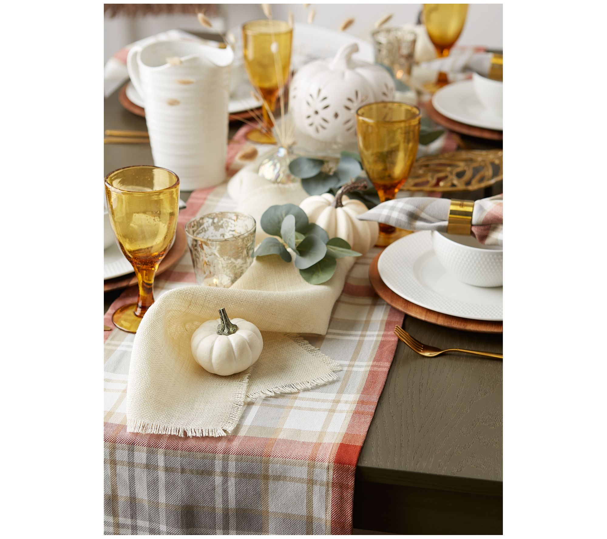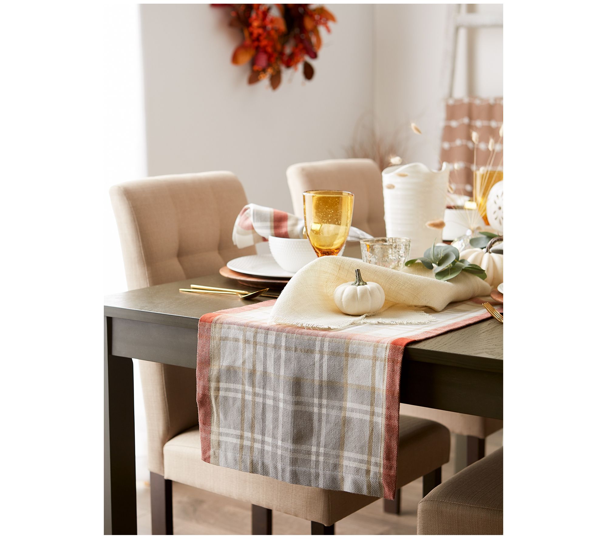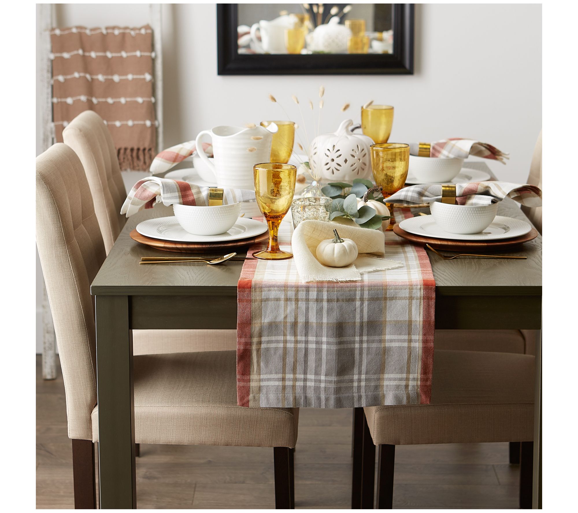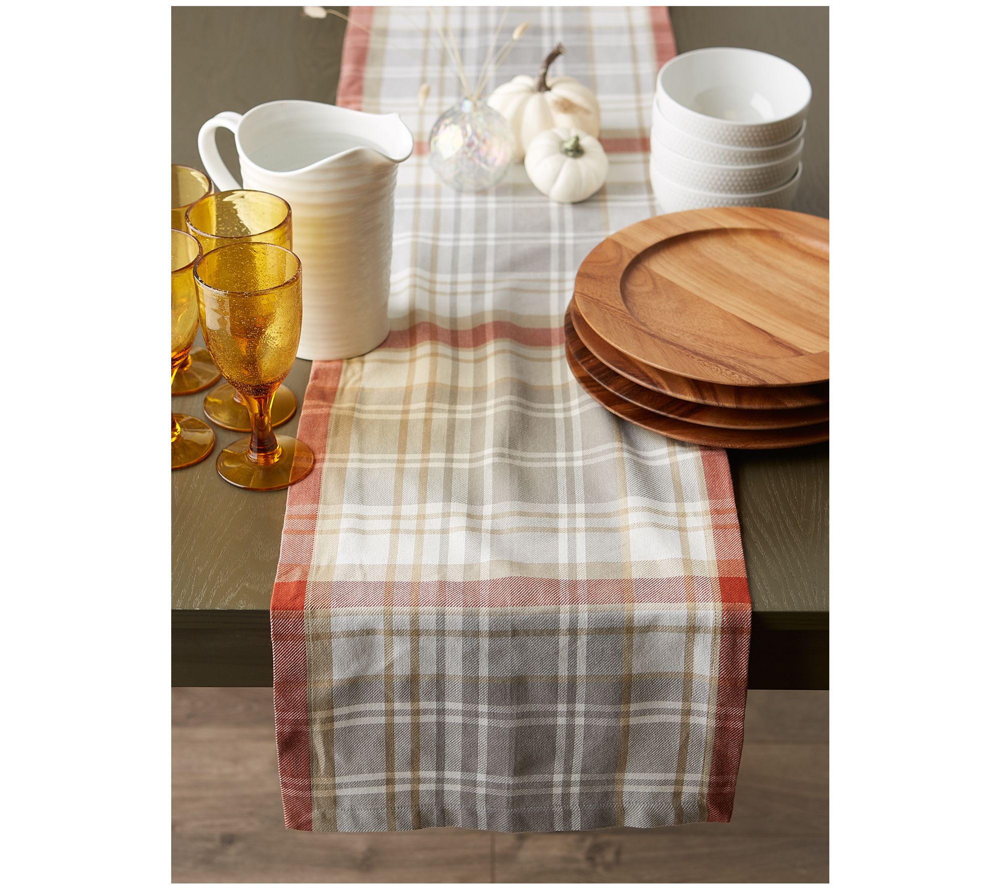 This plaid table runner adds both style and function to your living space. Place it lengthwise on your console, dining, coffee, or entryway tables for an instant update. From Design Imports.