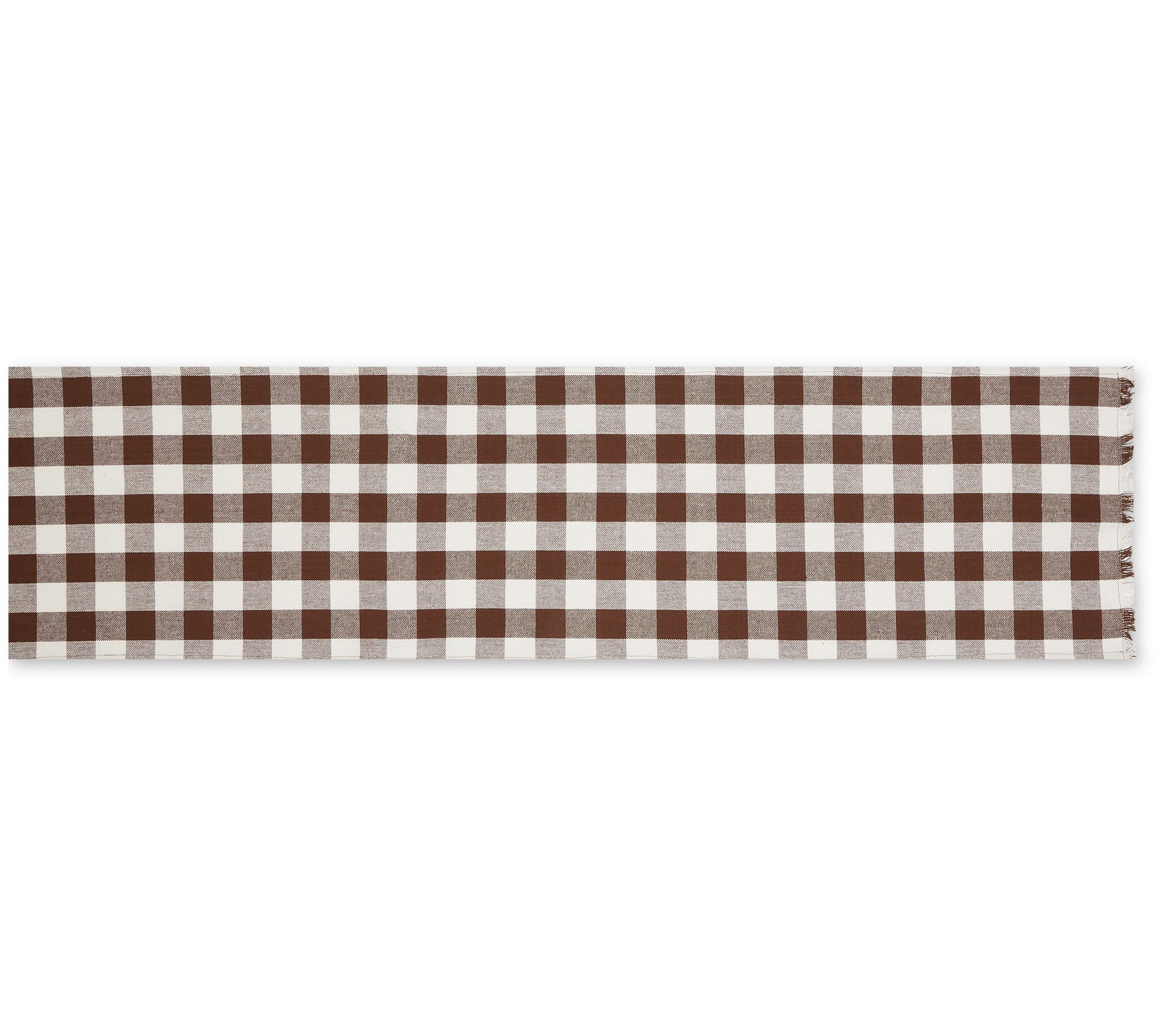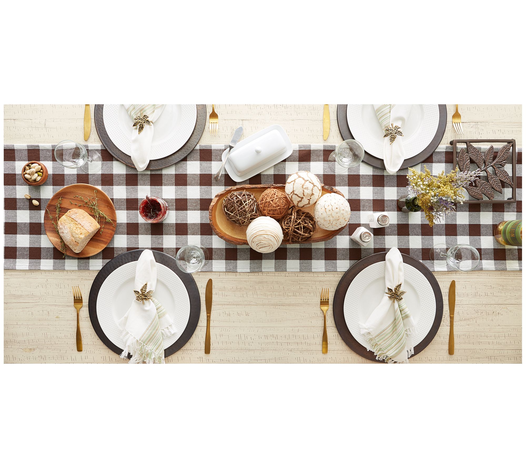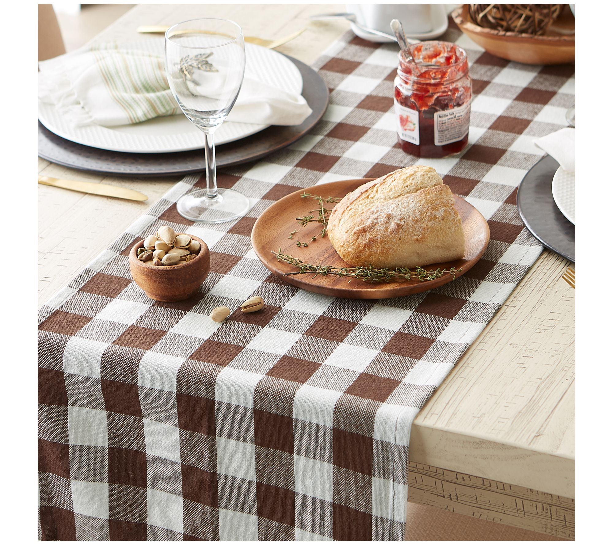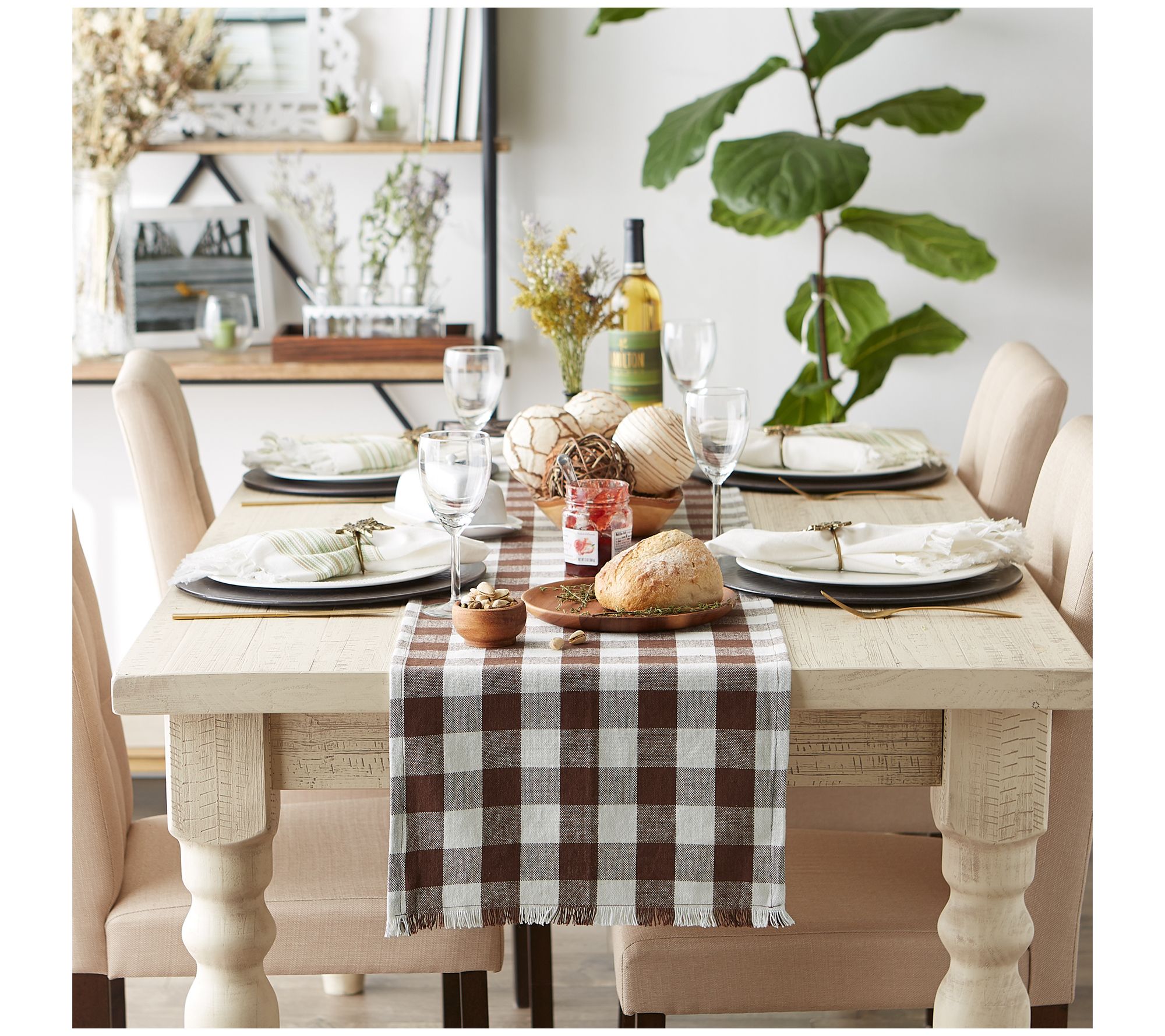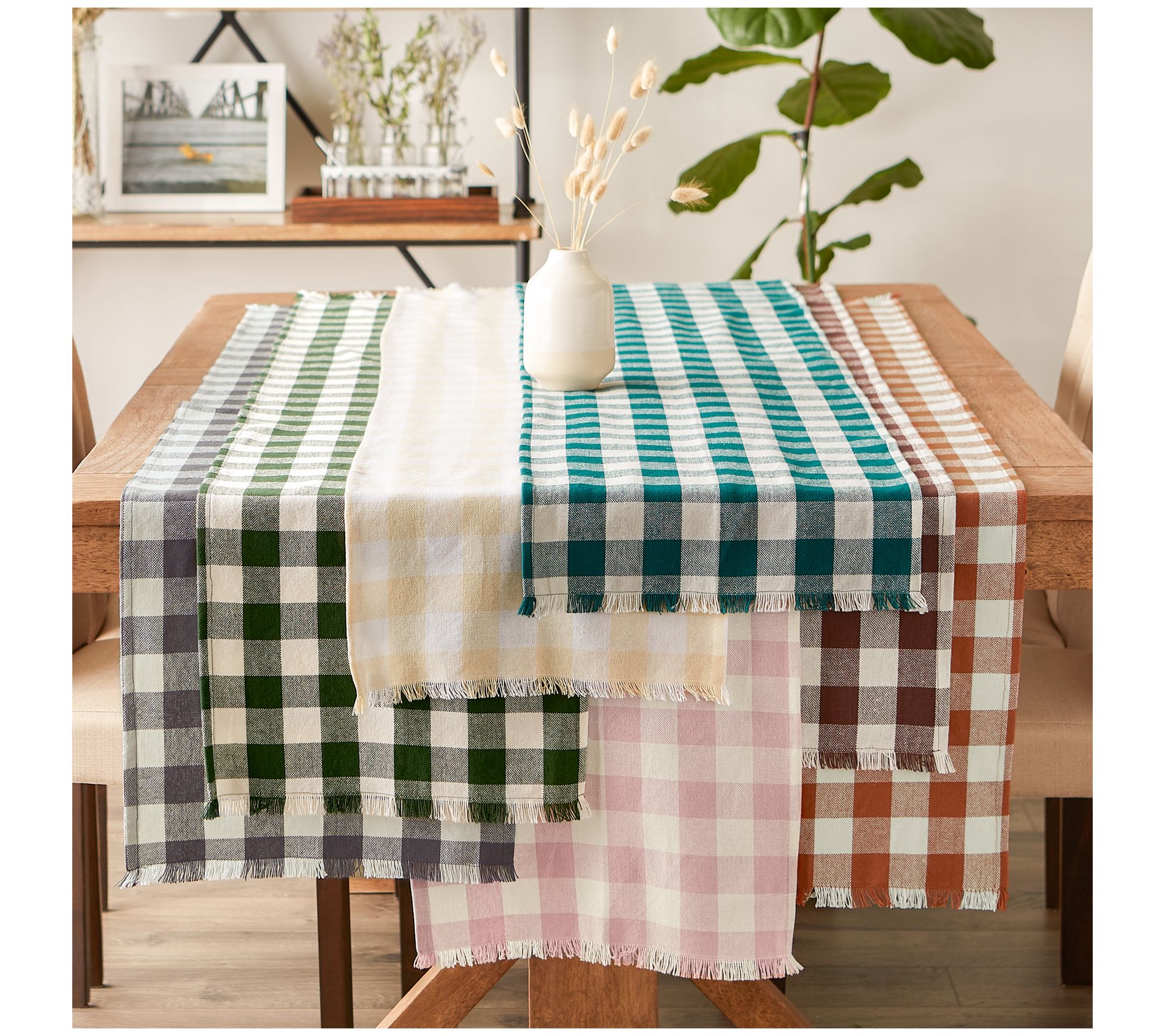 In a timeless check design, this heavyweight cotton table runner with a fringe on two sides elevates the look of any table space or occasion. From Design Imports.
