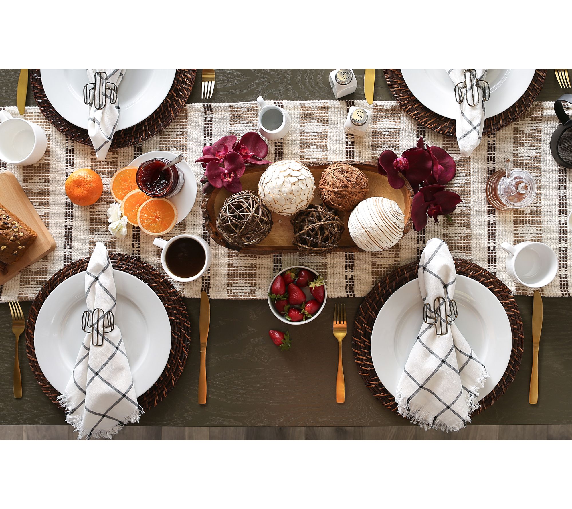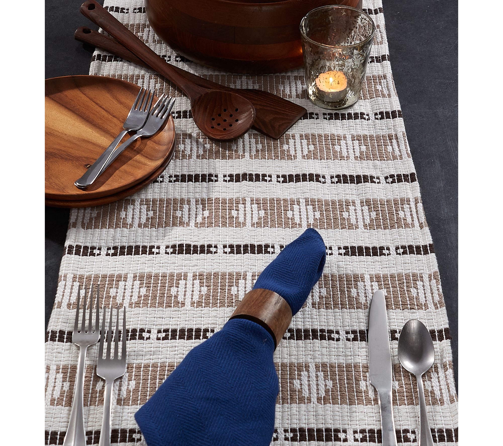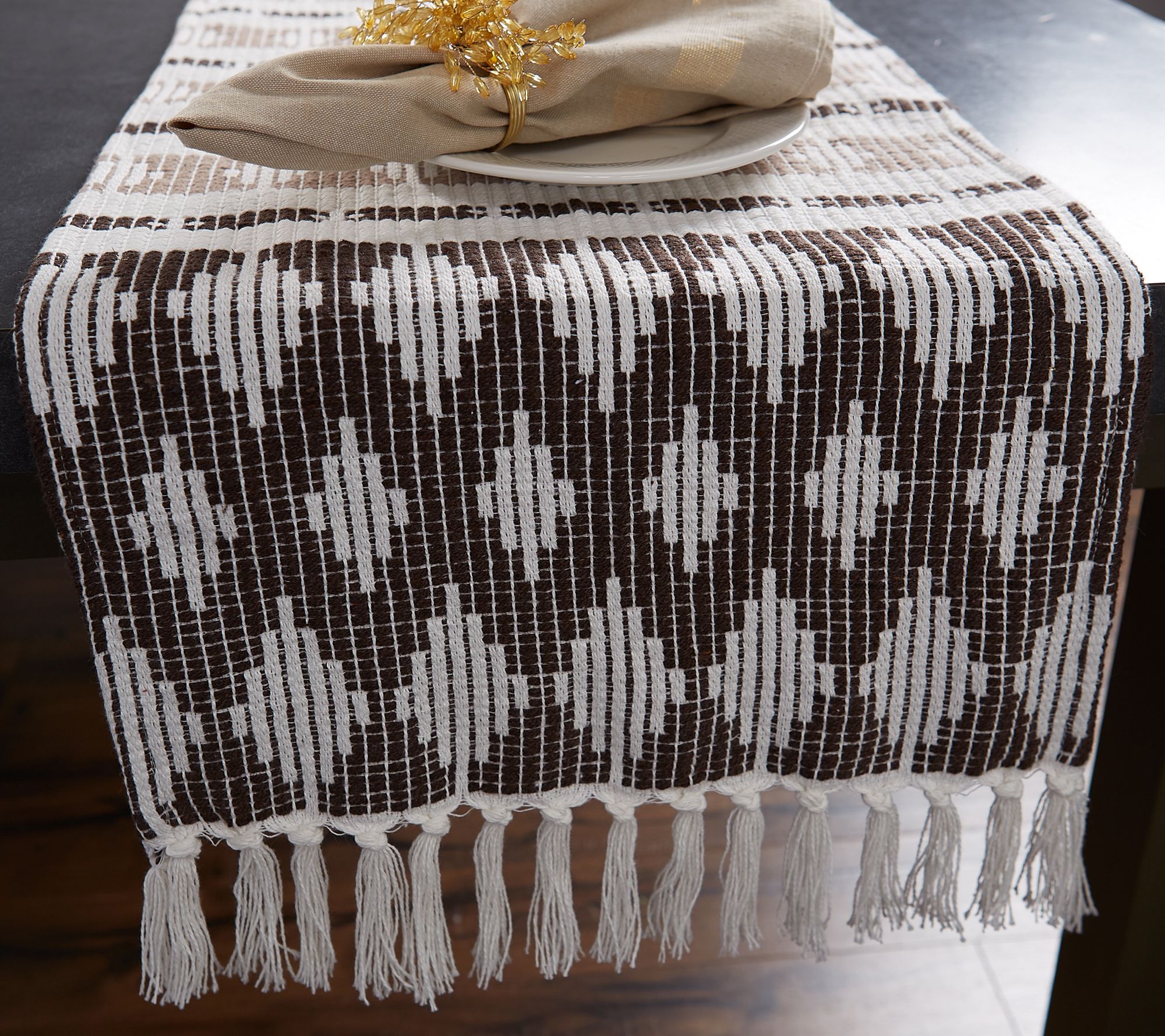 This table runner prevents spills and scratches on your tabletop while adding style and flair. Display it in your dining room, entryway, or foyer. From Design Imports.