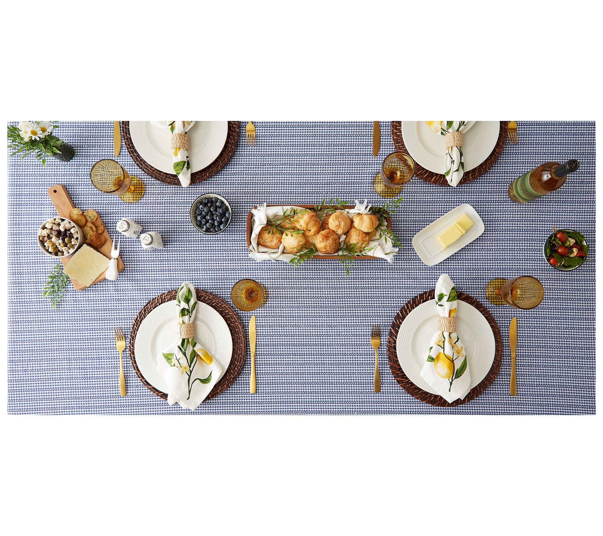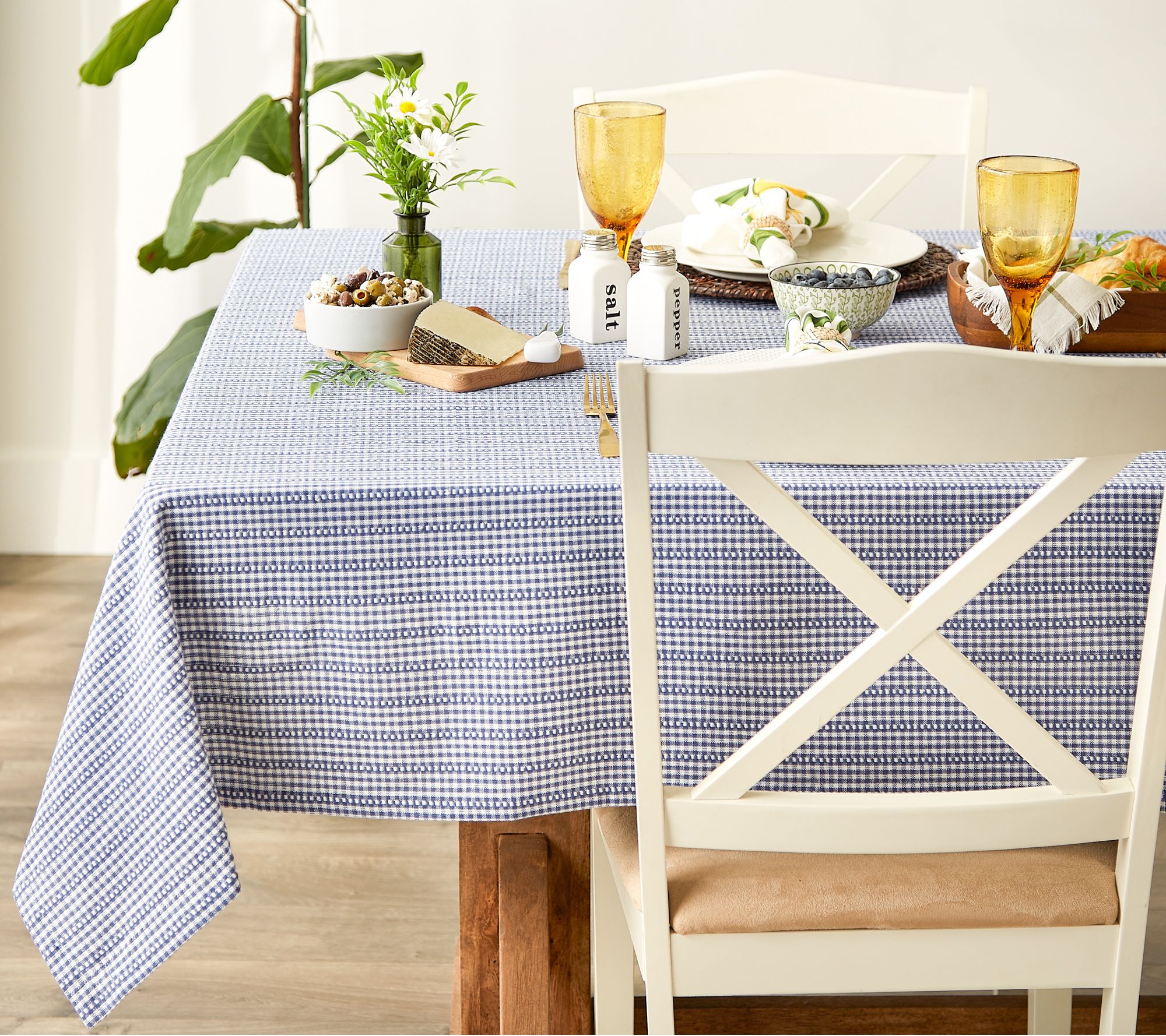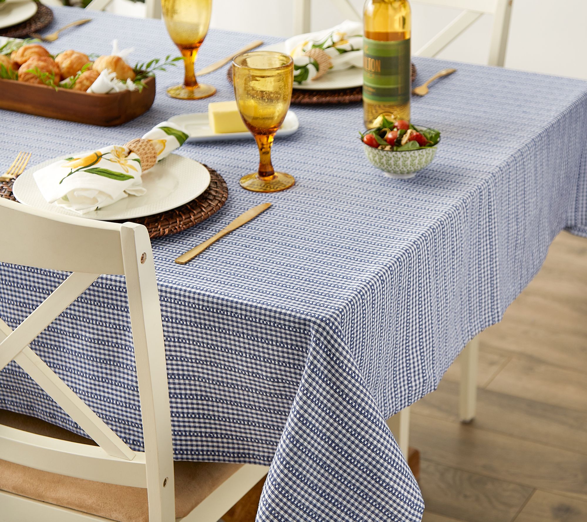 Capture the fun of a fresh farmhouse morning when you set your breakfast nook table with this charming gingham cotton tablecloth. From Design Imports.