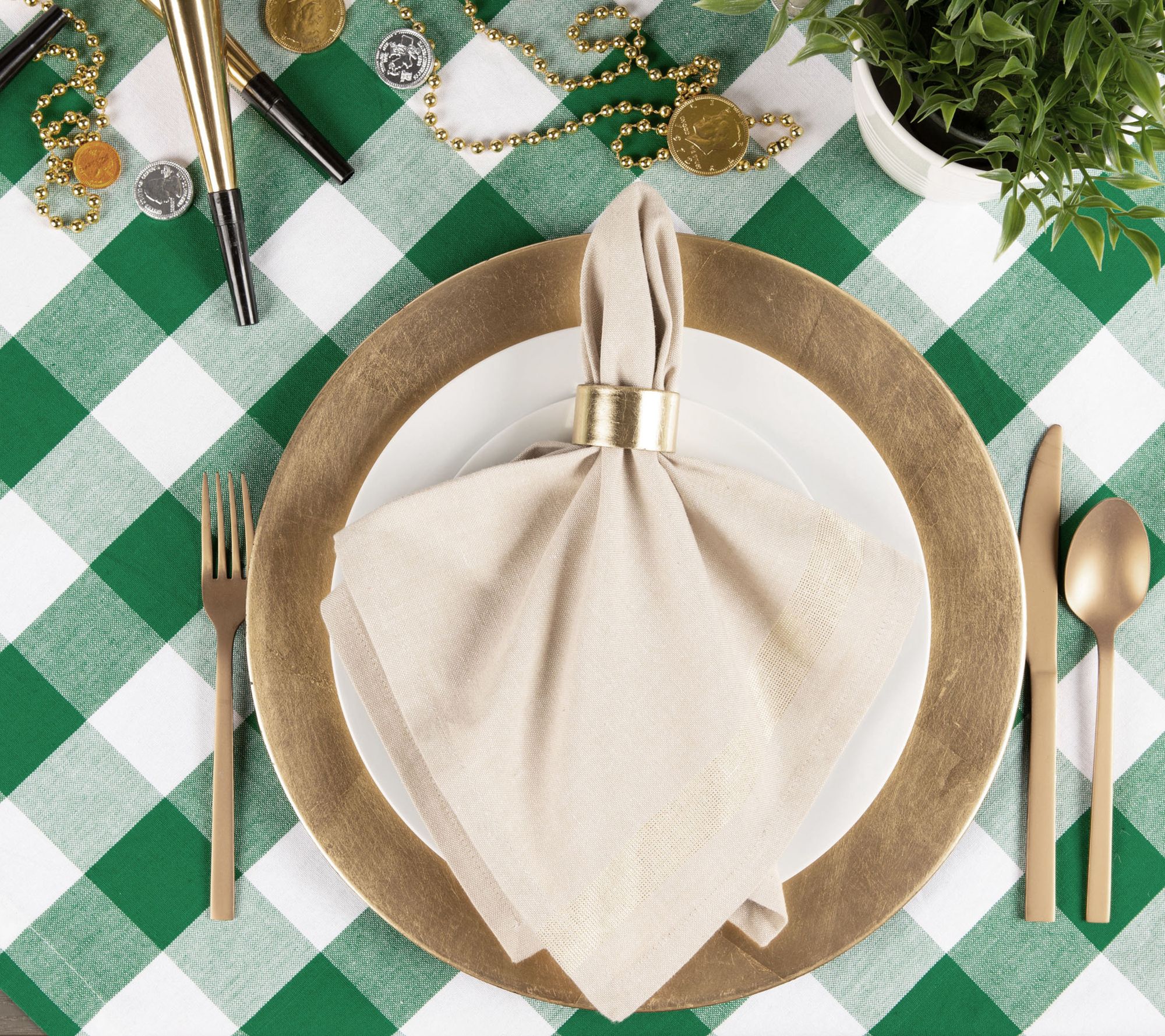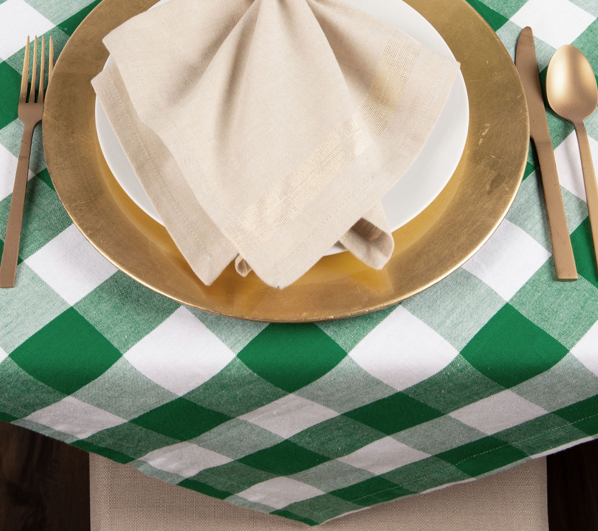 Dine in style with this shamrock green buffalo check tablecloth. It's ideal for St. Patrick's Day and beyond! From Design Imports.
