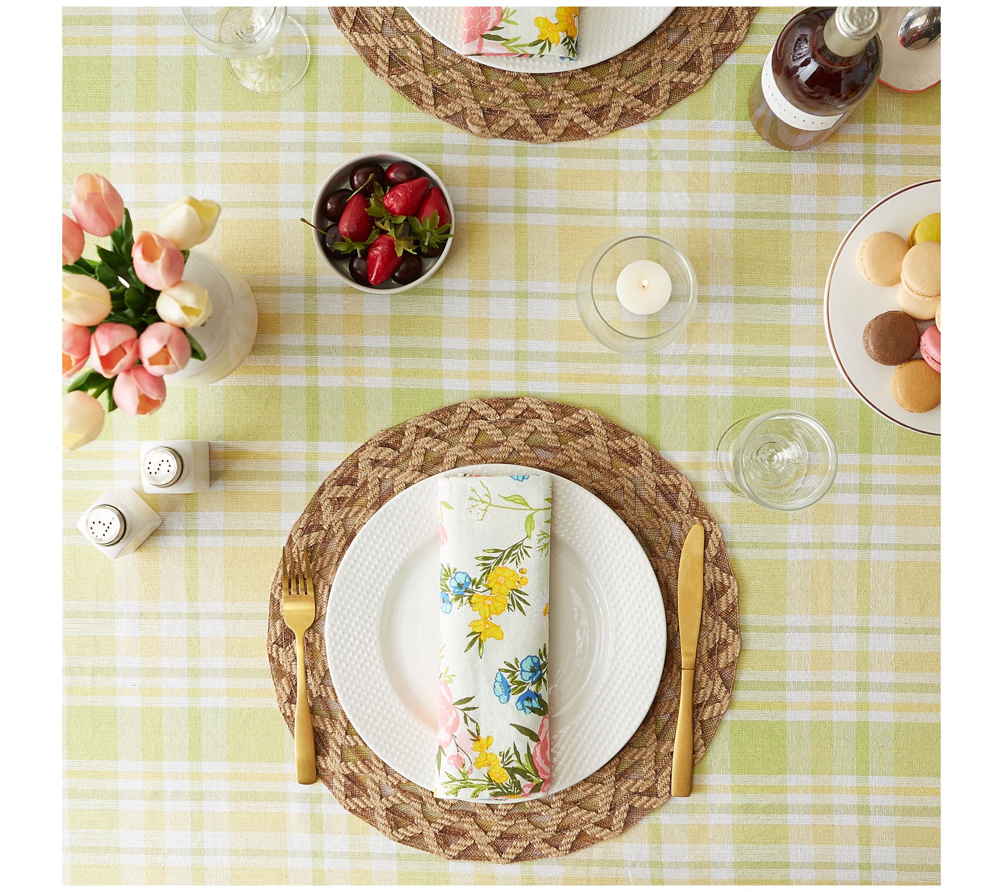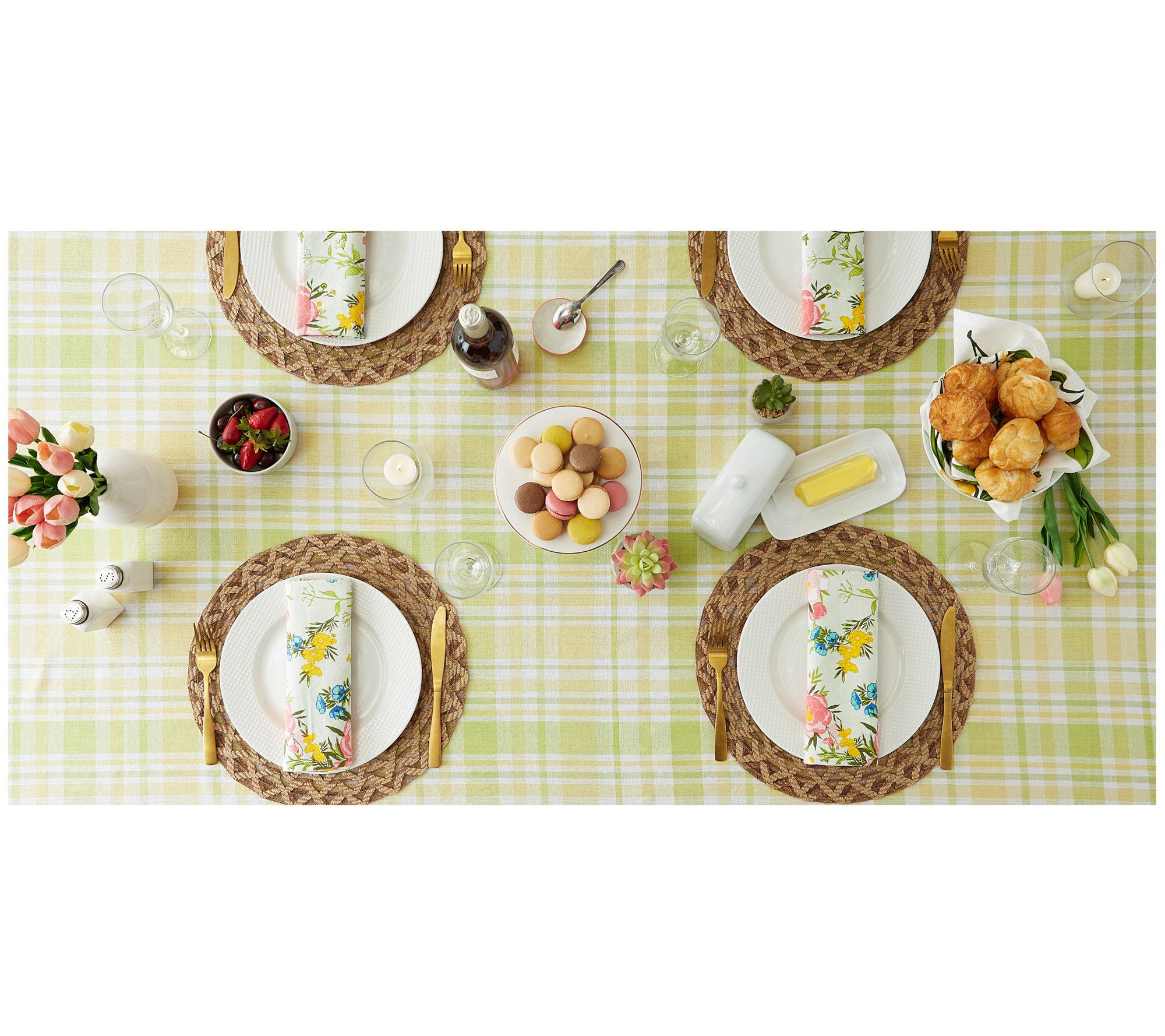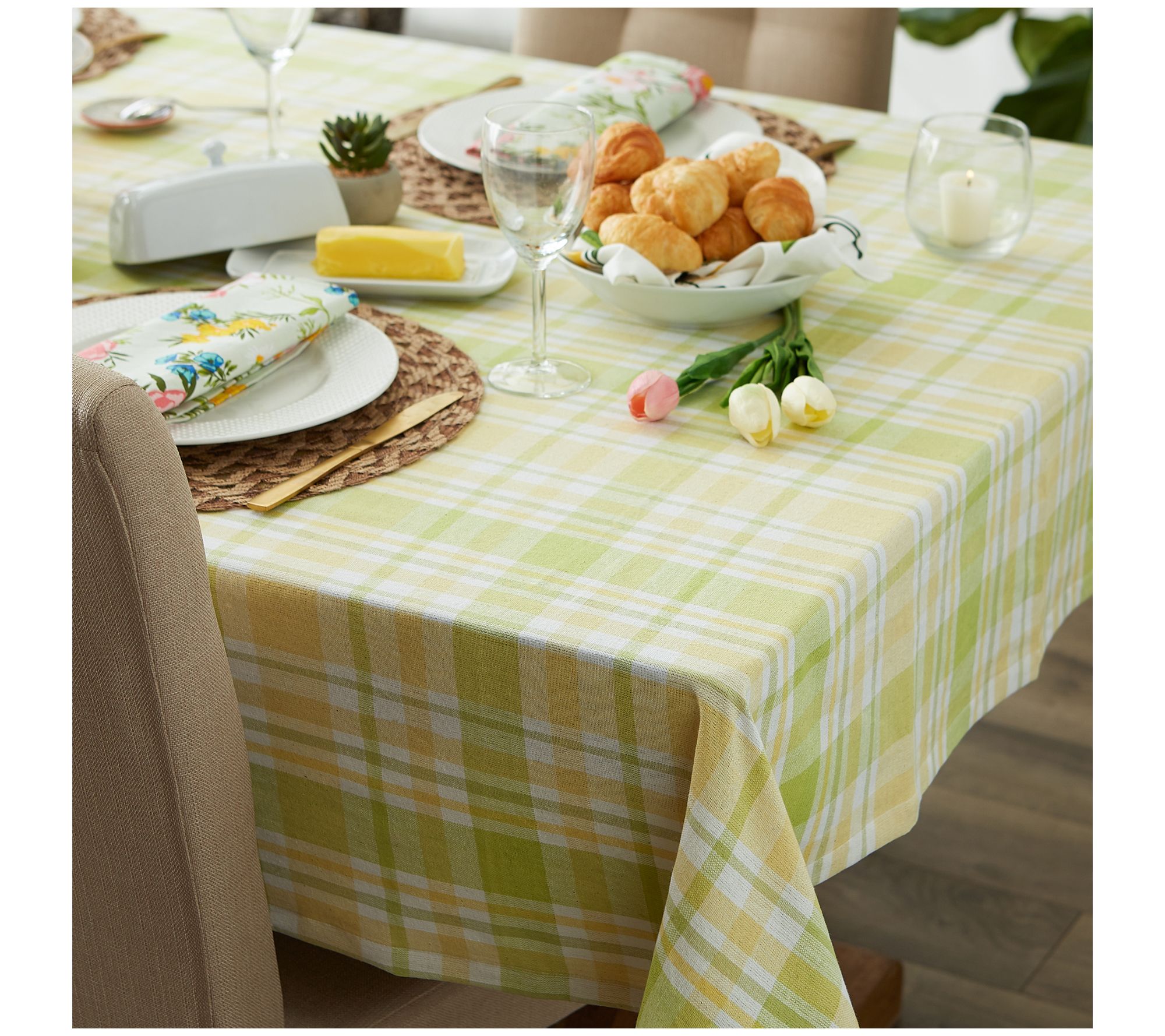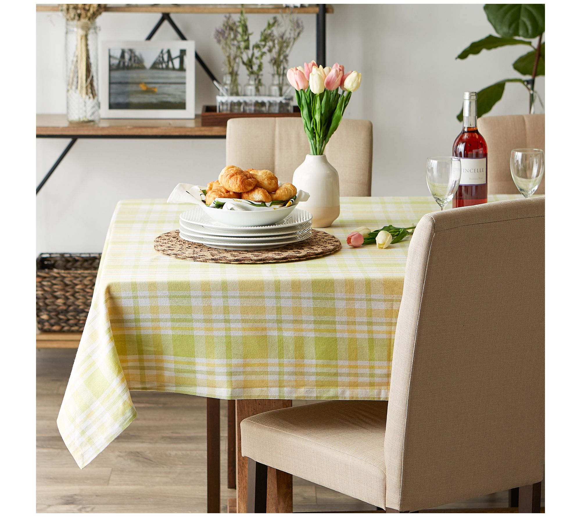 Bring a bright, fresh pop of color to your dining table with this sunshine-hued Lemon Bliss plaid tablecloth crafted from cotton. From Design Imports.