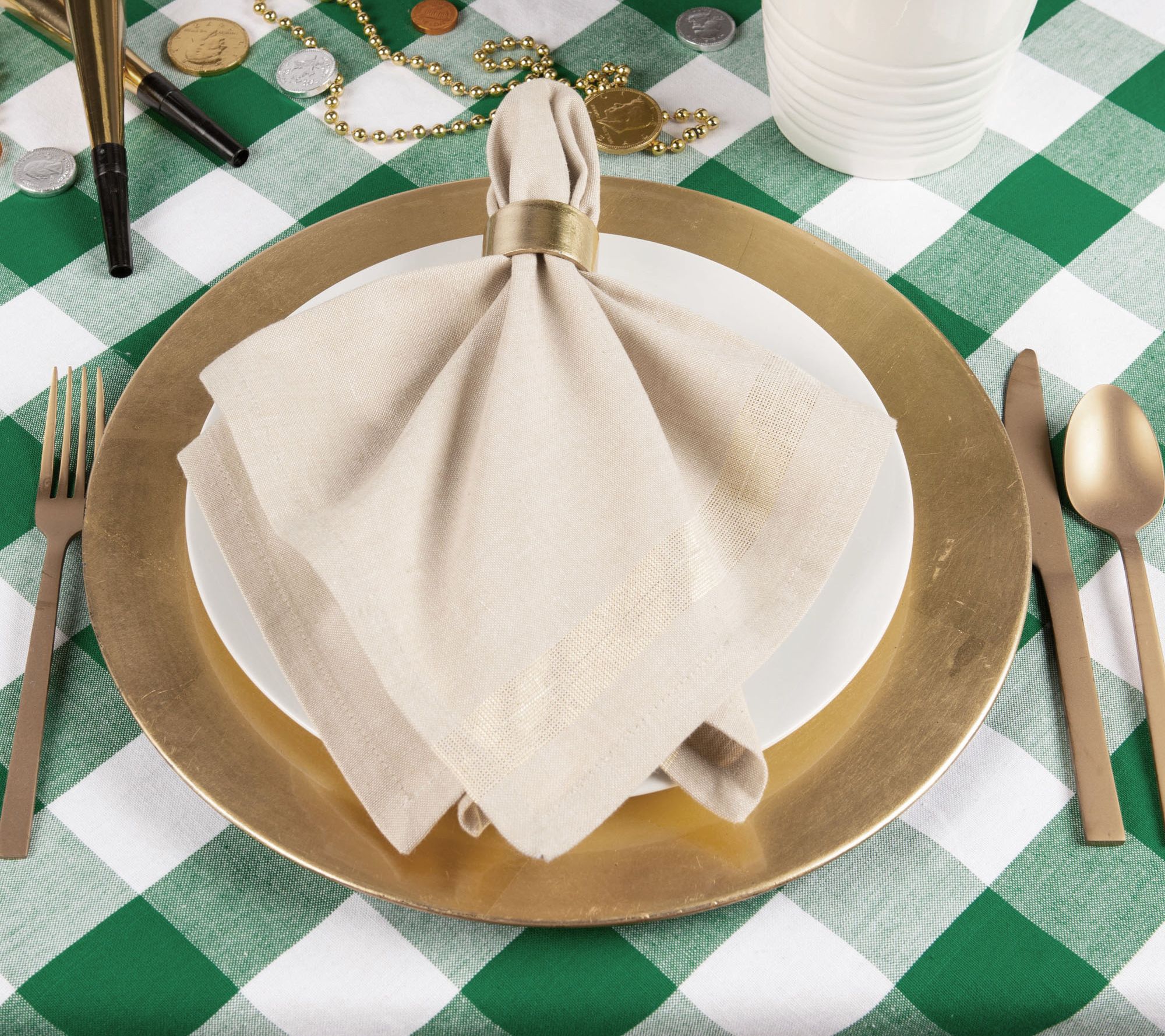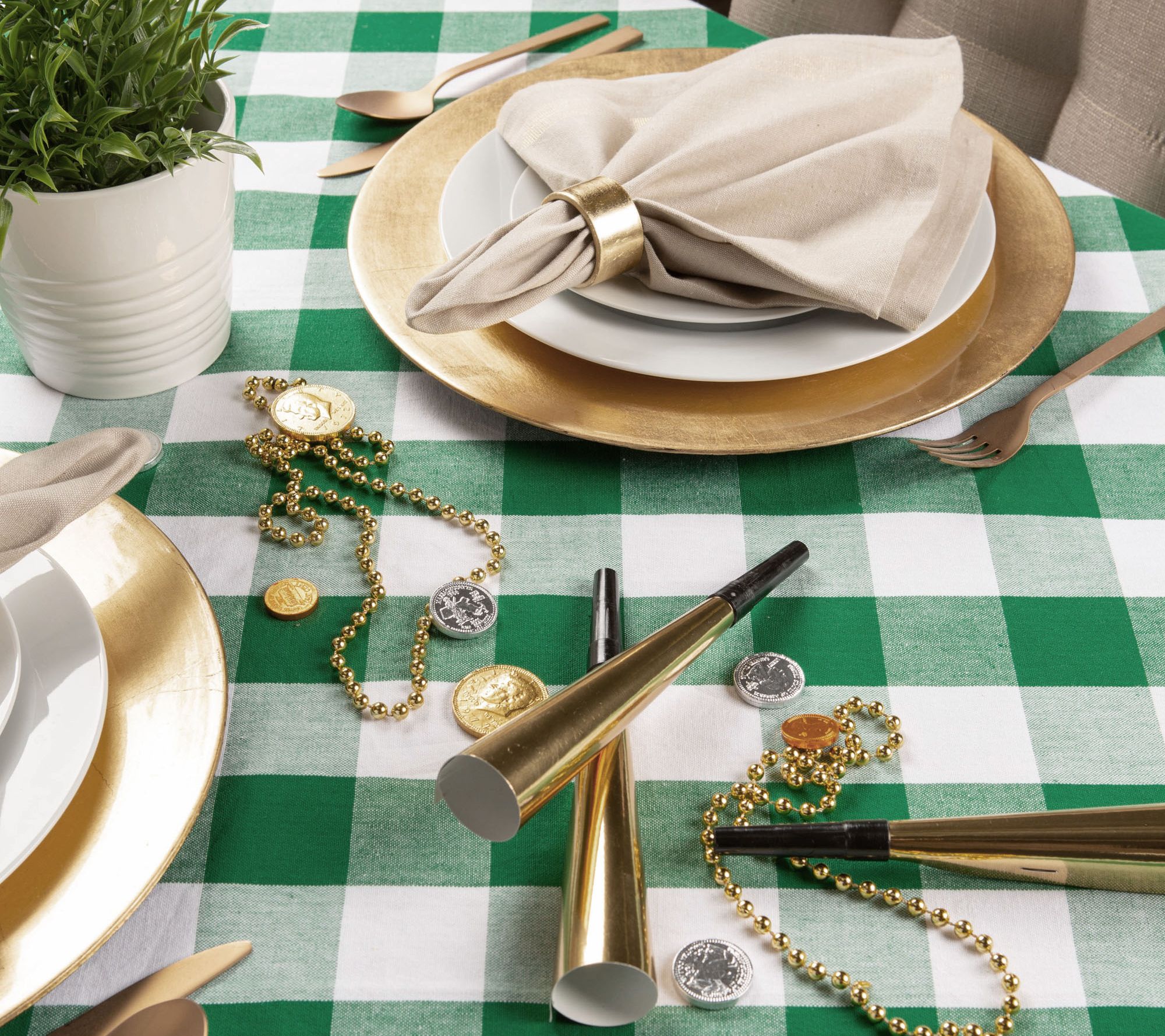 Dine in style with this shamrock green buffalo check tablecloth. It's ideal for St. Patrick's Day and beyond! From Design Imports.