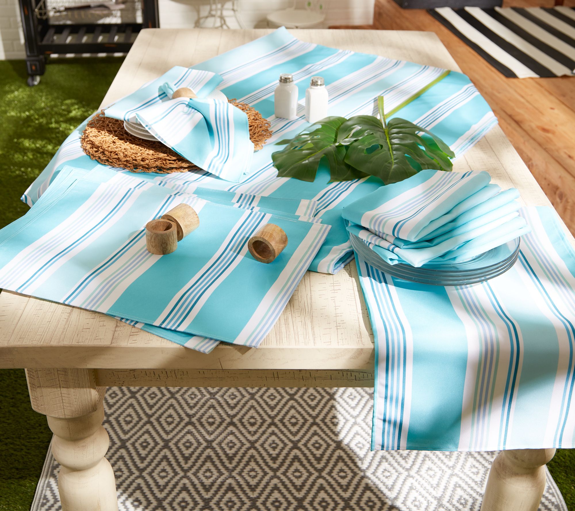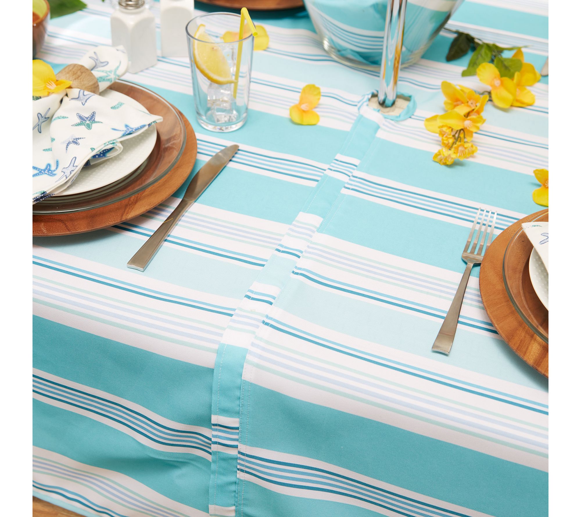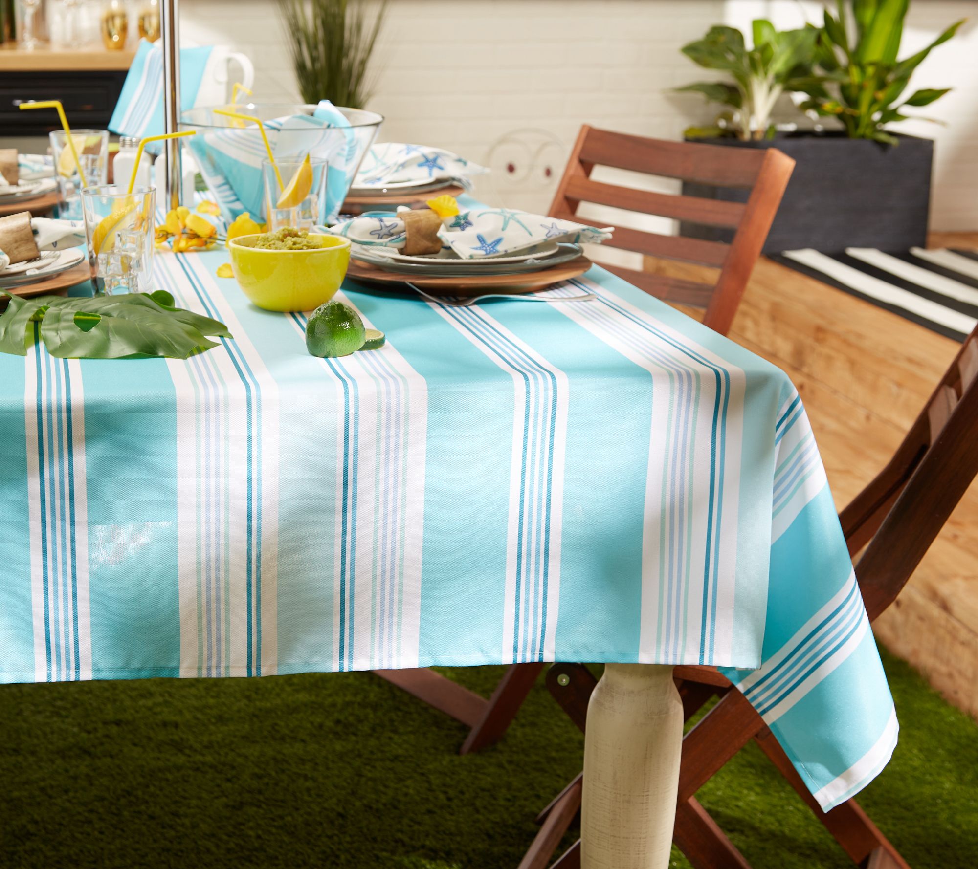 Headed outdoors? Level-up your patio barbecue or poolside get-together with this stain-resistant tablecloth, providing a beachy vibe and a zippered design that easily fits around your patio table umbrella. From Design Imports.
