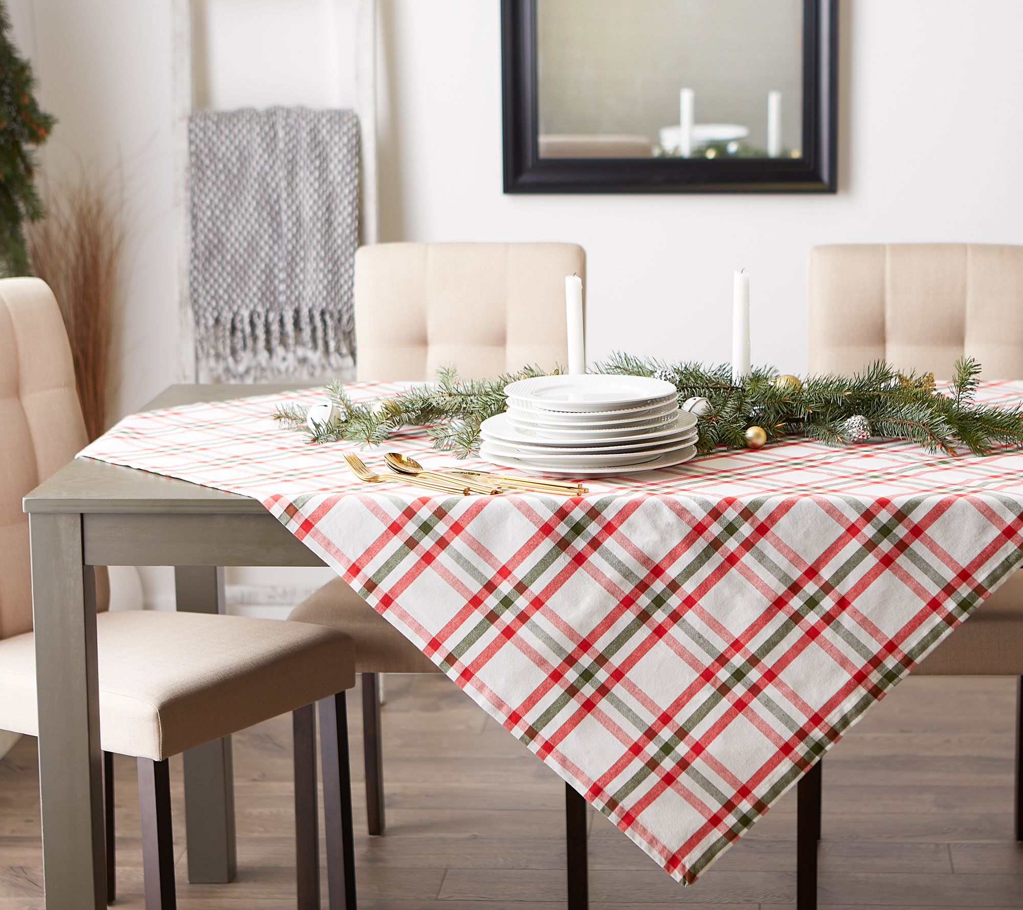 Get crackin' on your home decor this holiday season with a tablecloth that's loaded with Christmas cheer. From Design Imports.