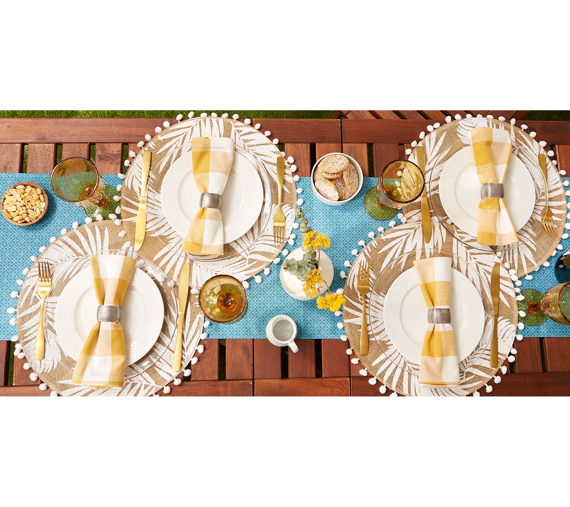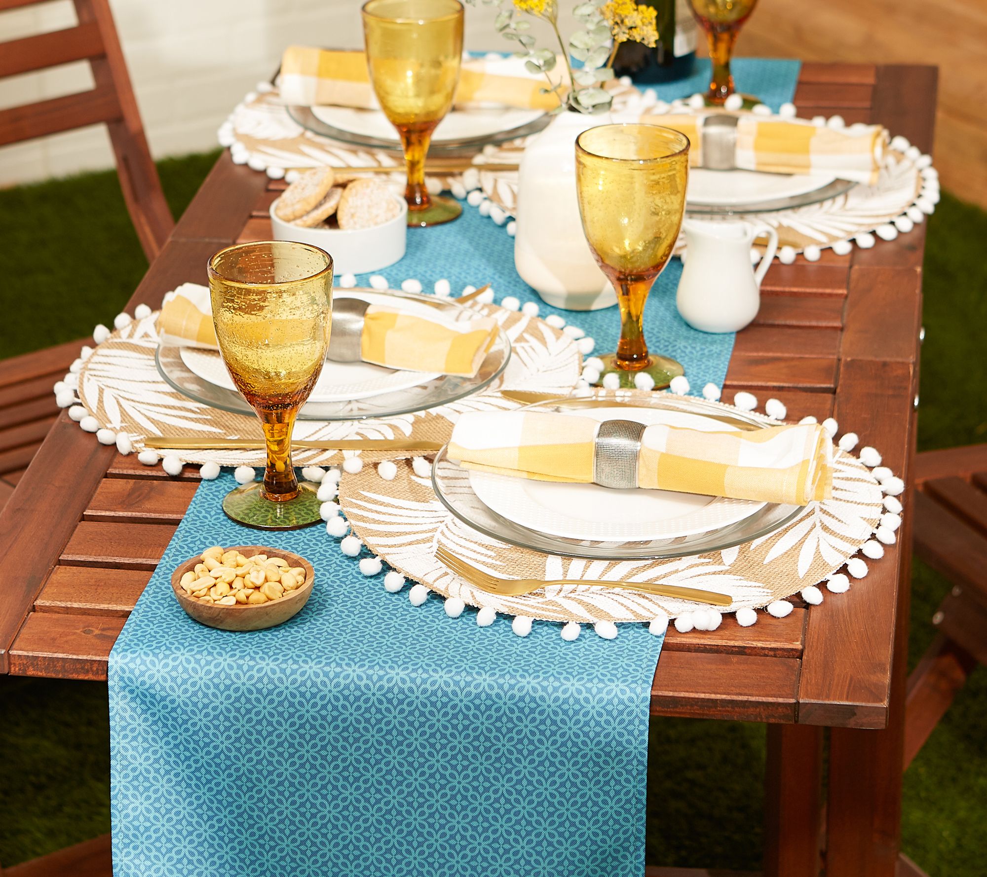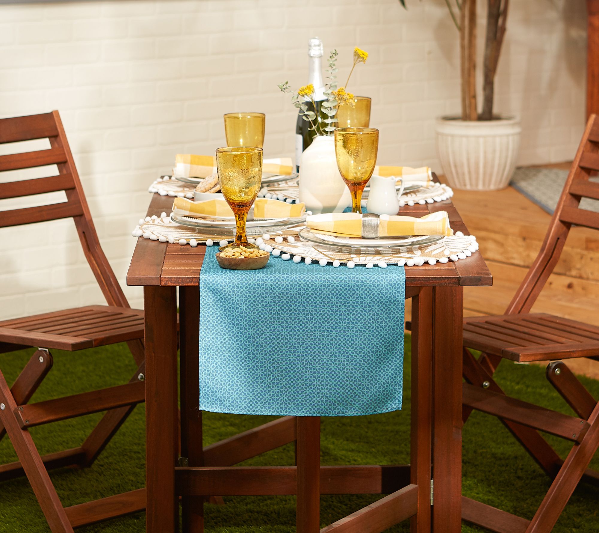 Add cool, breezy style to your outdoor table with this beautiful Blue Lattice runner, machine washable for easy cleanup. From Design Imports.