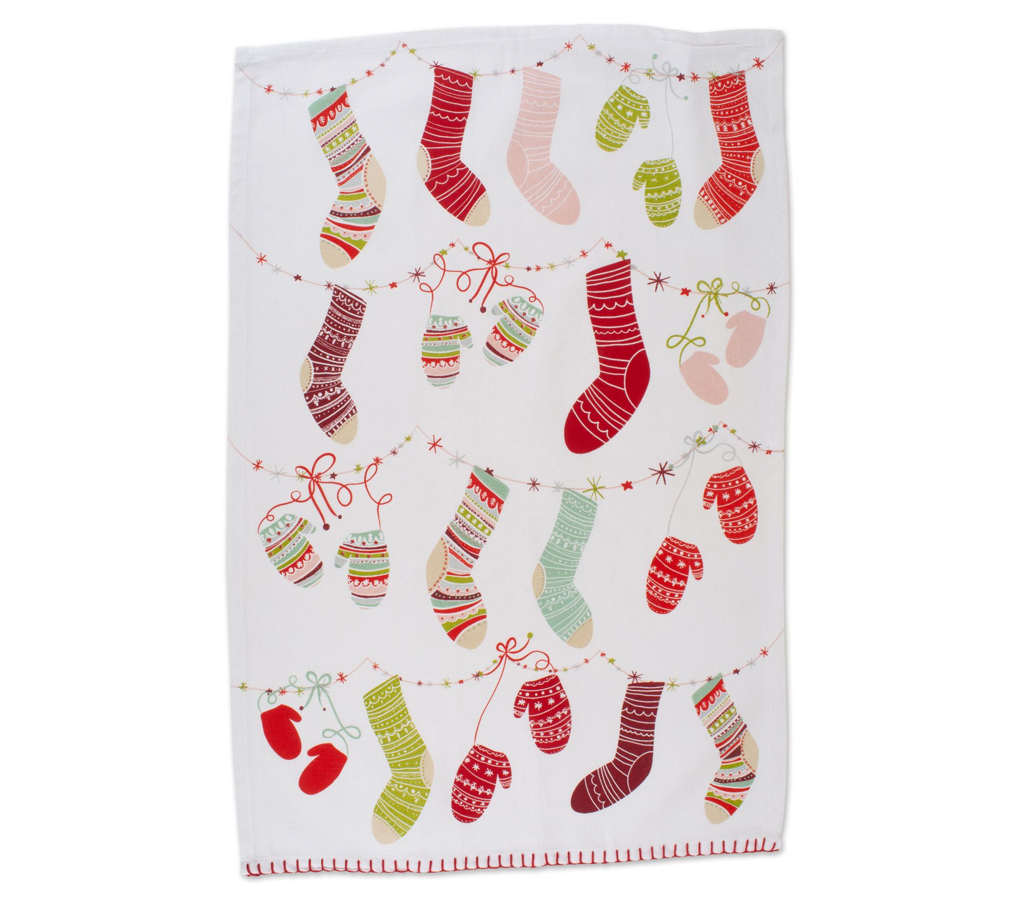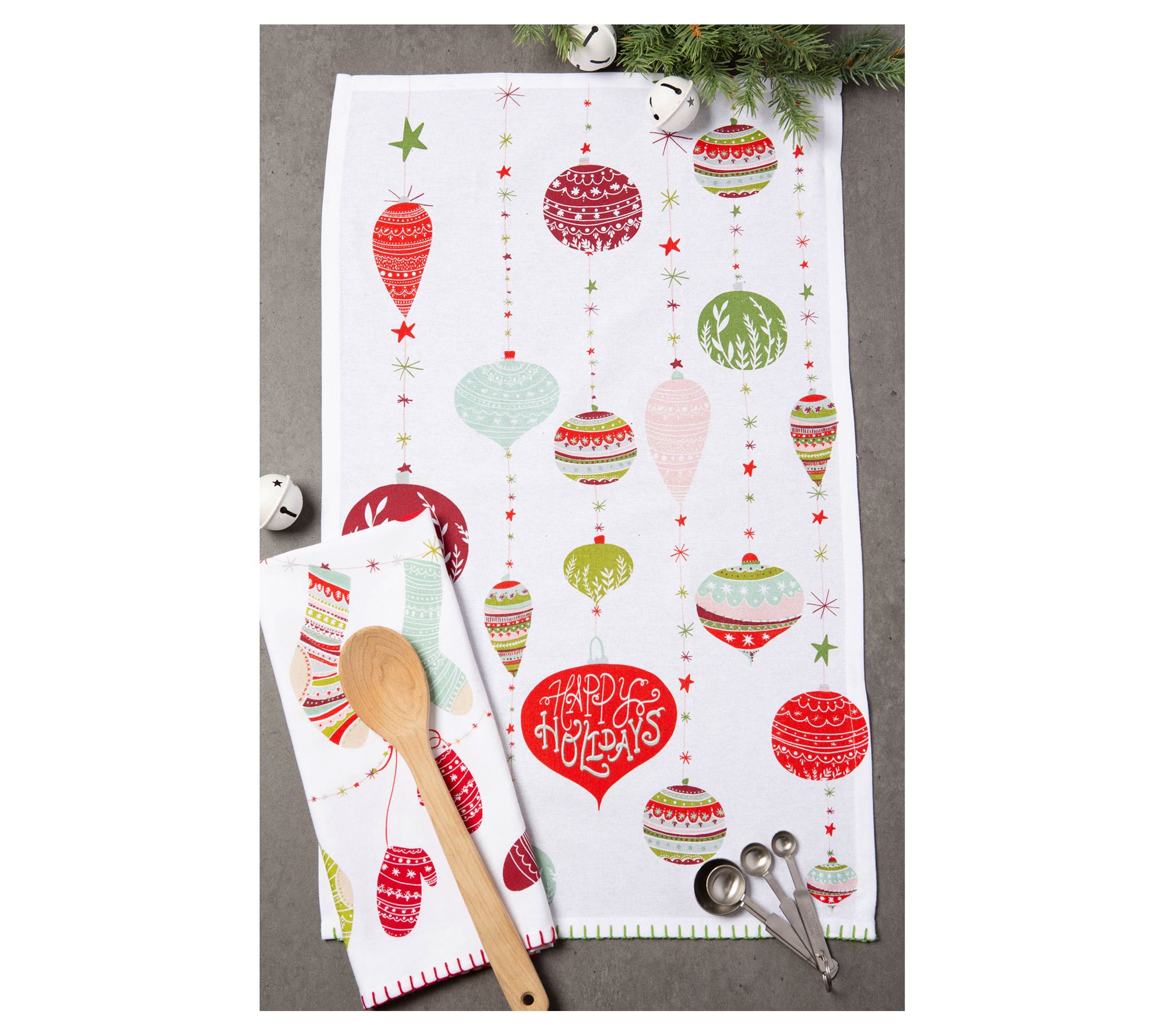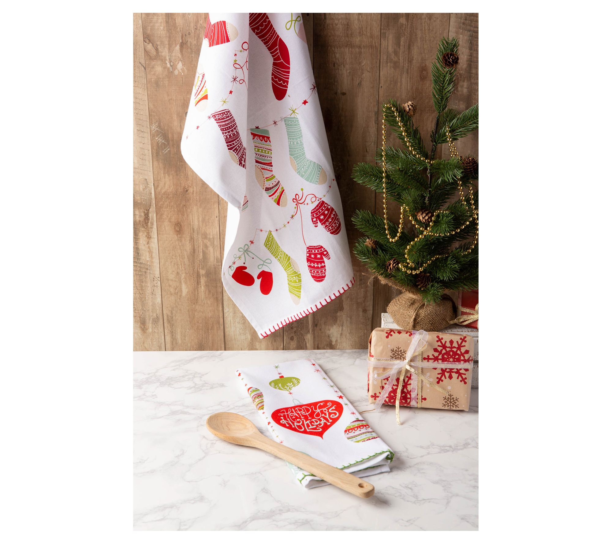 Get into the holiday spirit with the Design Imports Xmas Trimmings Printed Kitchen Towel Set. These festive towels are perfect for tackling all your kitchen tasks, from drying dishes to wiping up spills. Made from 100% cotton, they feature charming ornaments and stockings designs that will add a cheerful touch to your kitchen decor. From Design Imports.