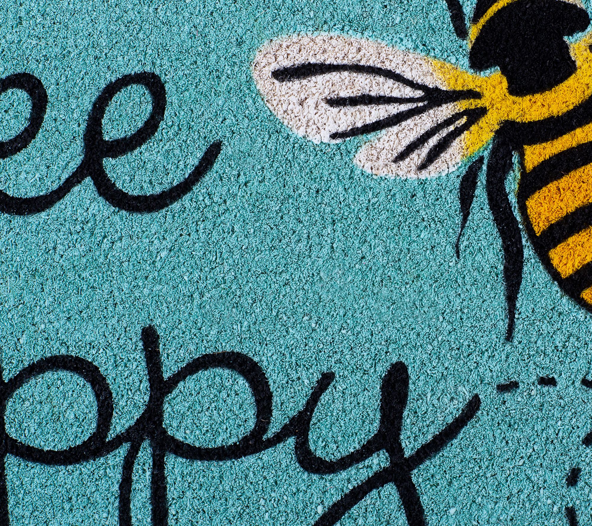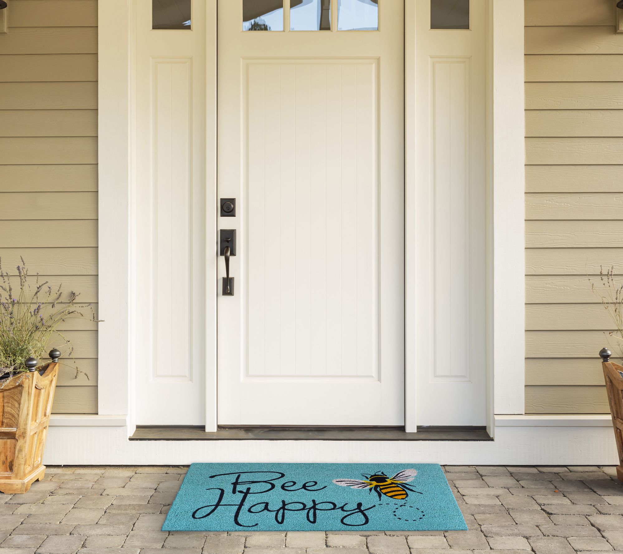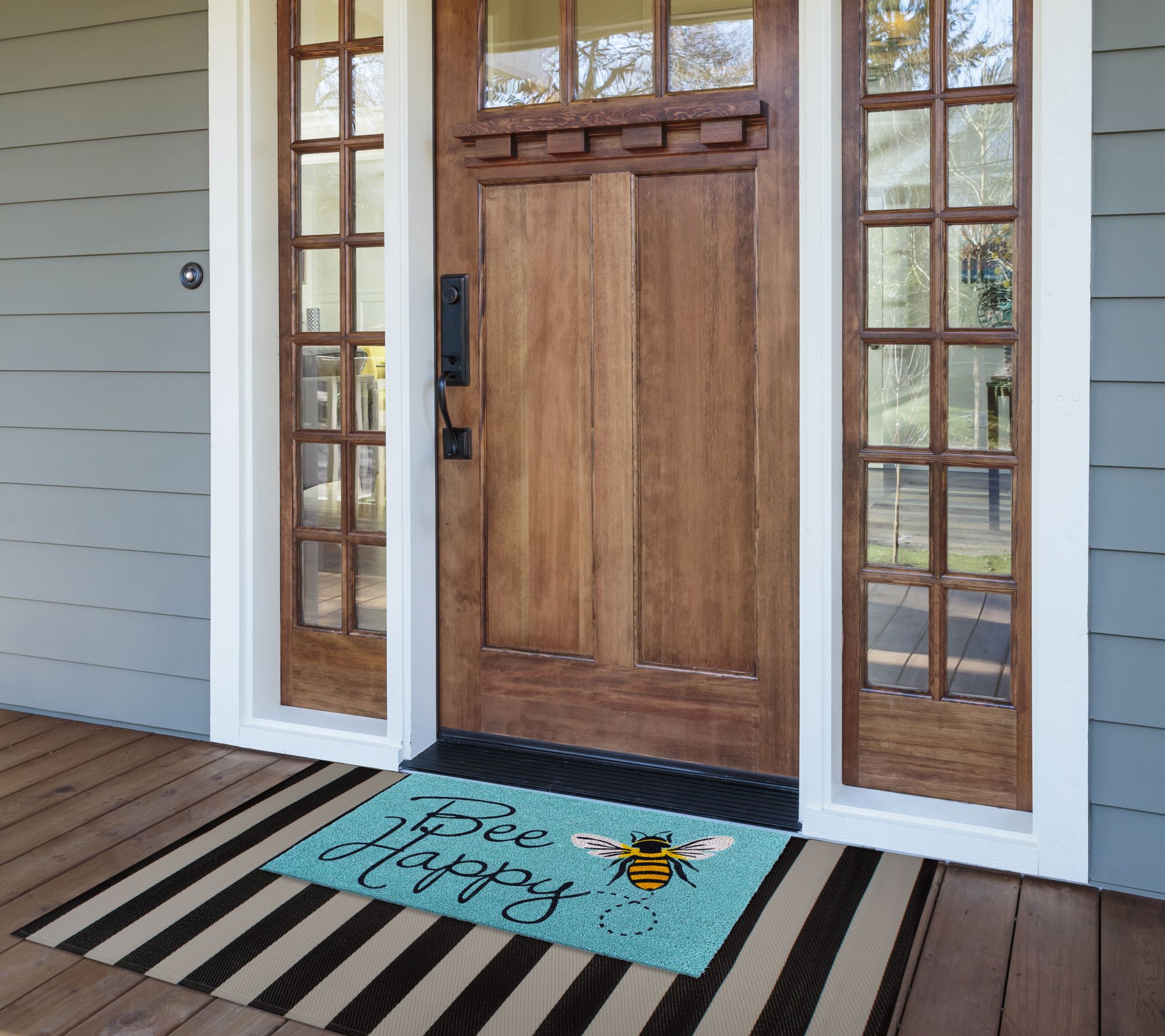 With a bright, cheerful message, this bee-utiful doormat welcomes your guests with style. Made from durable, strong coir fiber extracted from coconut husk, this friendly mat is perfect for your shady front door, garage, laundry room or mud porch to help remove dirt and debris from shoes. From Design Imports.