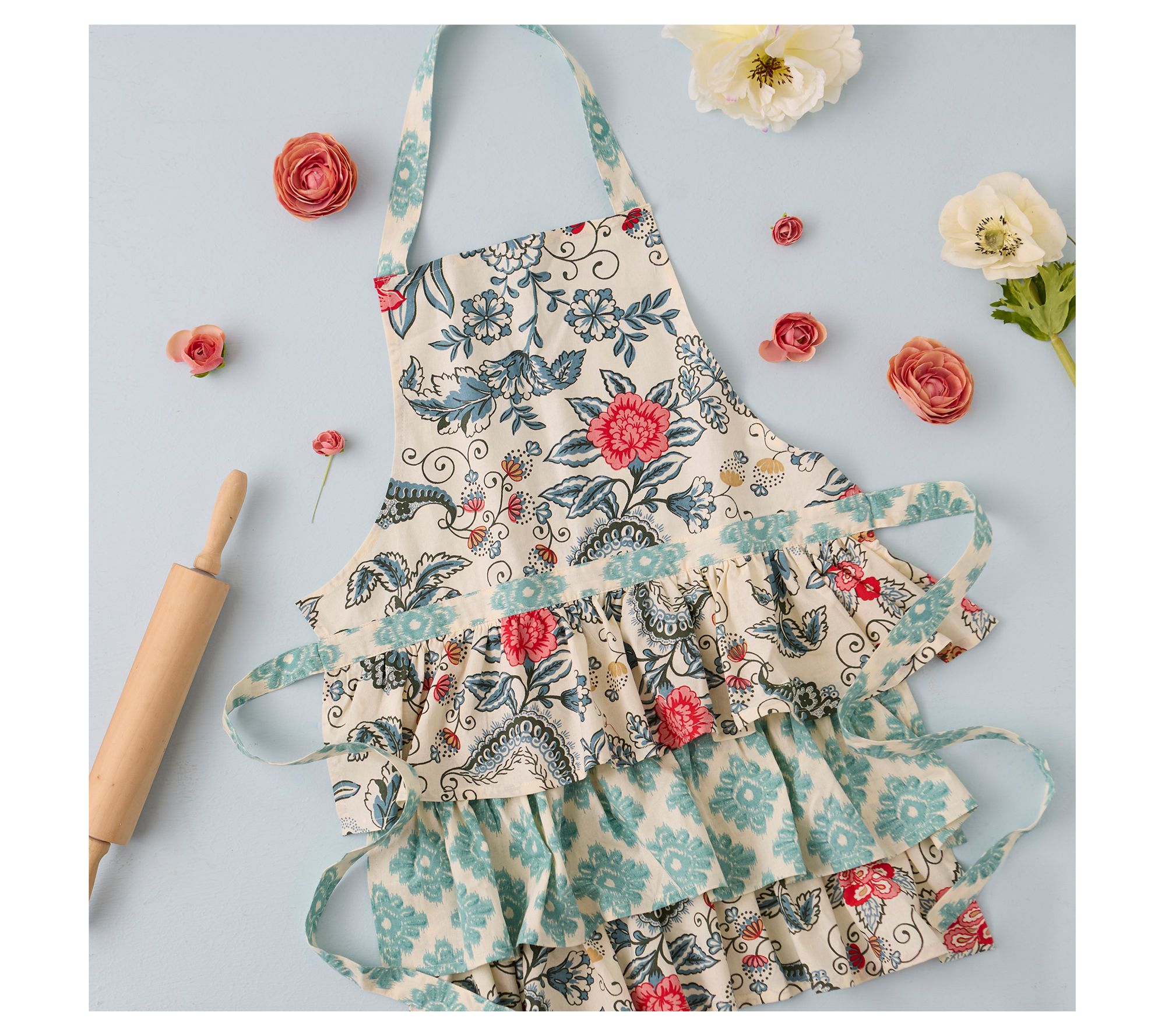 Whether you're whipping up brunch or working on your next creative project, this blue ikat flowers apron brings vintage-inspired flair to every task. Soft cotton construction offers comfort while keeping you looking stylish and protected in the kitchen or craft room. From Design Imports.
