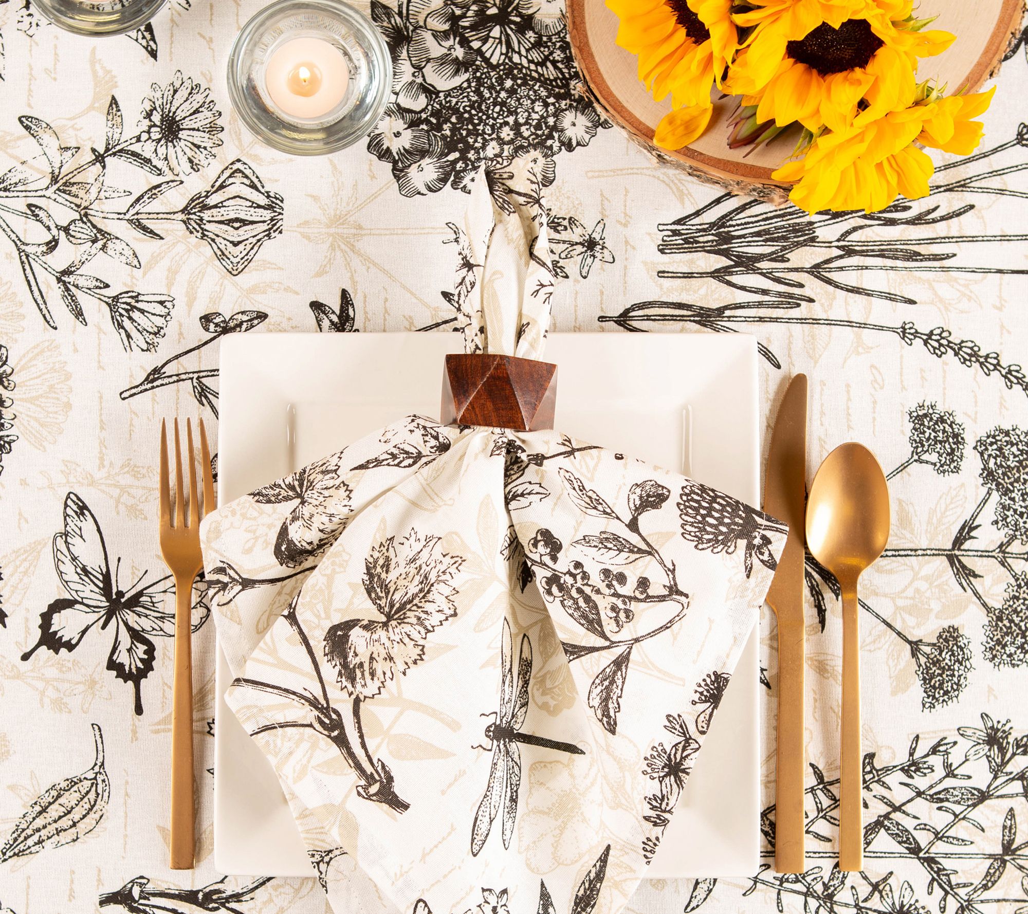 Beautiful at breakfast, lovely at lunch, and simply stunning at suppertime, this botanical print tablecloth decorates your dining room with meadow-like charm at any meal. From Design Imports.