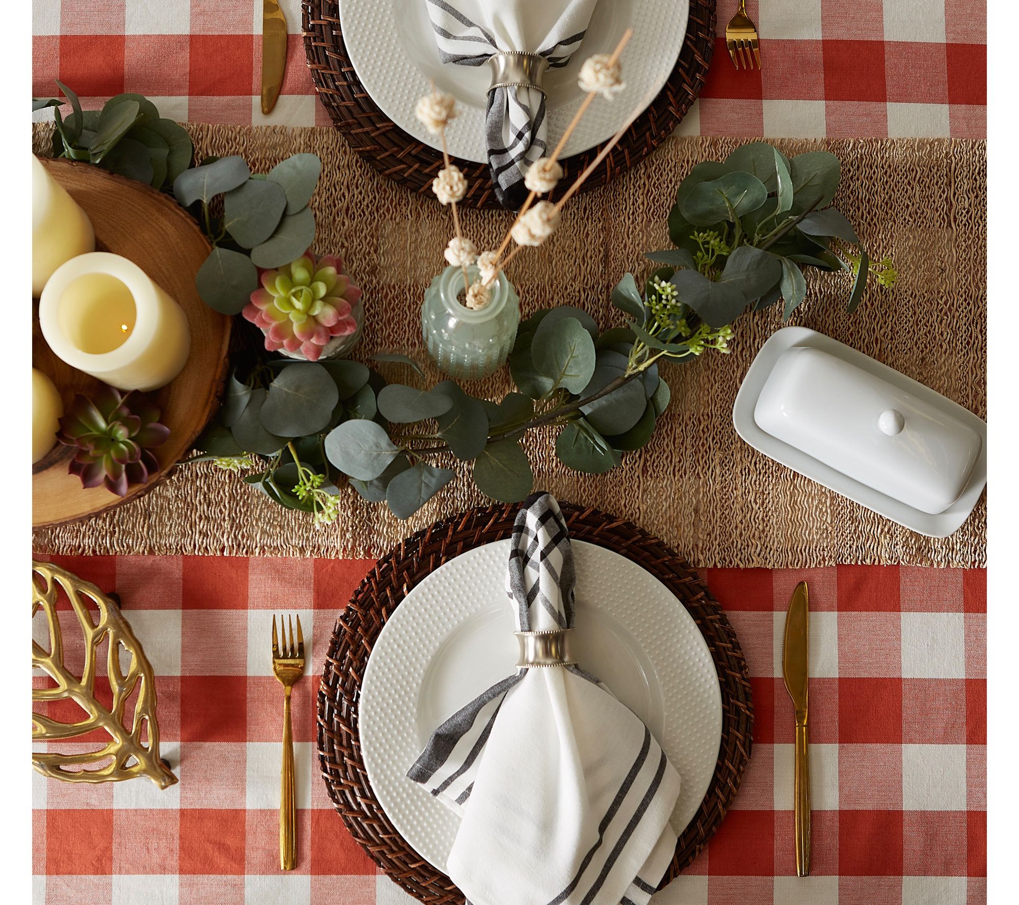 Add color and charm to your table with this timeless buffalo check tablecloth. It's perfect for everyday use and instantly brightens up your dining space. From Design Imports.