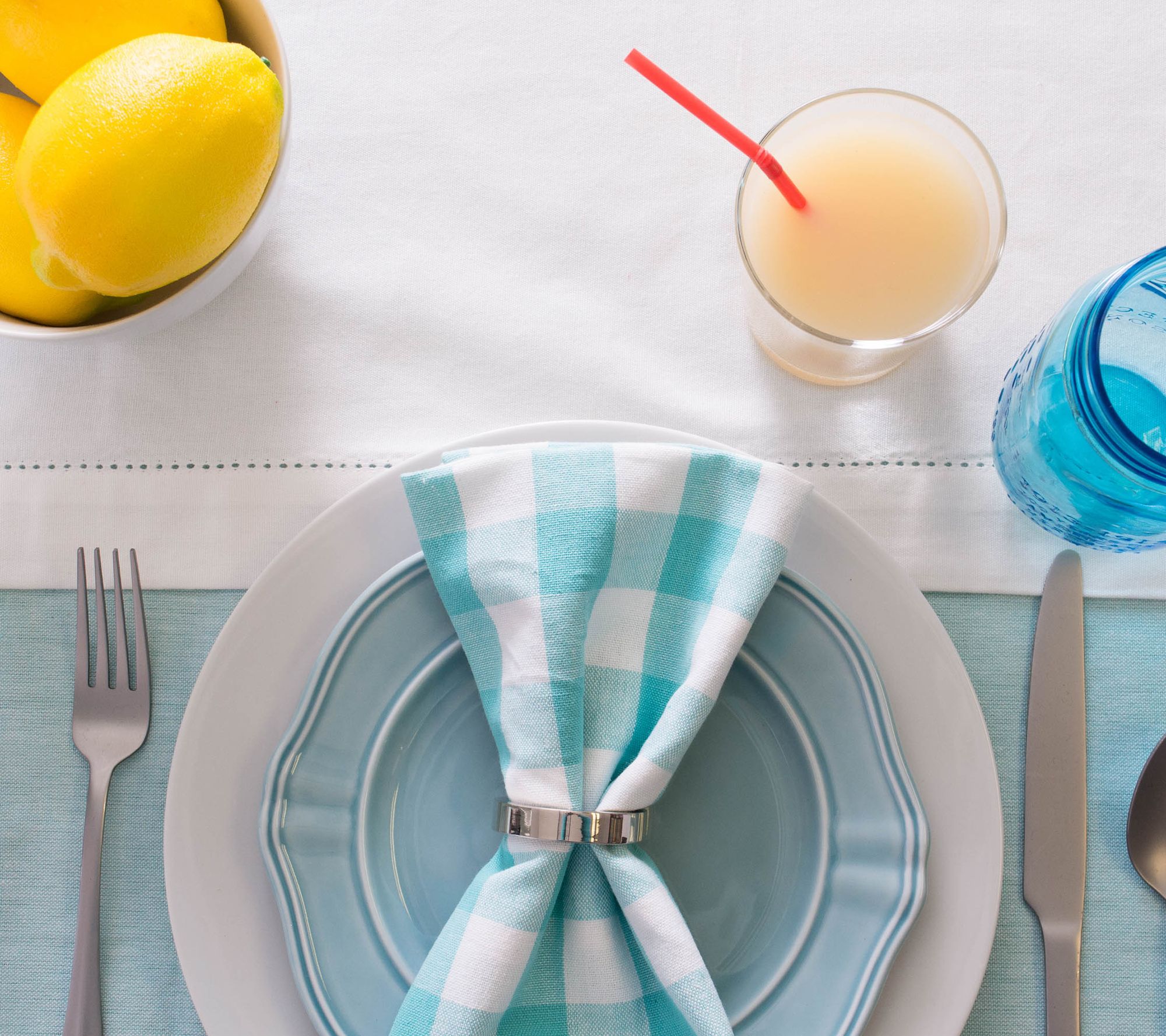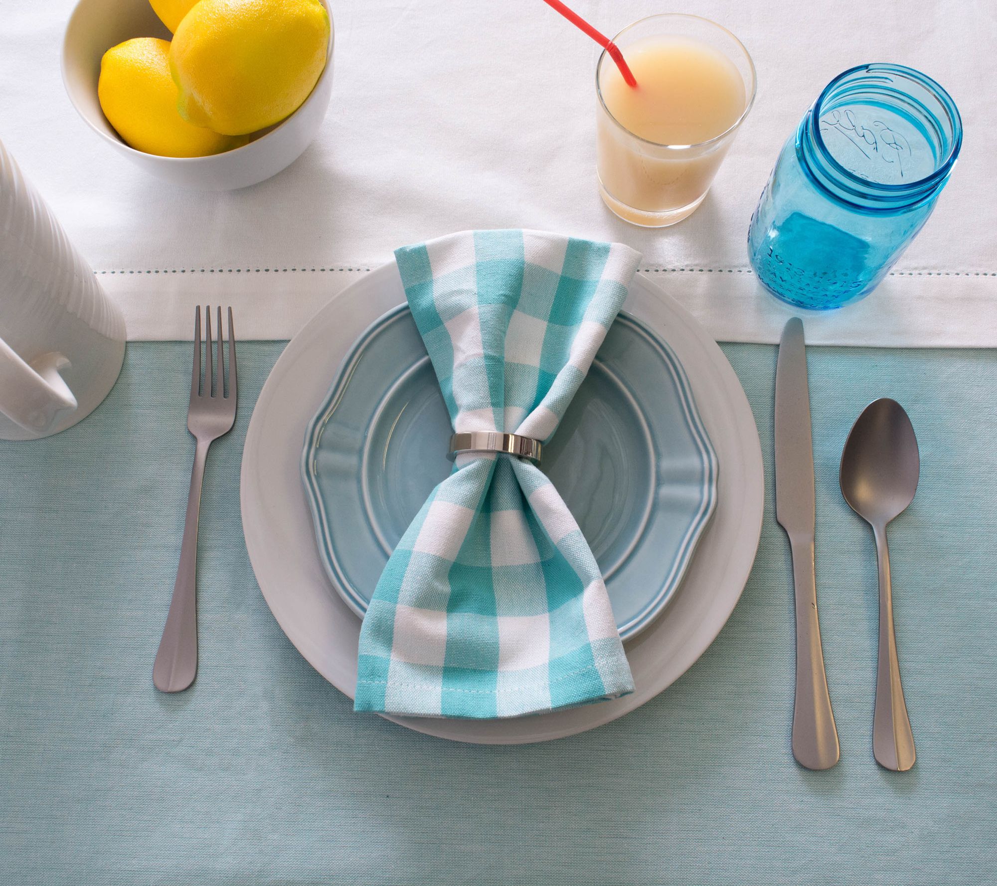 Cover over years of use (or that recent school-project scratch) with a snap of this crisp chambray tablecloth. Create a coordinated canvas in seconds for whatever you're plating. From Design Imports.
