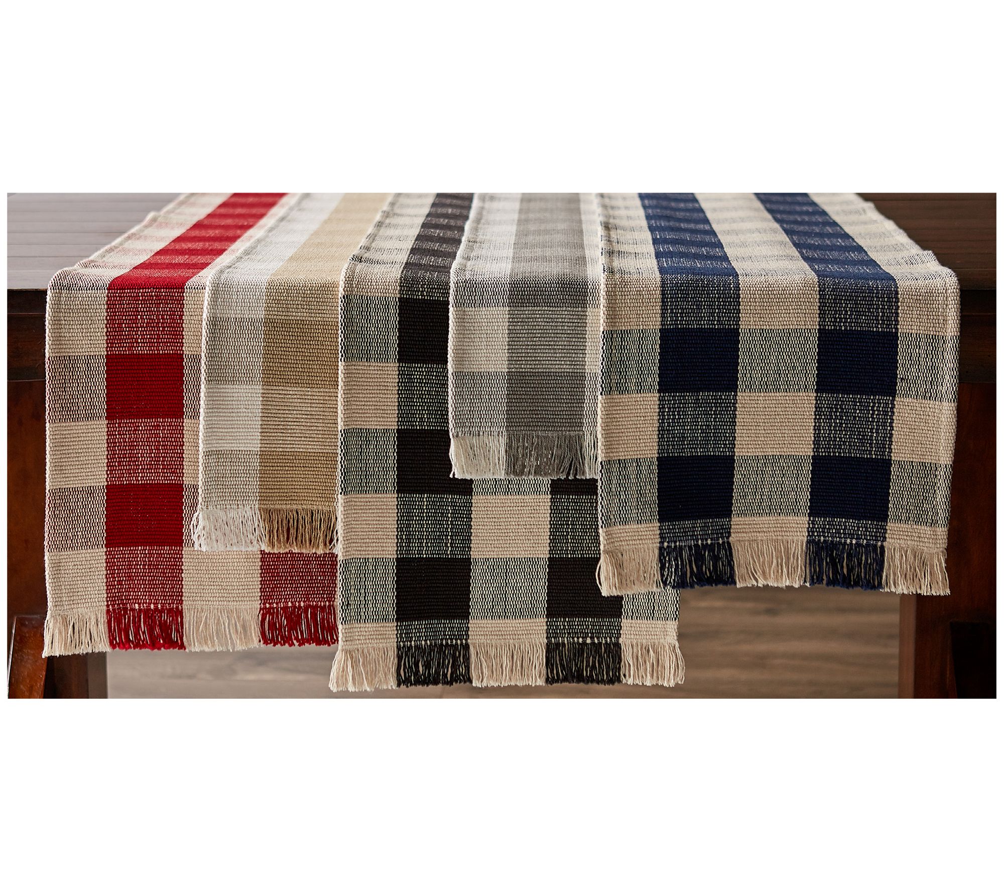 Design Imports Check Fringe Table Runner 13x108