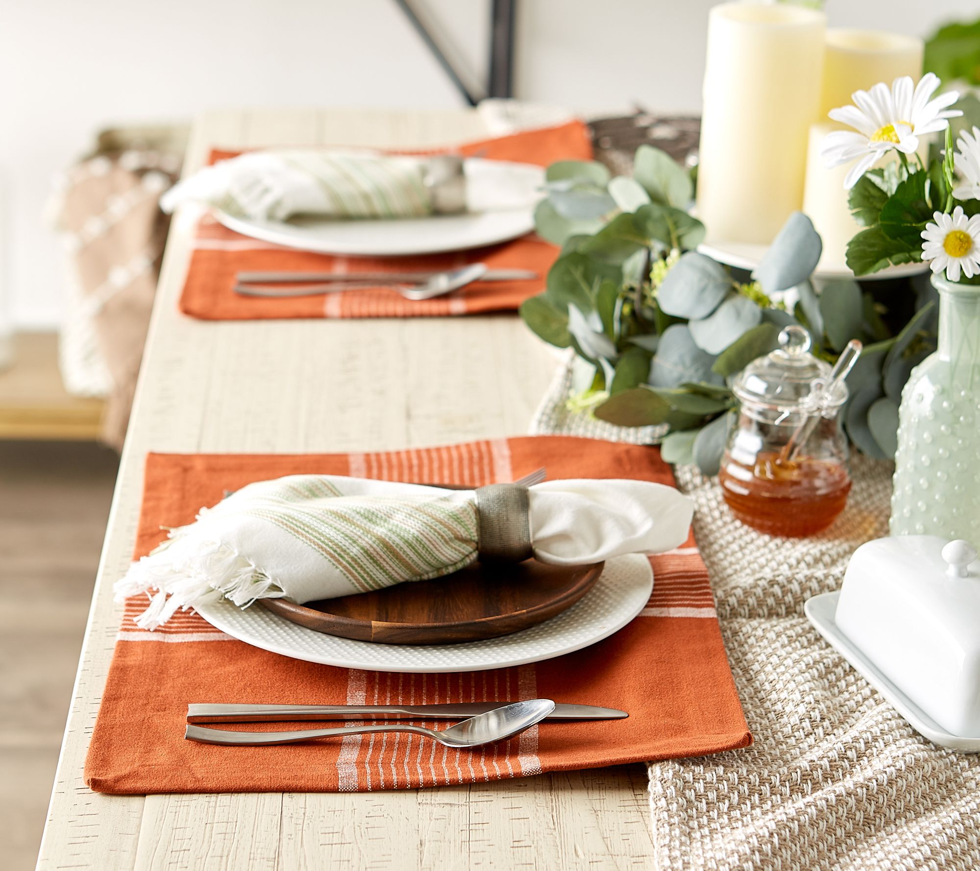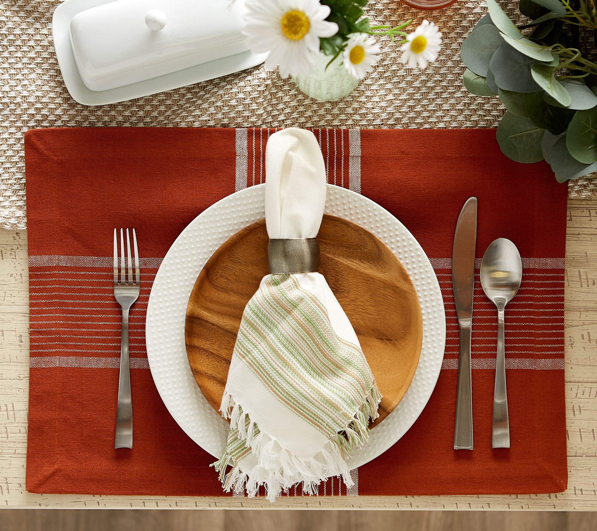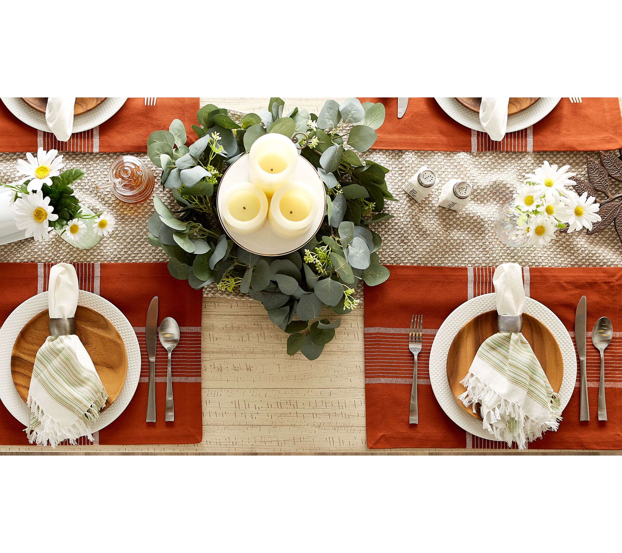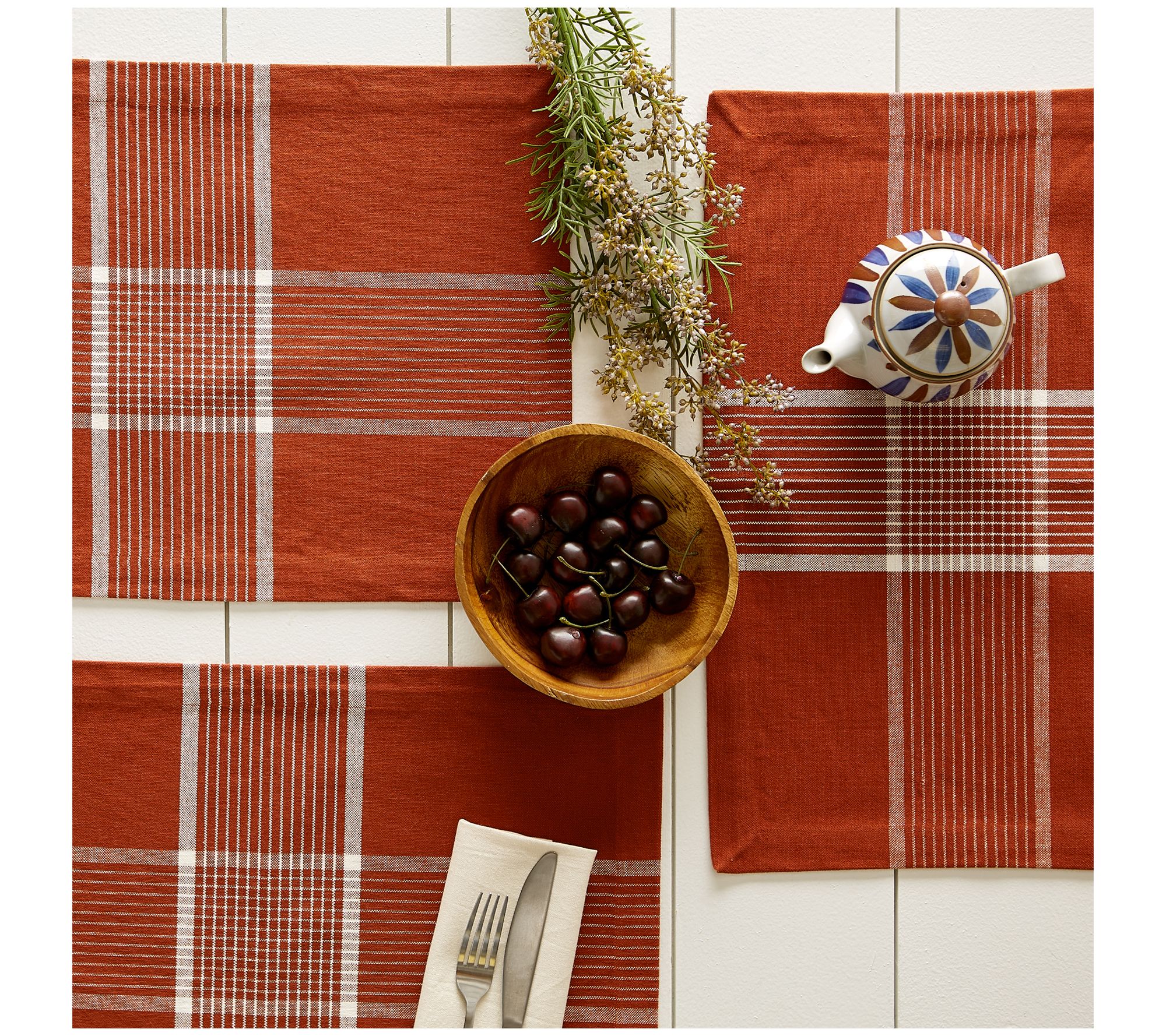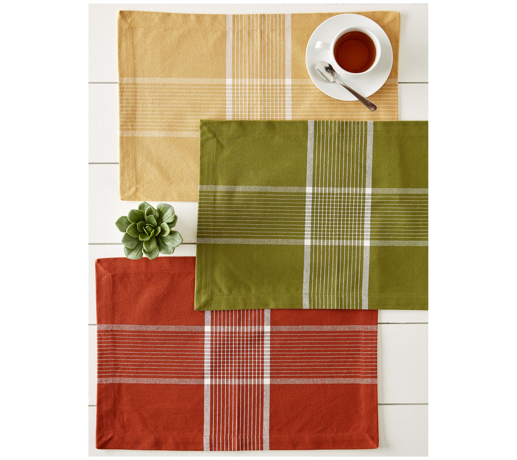 Whether you're serving up a weeknight dinner or hosting a holiday feast, these check-pattern placemats bring a touch of color and cozy appeal to your table. From Design Imports.