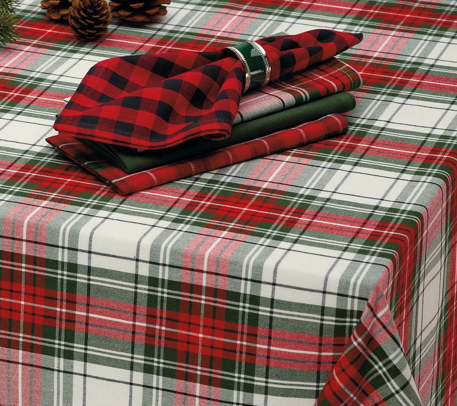 From Christmas in July to Christmas in December, this red and green plaid table cloth evokes that joyful holiday sentiment as soon as it hits your dining table. From Design Imports.