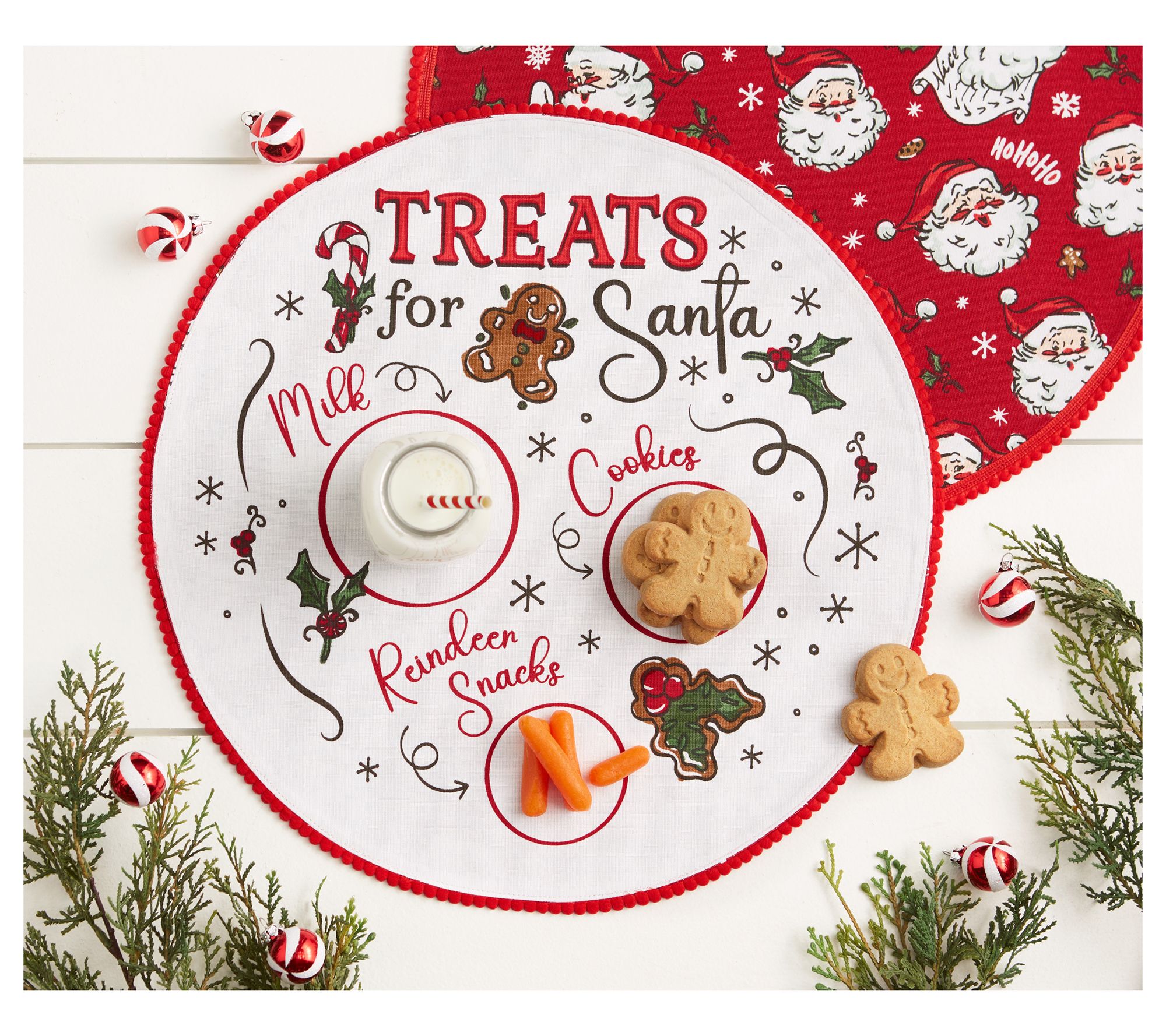 Setting out cookies and milk on Christmas Eve feels extra festive with this cheerful placemat, adorned with playful mini red pompoms. One side boasts a whimsical flat-woven print, while the reverse lets you easily switch up the look for every holiday moment. Crafted from cotton, this piece adds a joyful touch to your holiday traditions. From Design Imports.