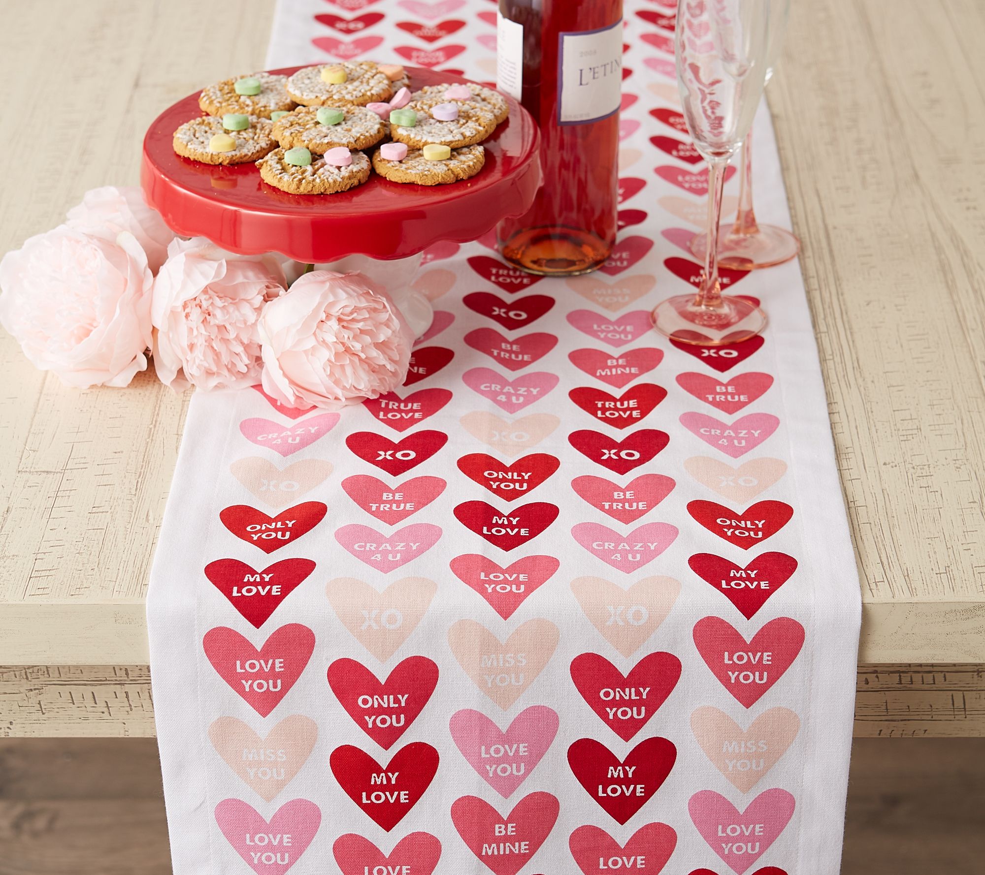 Design Imports Coversation Hearts Table Runner 14" x 72"