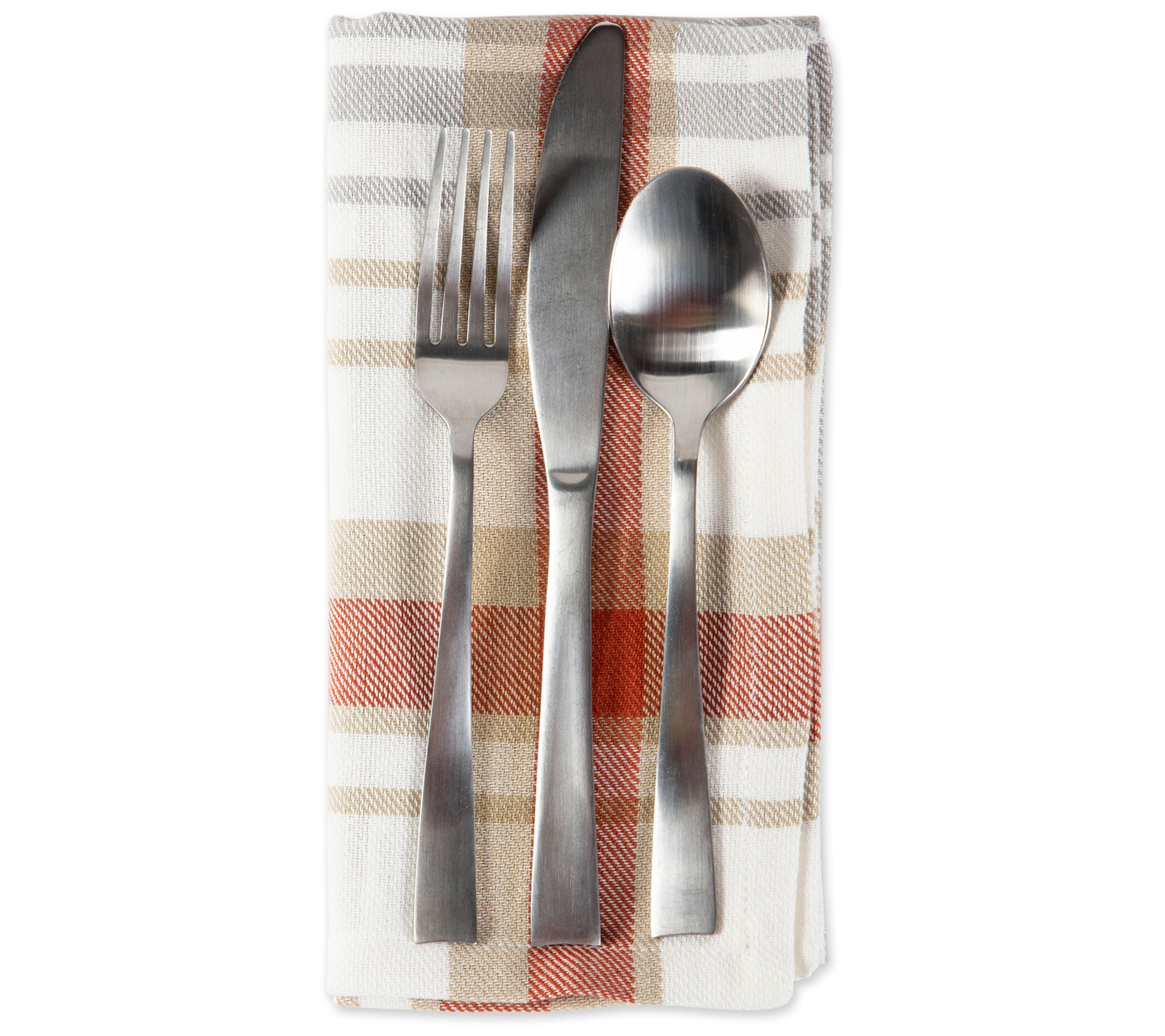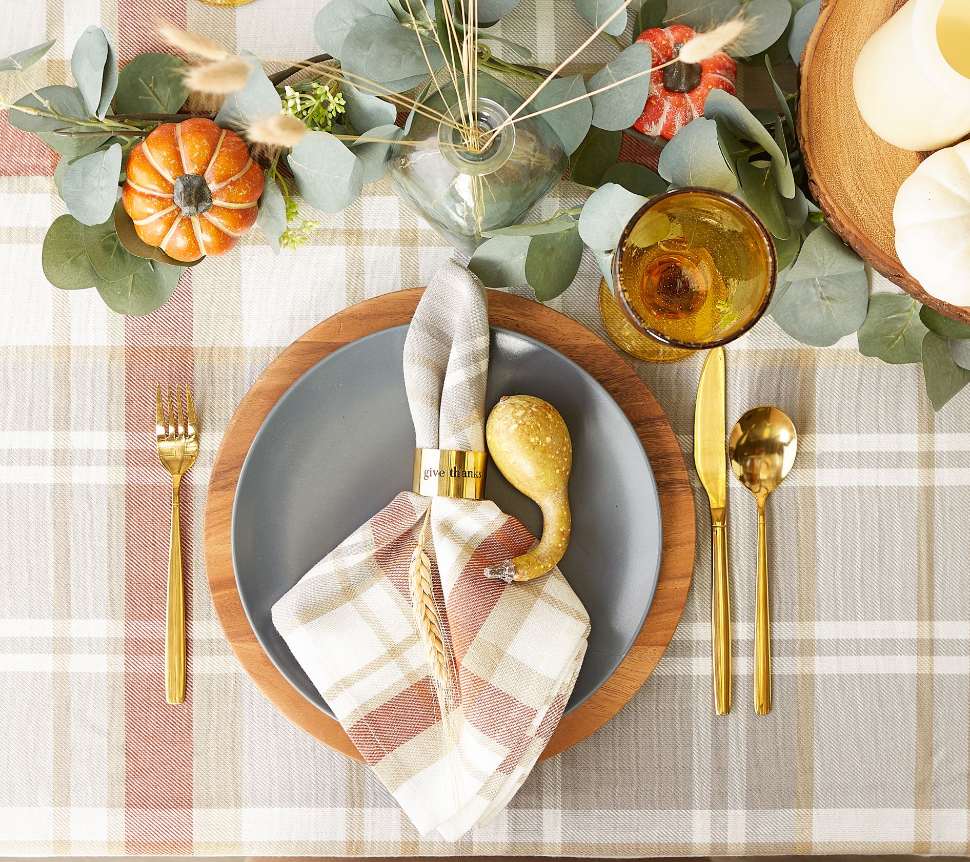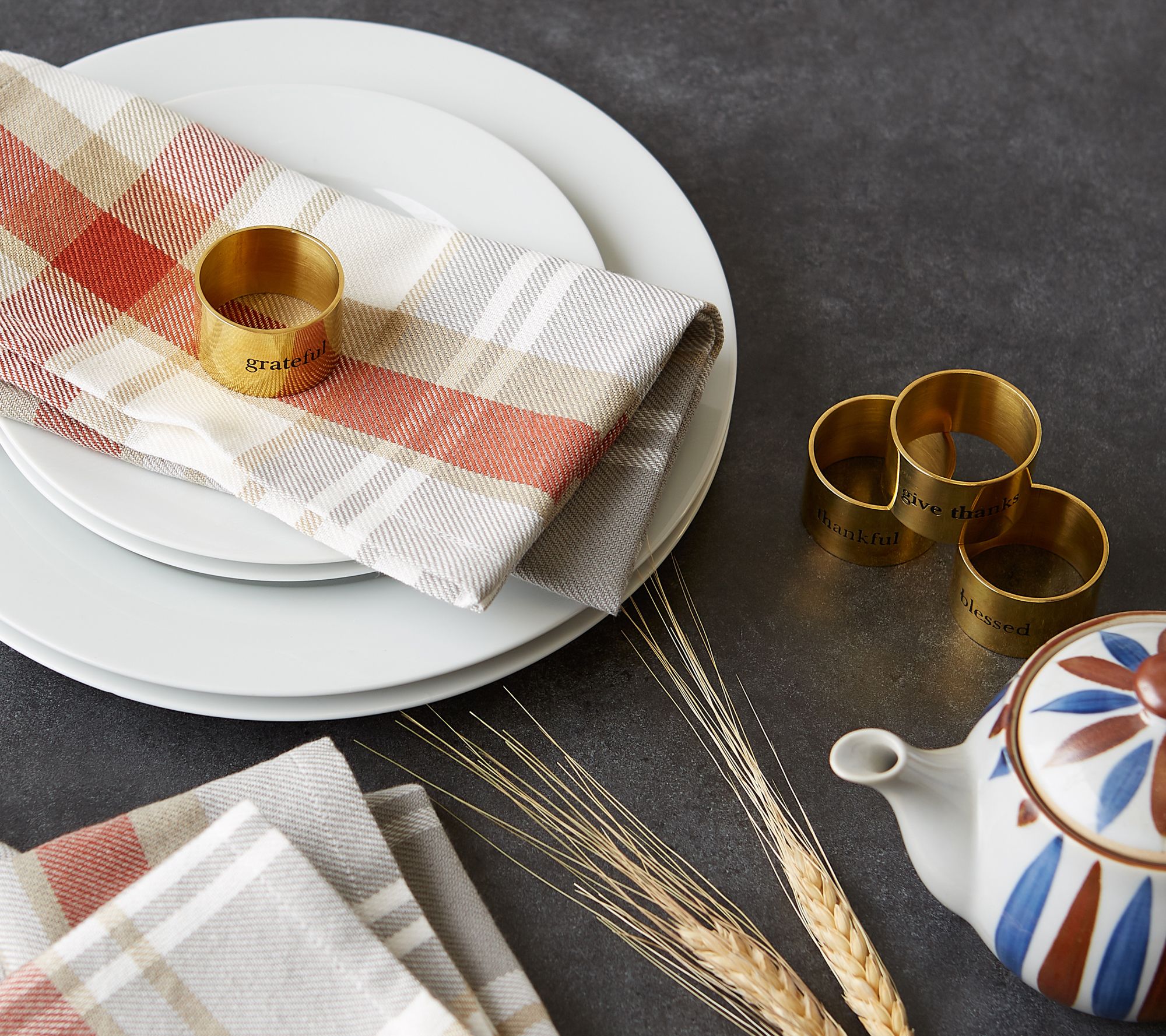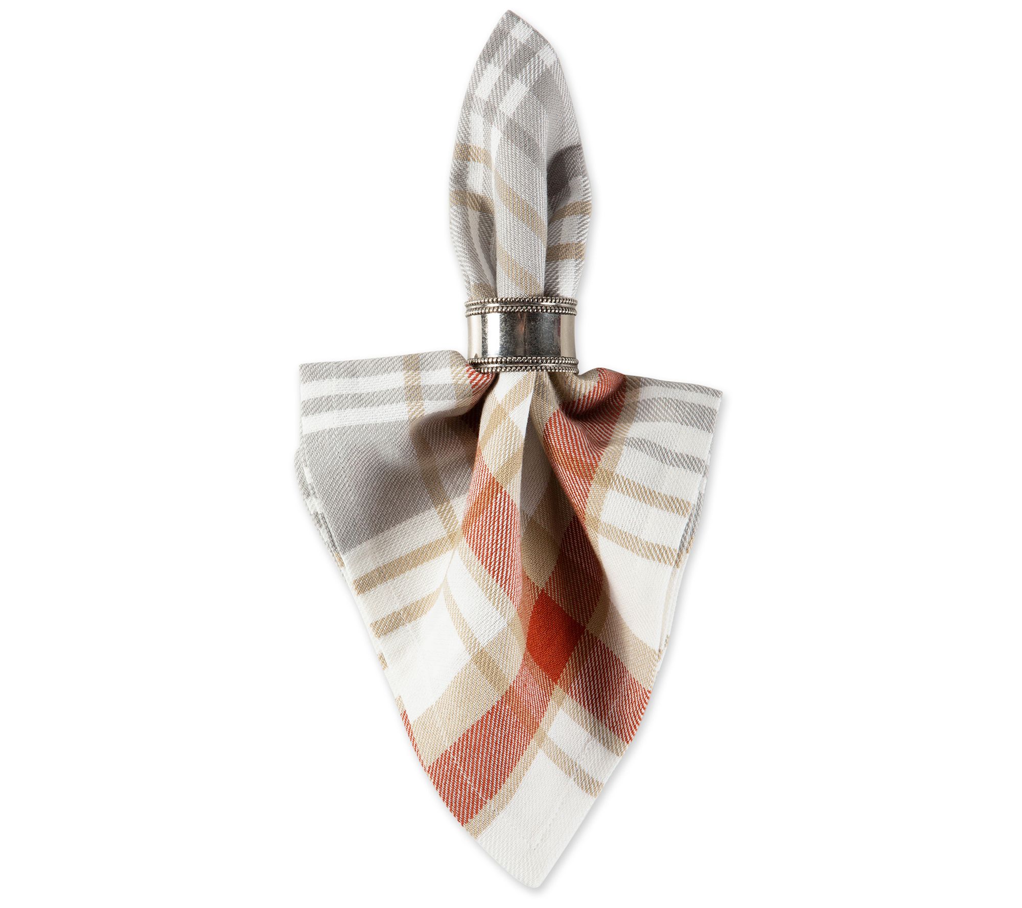 Combining a picnic plaid print with soft harvest hues, these cotton napkins are the perfect finishing touch for your fall table. From Design Imports.