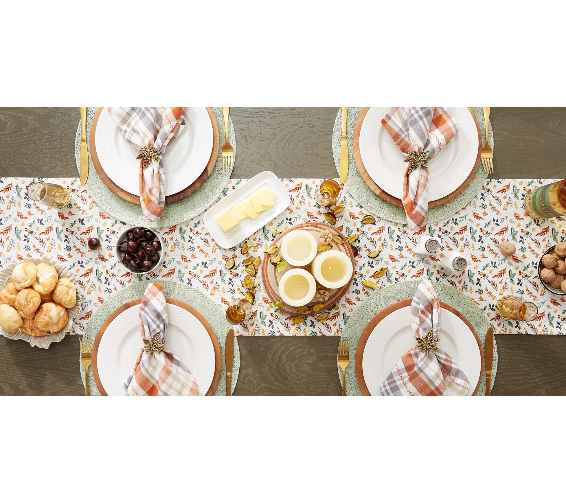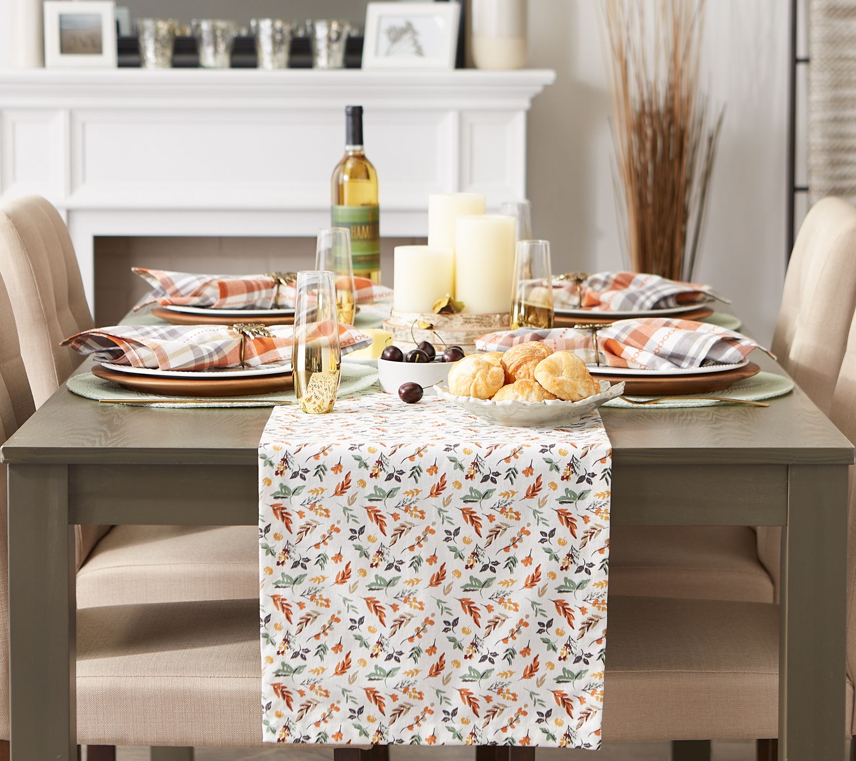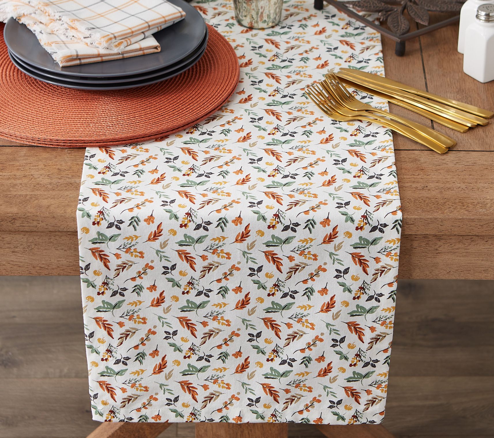 Bring home the warm colors of autumn with this delightful table runner that will add flair to your space all season long. From Design Imports.