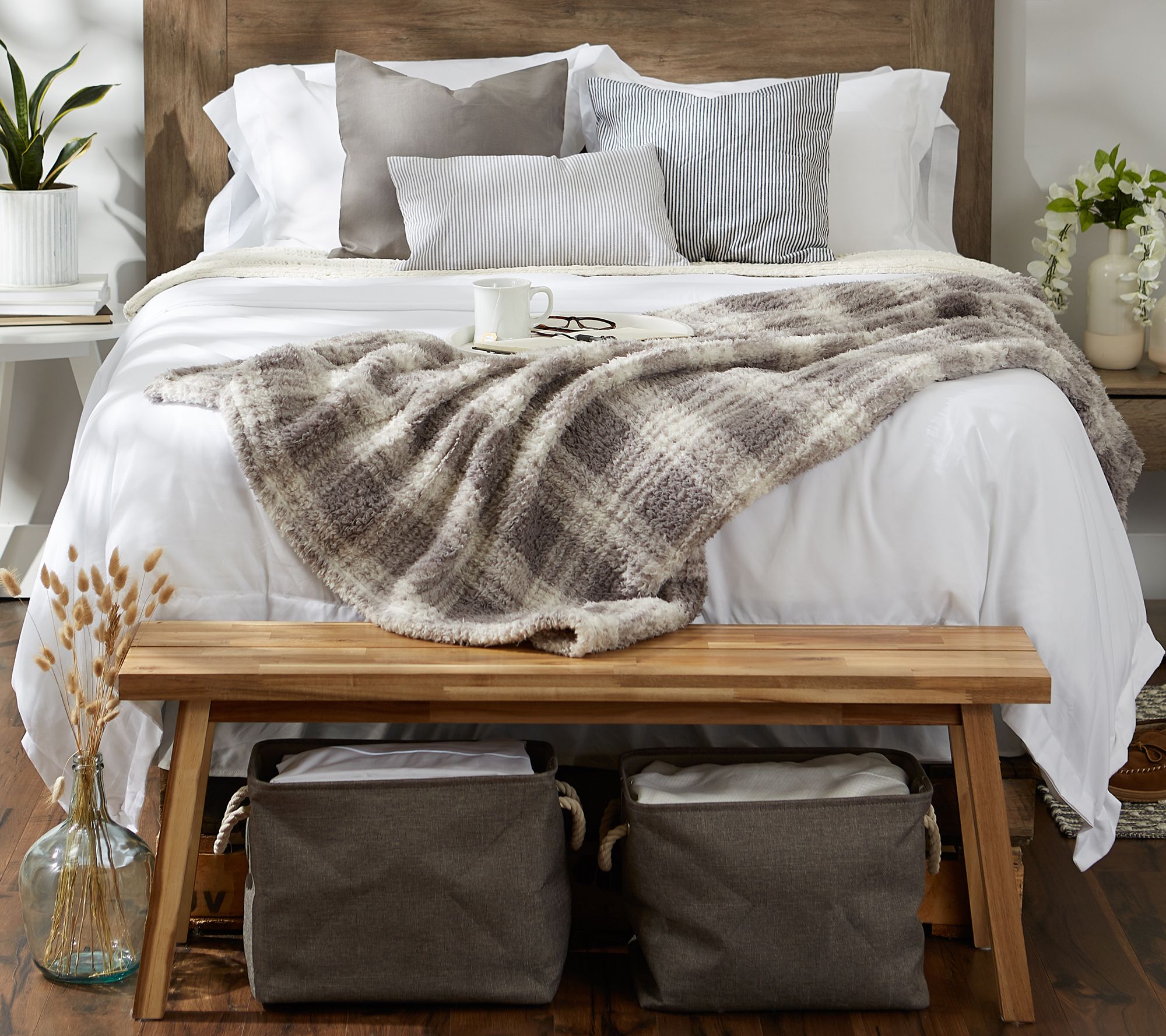 Design Imports Farmhouse Plush Plaid Throw