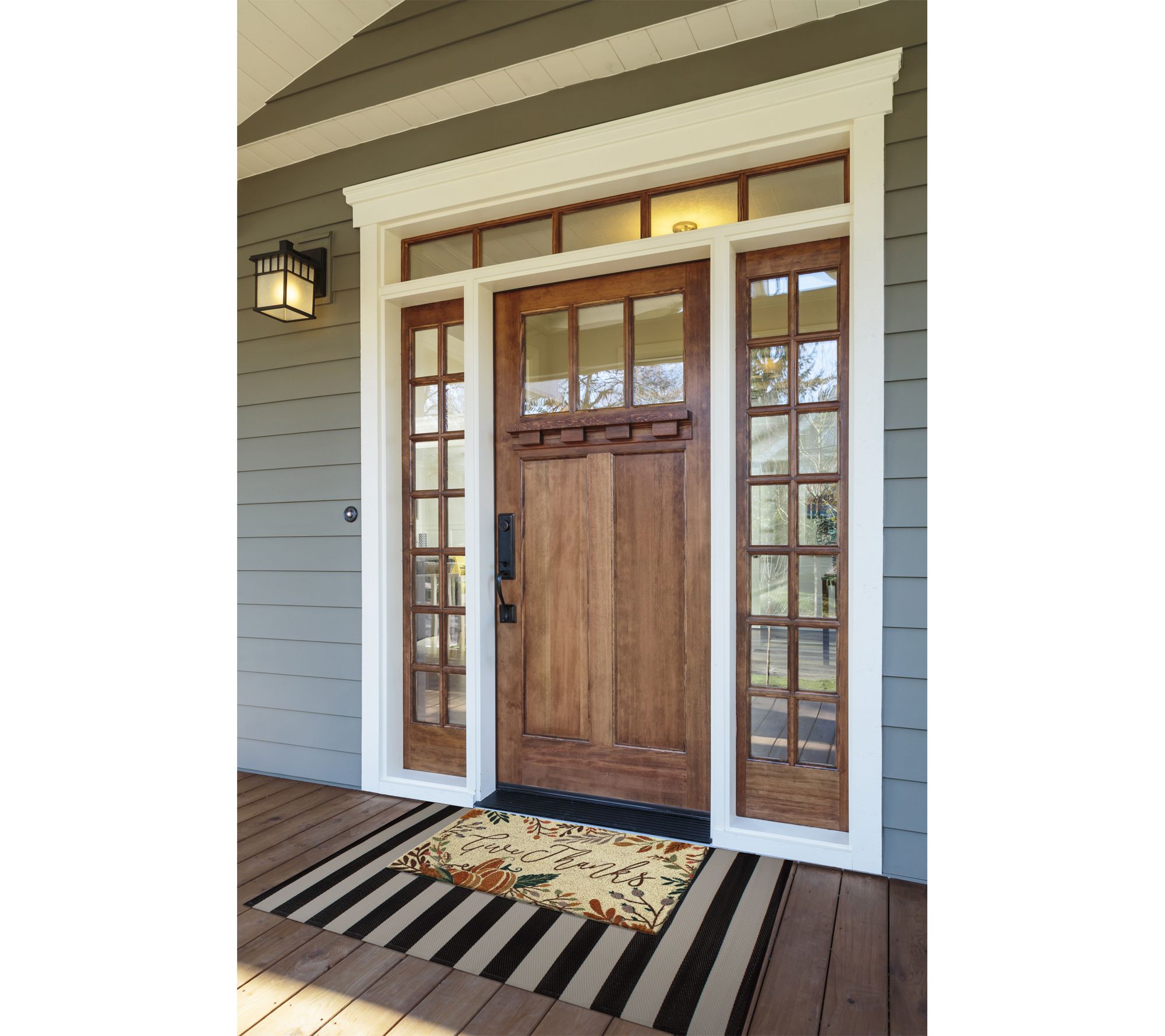 Welcome autumn visitors with the Give Thanks doormat, designed to offer a warm greeting while keeping entryways tidy. Crafted from sturdy coconut fibers with a secure backing, its sturdy bristles scrape dirt off shoes as family and friends step inside. Place this mat at your door for a touch of seasonal charm and everyday practicality. From Design Imports.