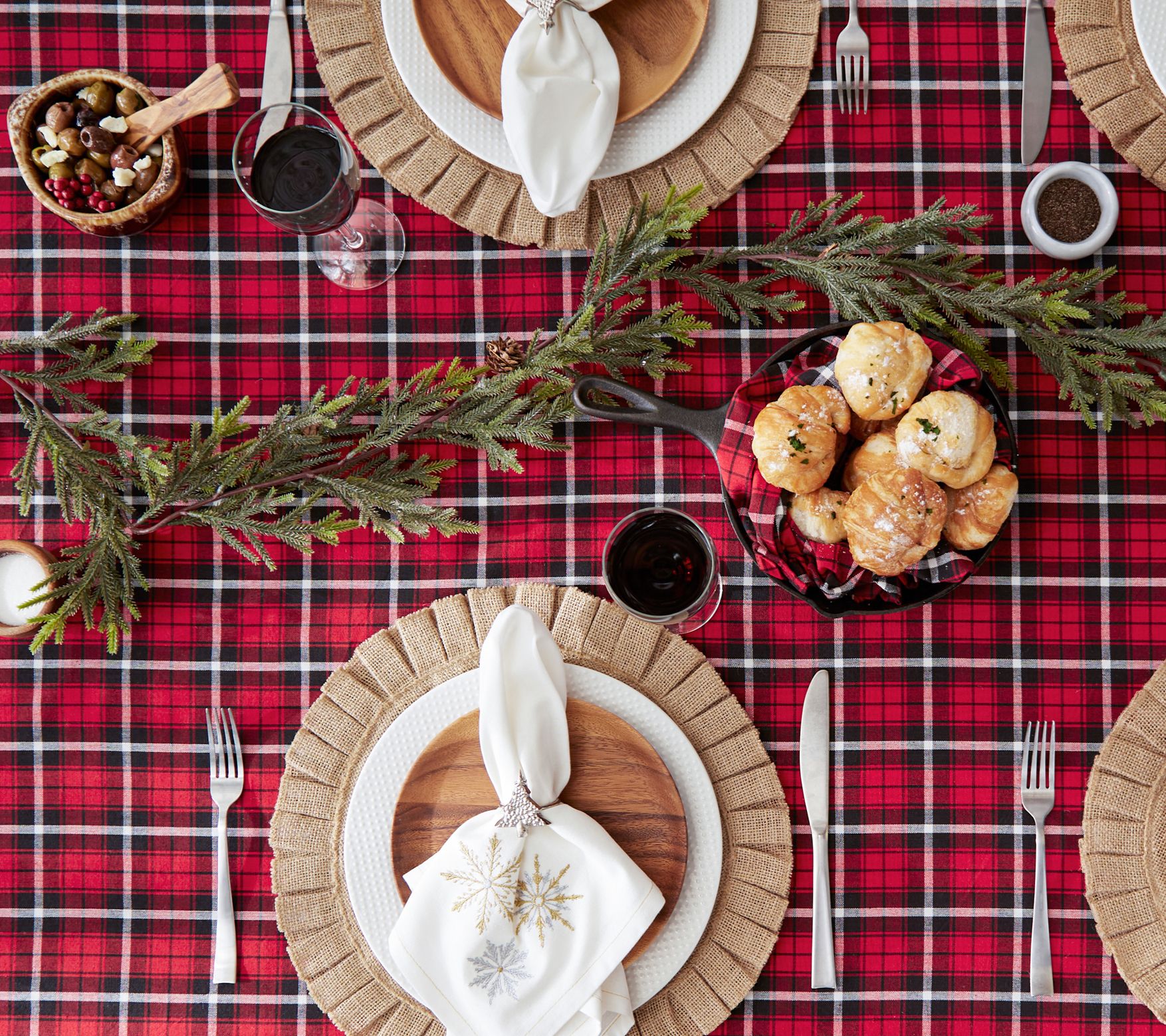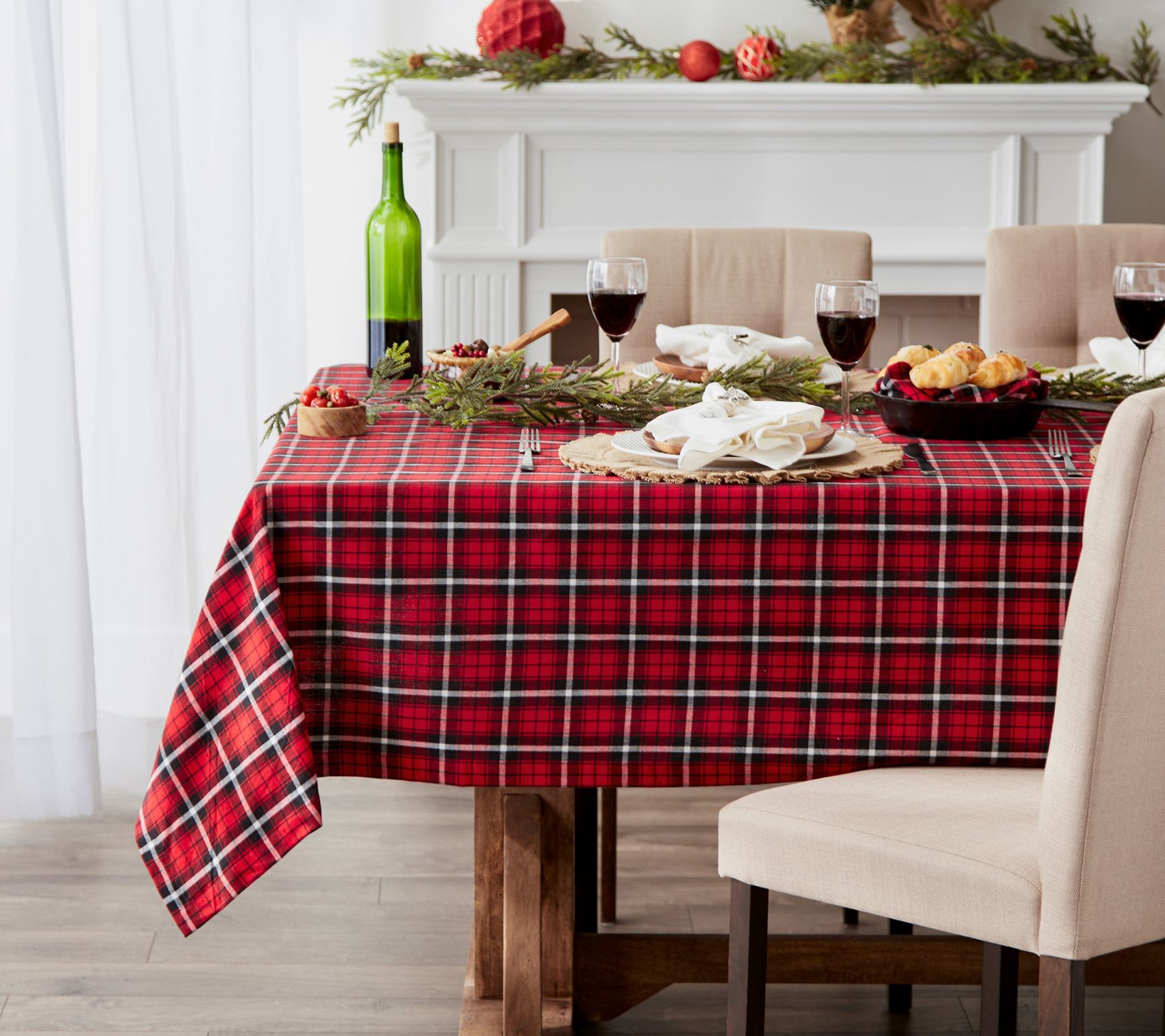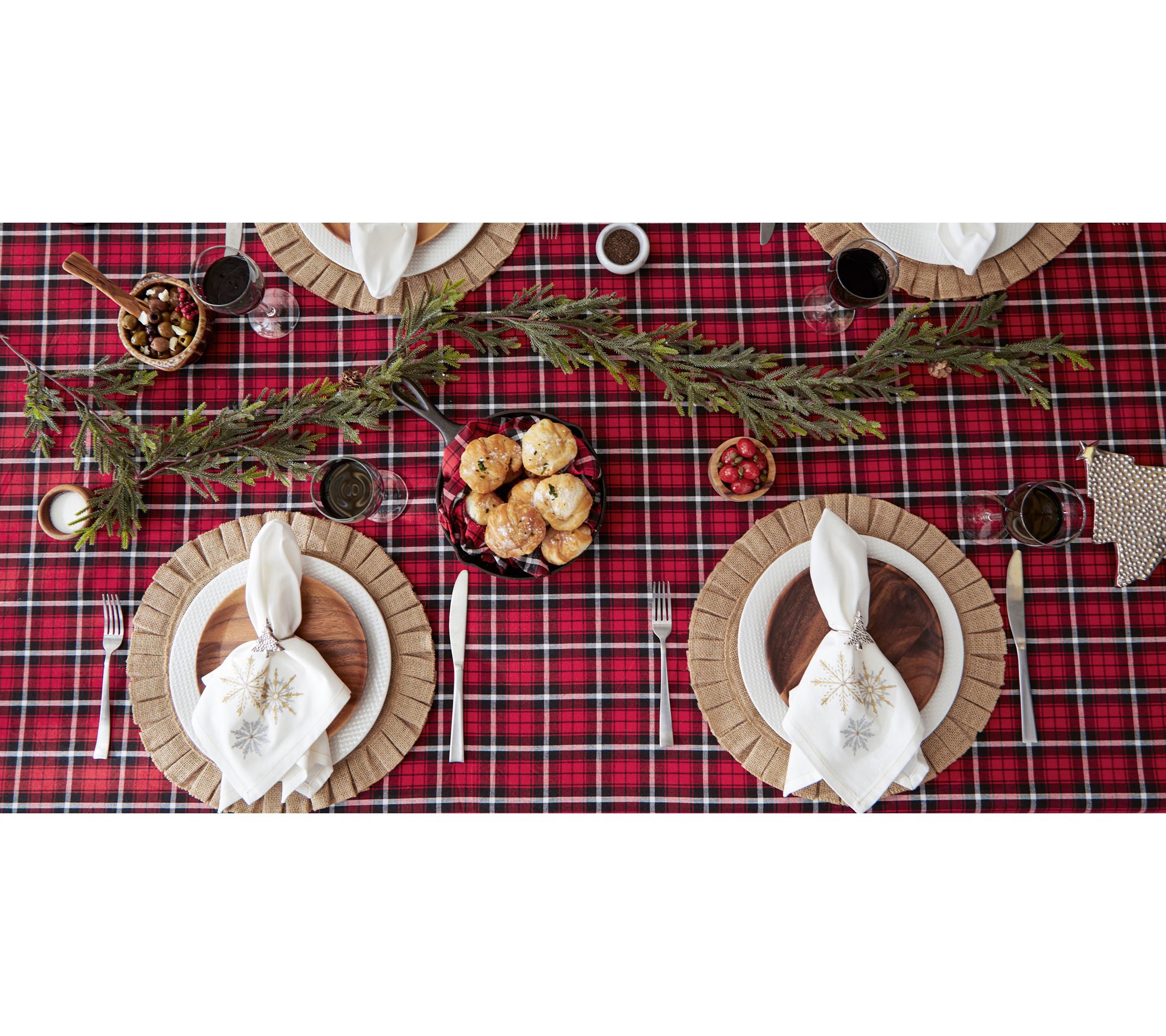 Serving up the perfect backdrop for family gatherings, parties, and holiday events, this Glad Tidings plaid tablecloth is giving us all the joyous winter/Christmas vibes -- and we are here for it. From Design Imports