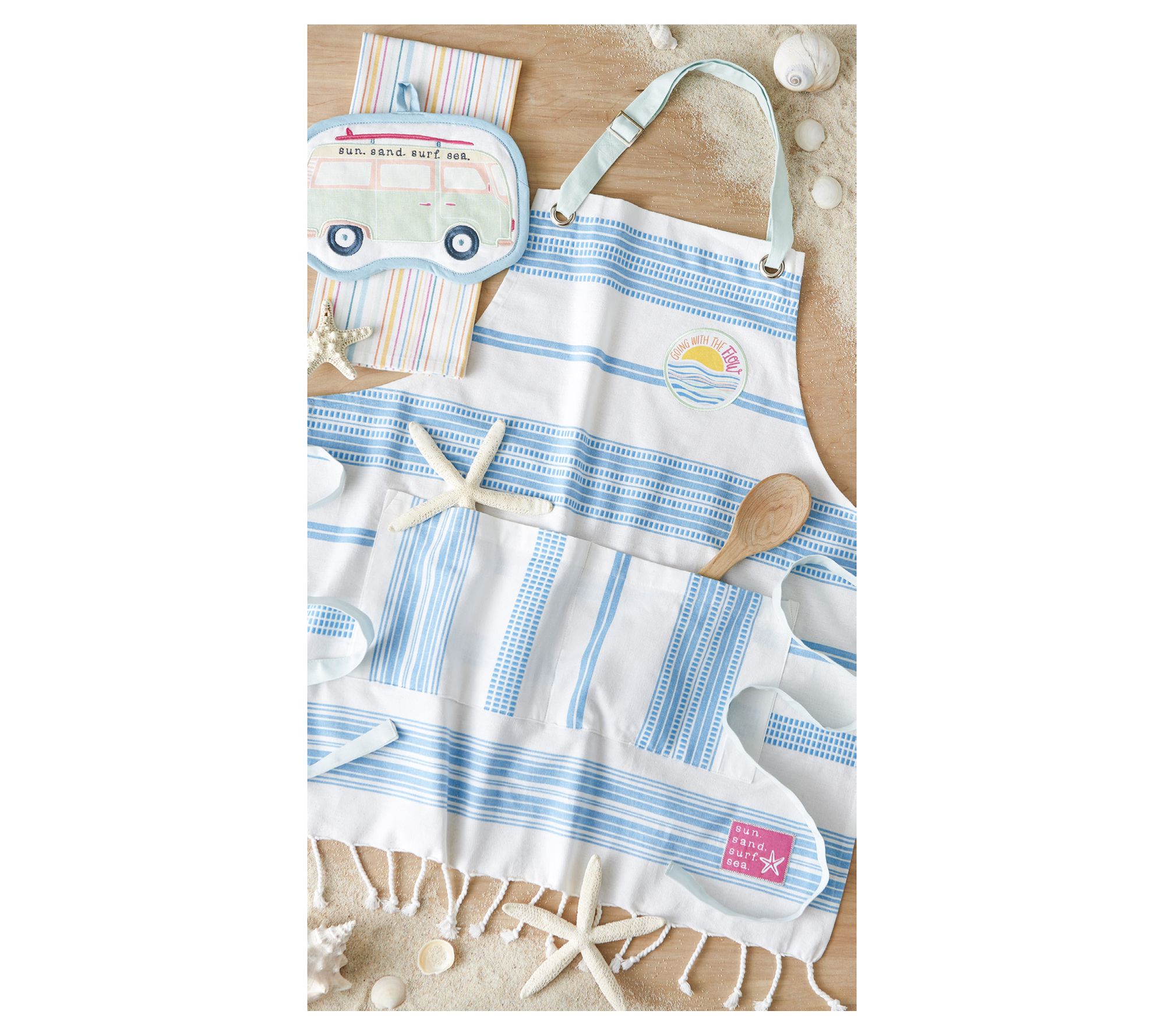 Add a dash of whimsy to your cooking routine when you have the Going With The Flow apron, featuring a charming print and applique embellishment. This 100% cotton apron is designed for comfort and practicality, with an adjustable strap and a handy pocket for your essentials. From Design Imports.