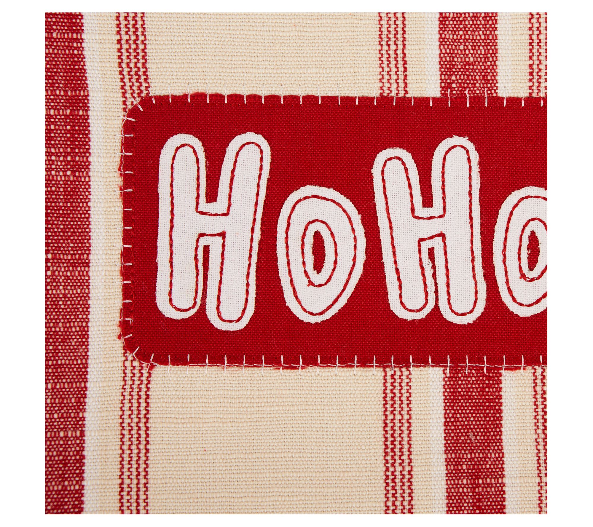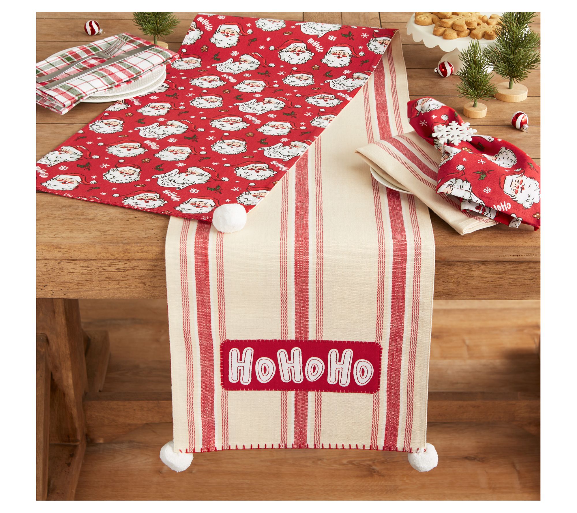 Get ready to add some festive cheer to your dining table with the Design Imports Ho Ho Ho Santa! Embellished Table Runner. This delightful table runner, with its 100% cotton fabric, is perfect for Christmas celebrations, bringing warmth and joy to your holiday gatherings. The Ho Ho Ho applique and embroidery, along with cherry red whipstitch trim and chunky pom poms, add a fun, playful touch that's sure to impress your guests. From Design Imports.