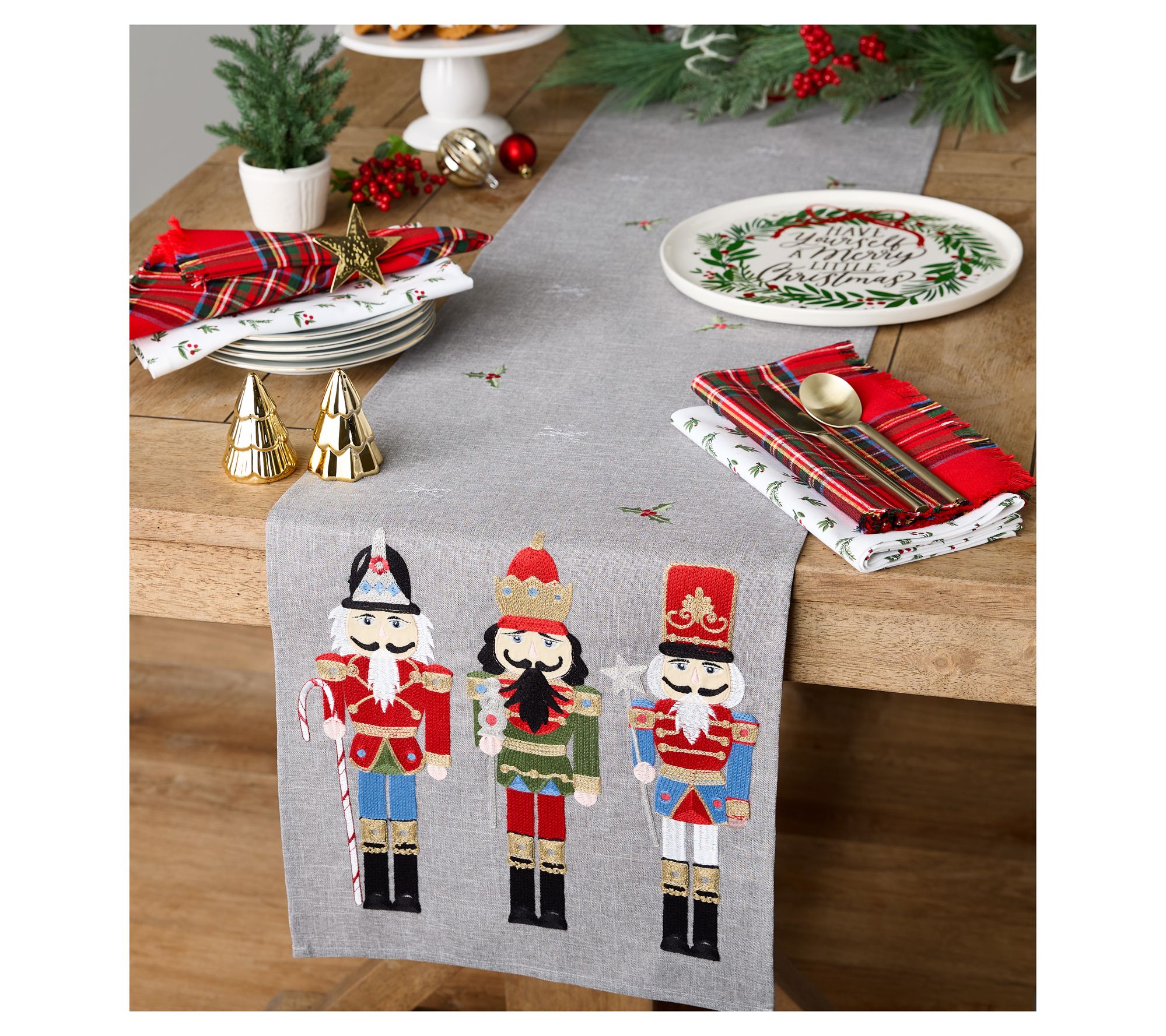 Design Imports Holiday Nutcrackers EmbroideredTable Runner