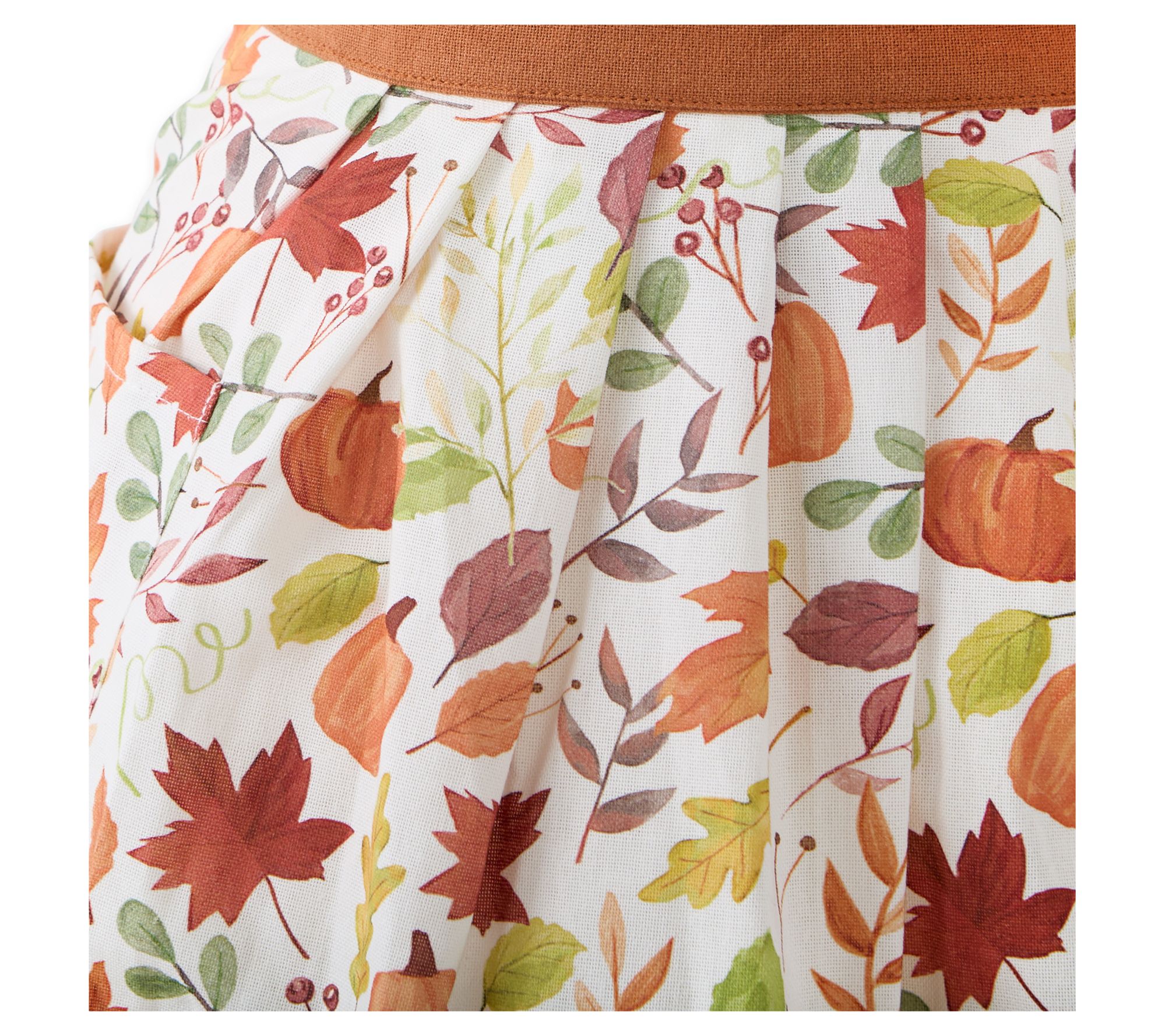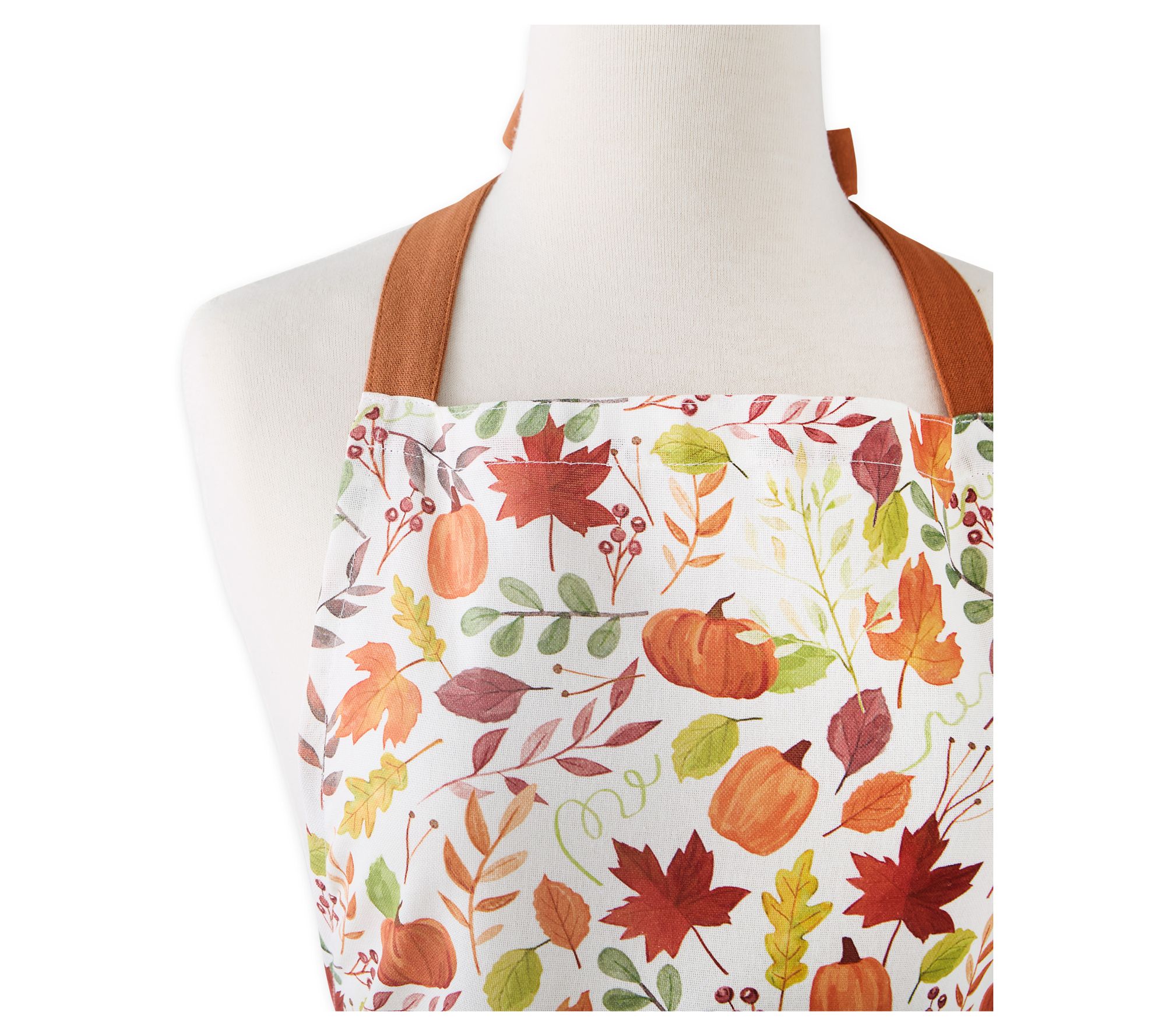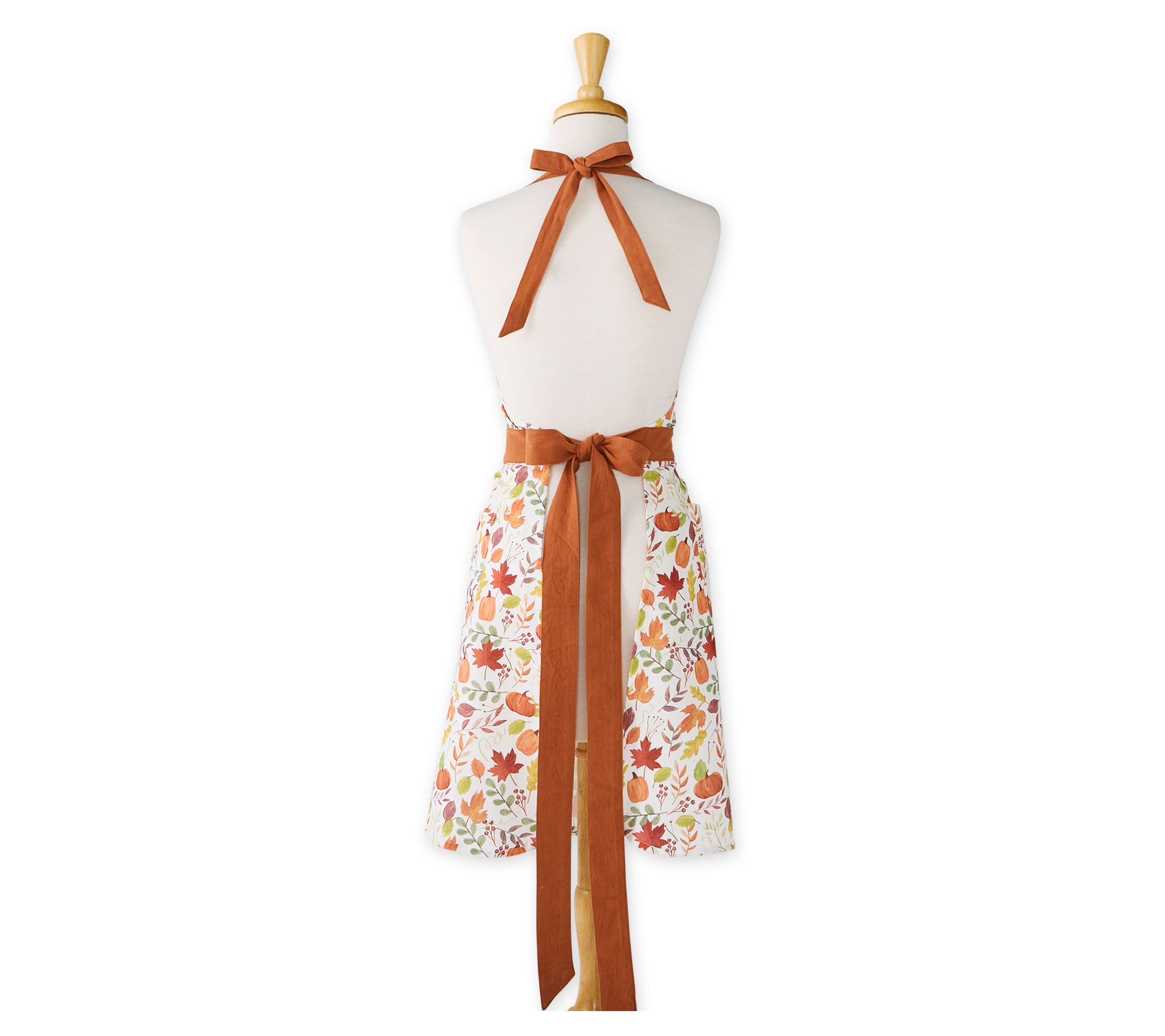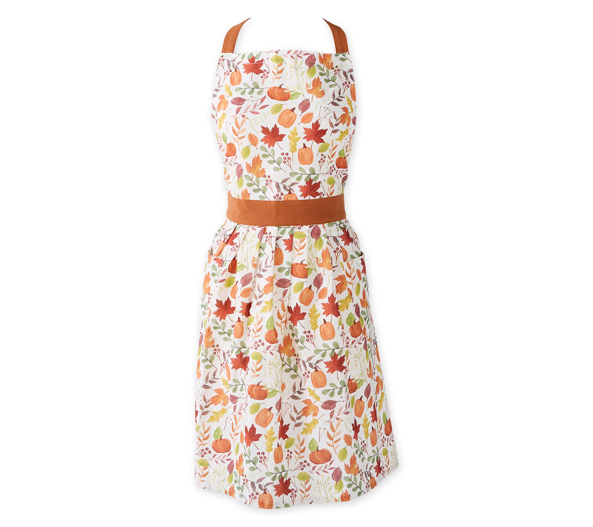 Bring the flavors of autumn into your kitchen while staying comfortable and organized with this Hometown Harvest printed apron. Soft cotton drapes easily, and roomy pockets keep recipes or a phone conveniently close as you mix, stir, and entertain. From Design Imports.