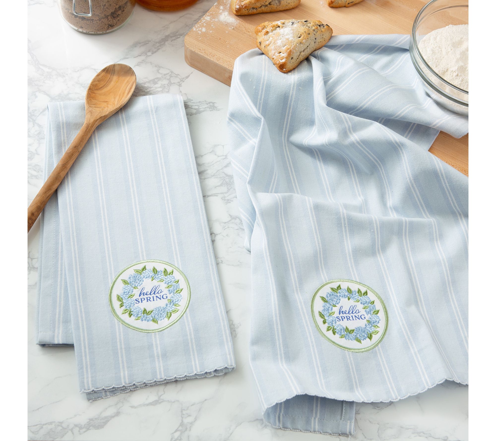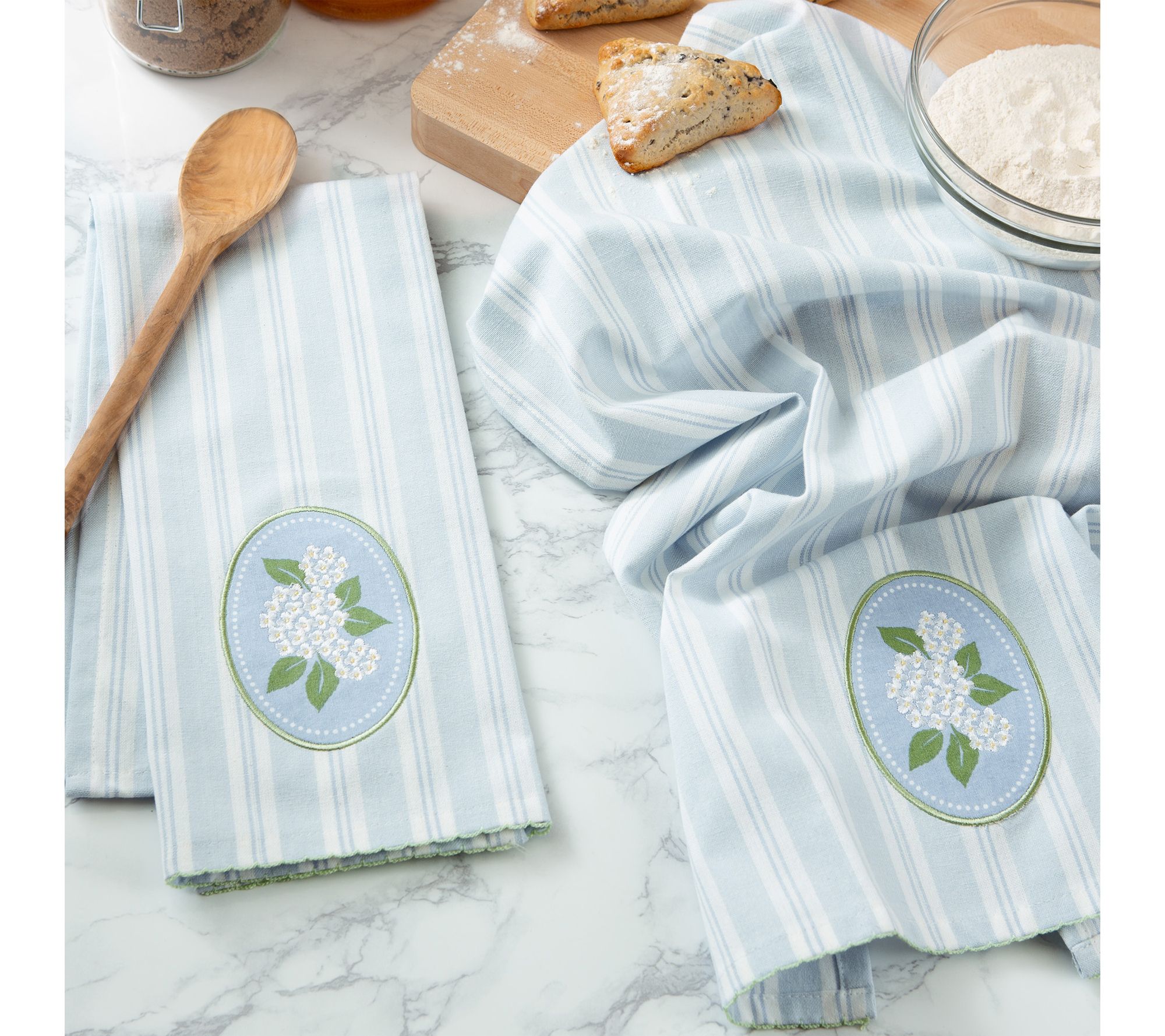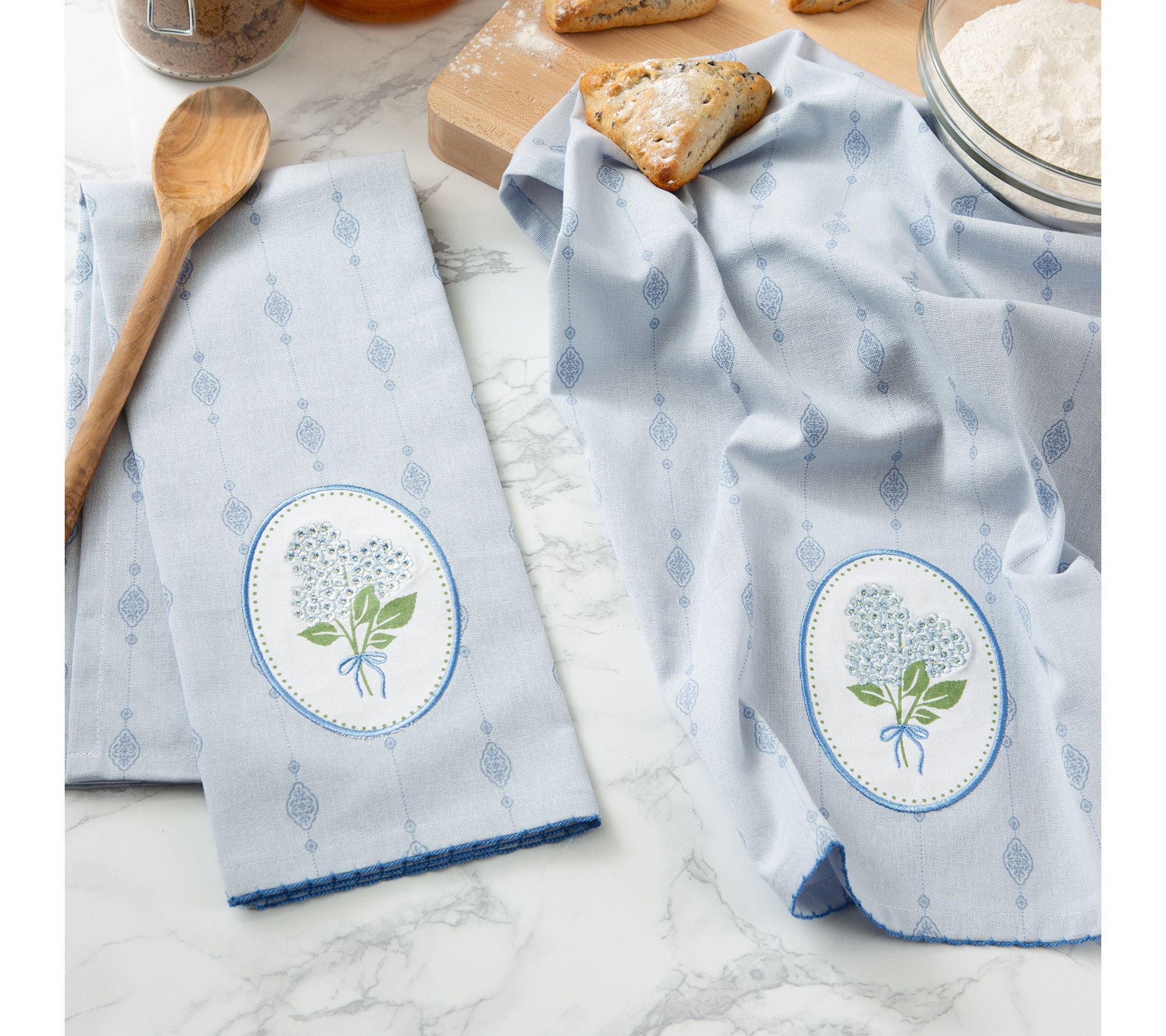 Brighten your kitchen with the Hydrangea Embellished Kitchen Towel Set, where delicate floral embroidery brings a touch of spring to every day. Whether you’re drying dishes after a family meal or adding a decorative accent for seasonal gatherings, these cotton towels offer both style and practical function. From Design Imports.