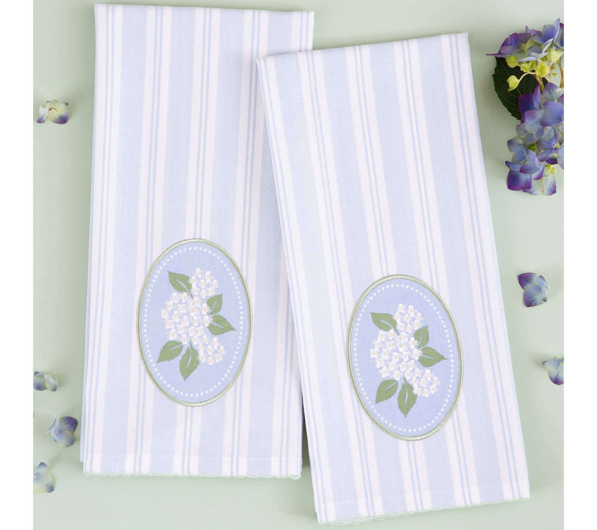 Design Imports Hydrangea Embellished Kitchen Towel Set of 2