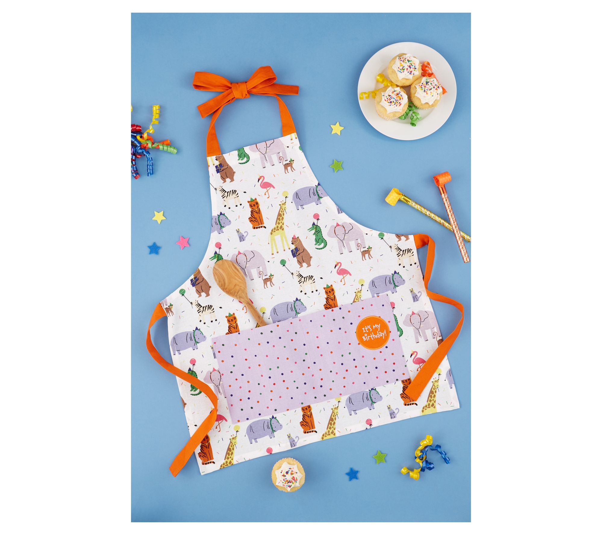 Make your child's birthday extra special with this fun and festive apron. Designed with a colorful "It's My Birthday" applique and embroidery, it’s perfect for celebrating in style while keeping clothes clean. Whether they're helping bake the cake or enjoying their favorite meal, this apron adds a touch of joy to the occasion. From Design Imports.