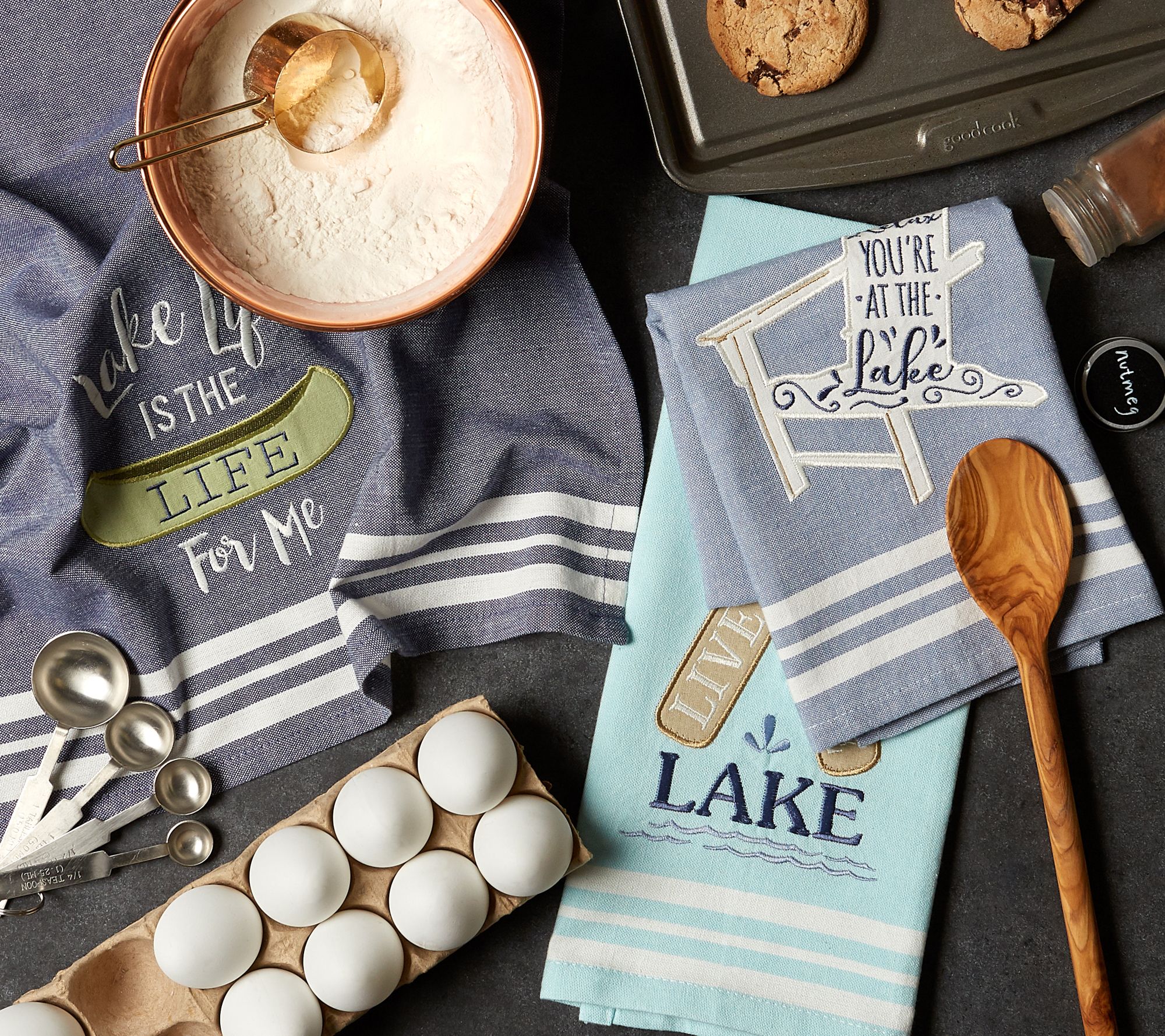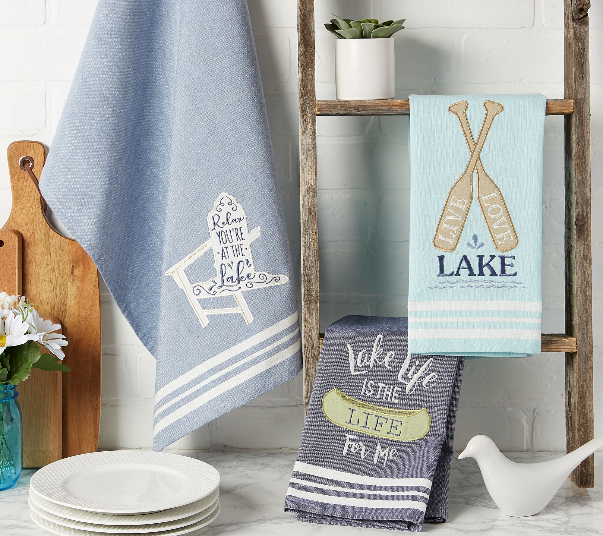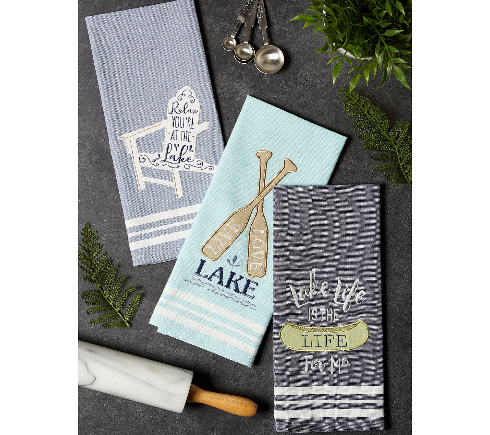 Ultra-absorbent, durable, and handy for mopping up messes and spills, these lake life kitchen towels will liven up your rustic decor. From Design Imports.