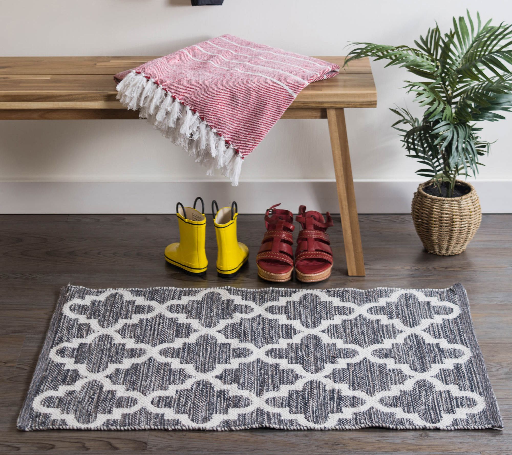 This accent rug's lattice design provides a soft landing with a pop of print. From Design Imports.