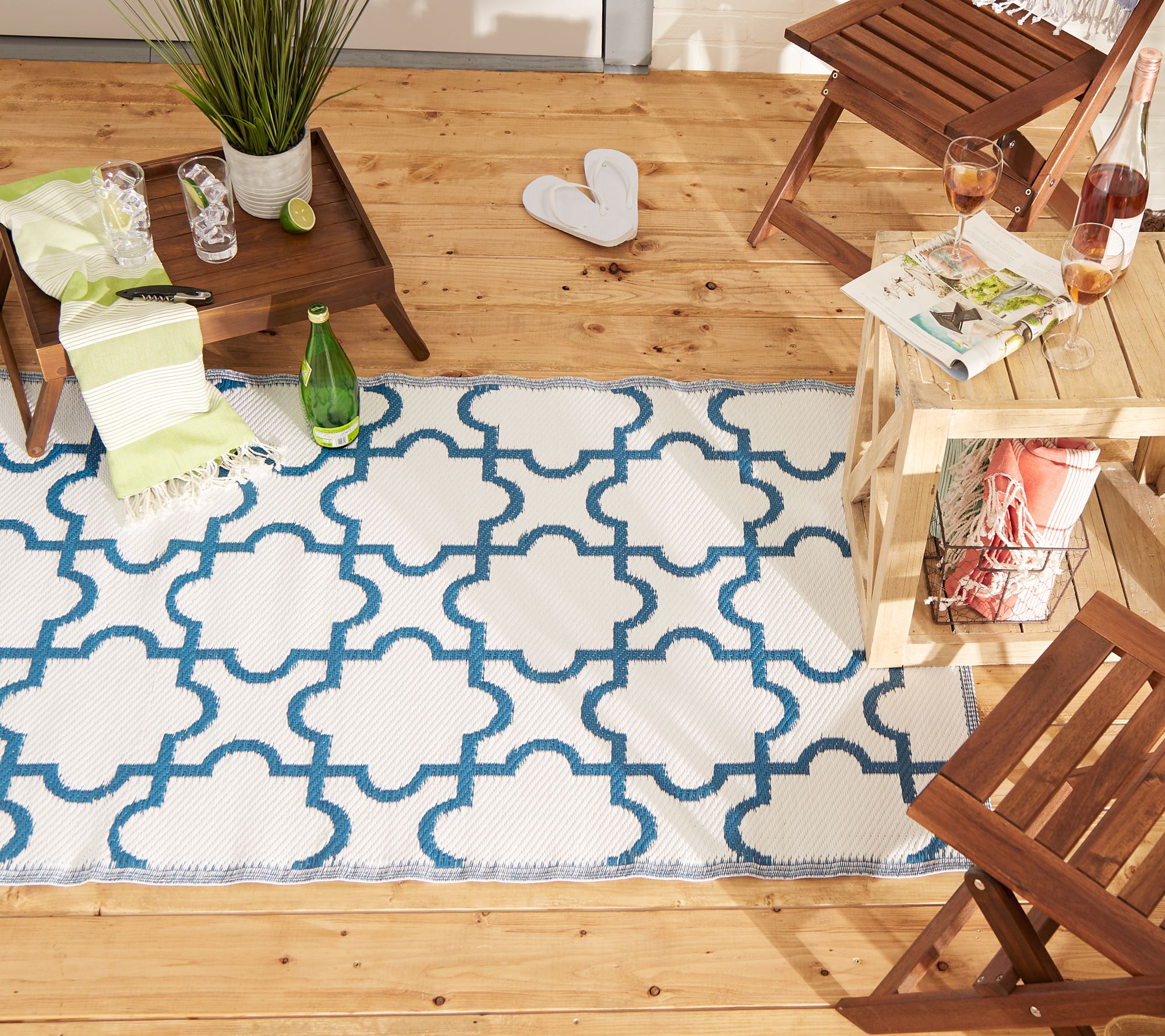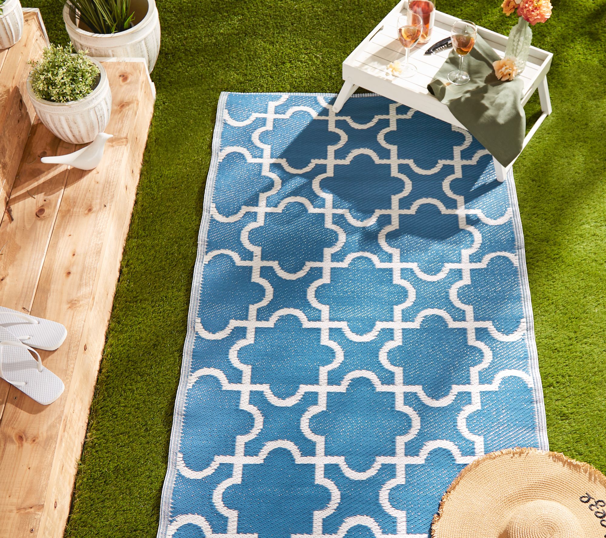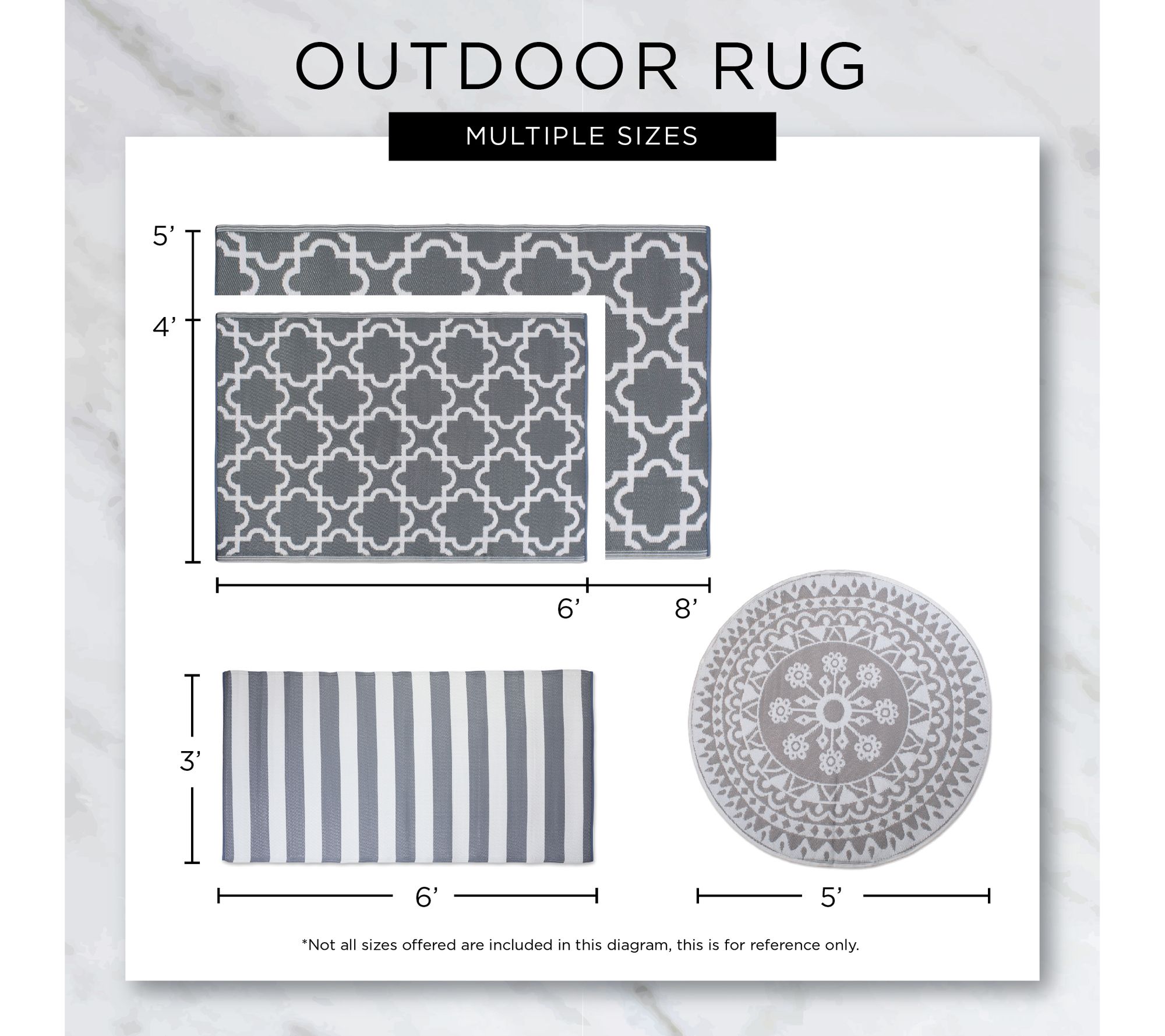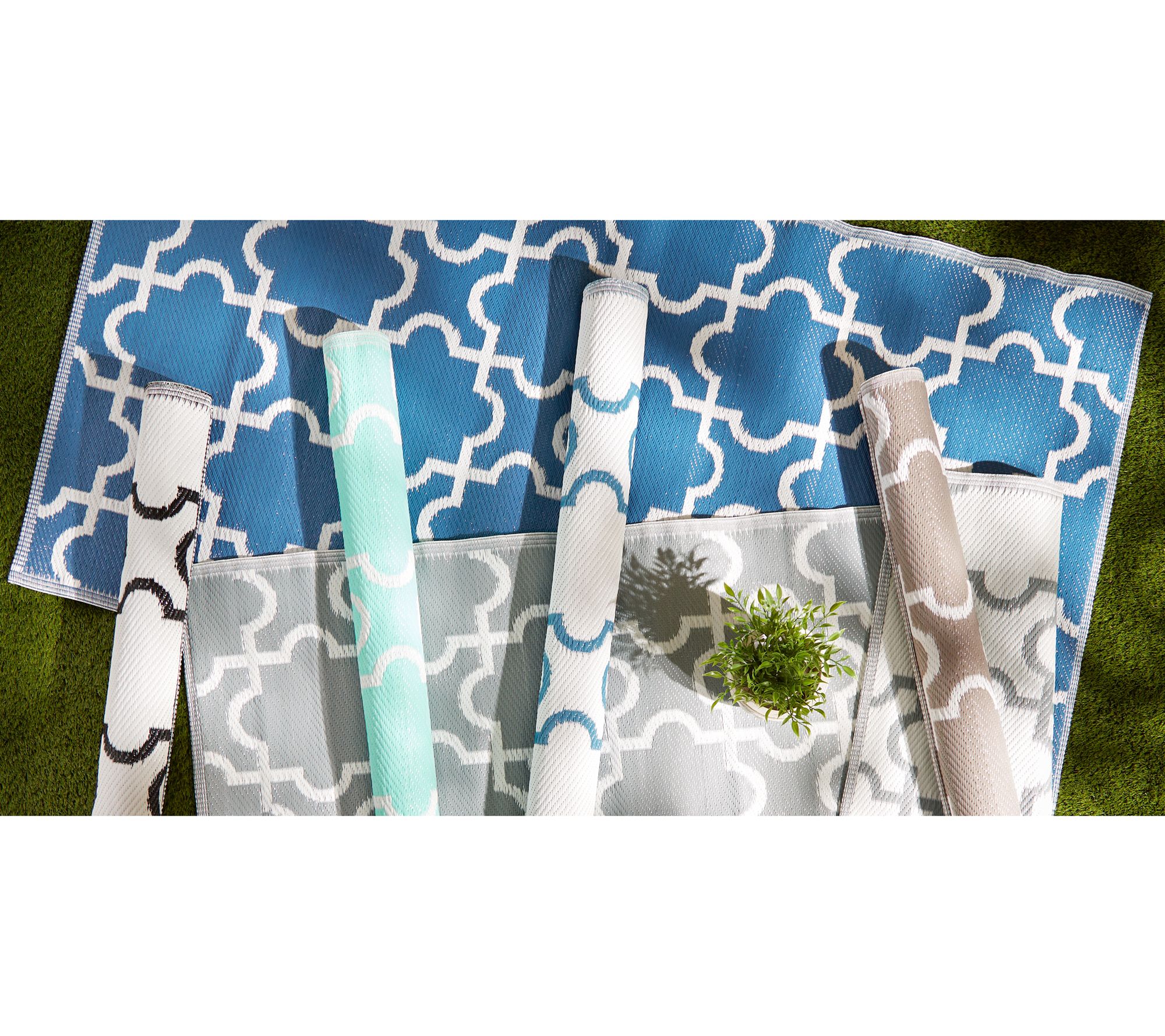 Add a touch of texture and style to your outdoor space with this stylish rug. Featuring a reversible detail, this lattice rug is sure to enhance your patio or deck. From Design Imports.
