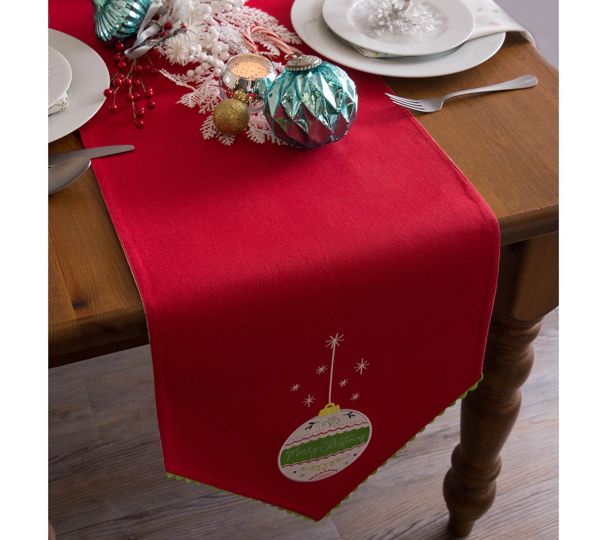 Design Imports Merry Christmas Ornament Embellished Table Set