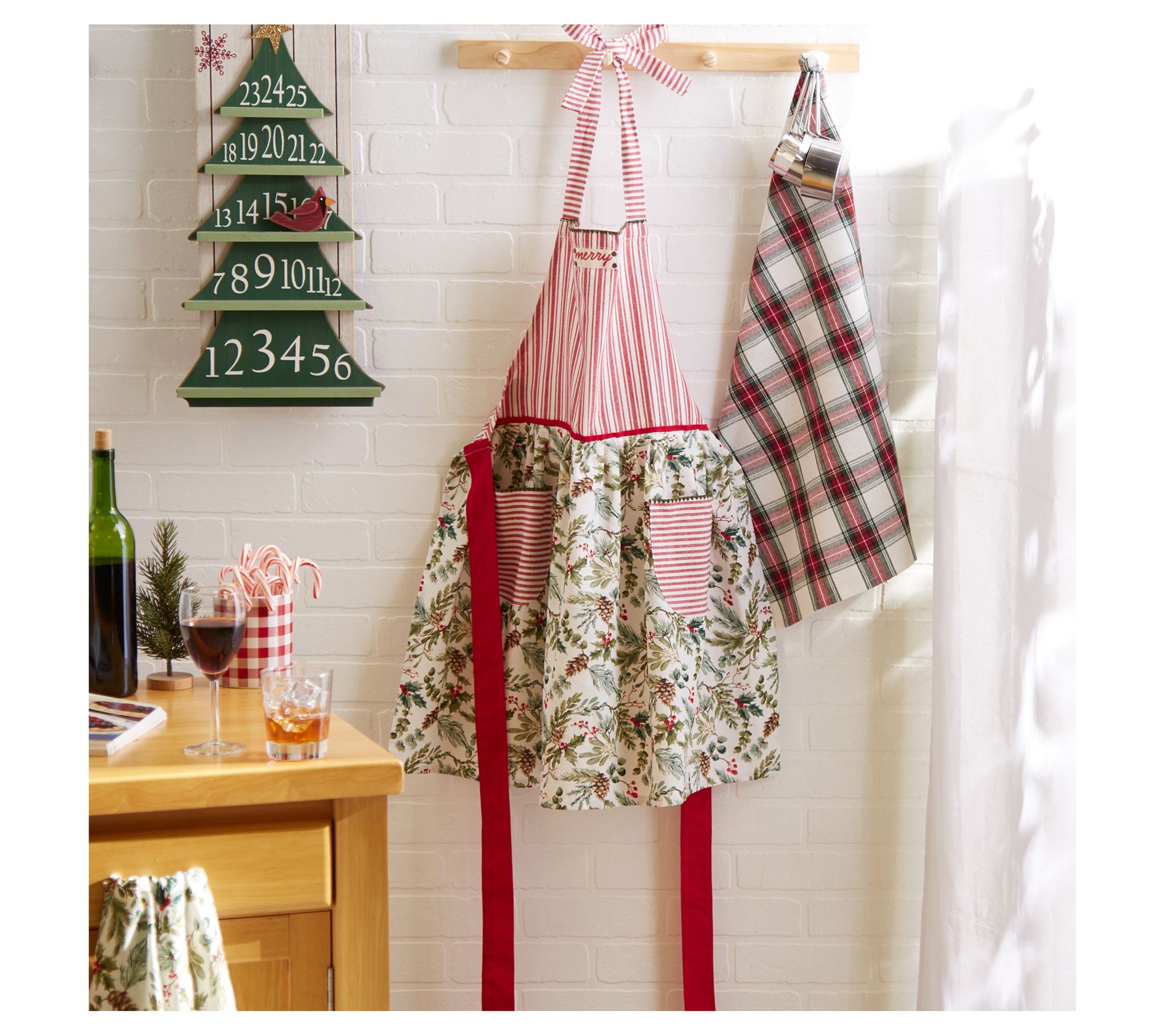 Design Imports Merry Holiday Sprigs Printed Apron